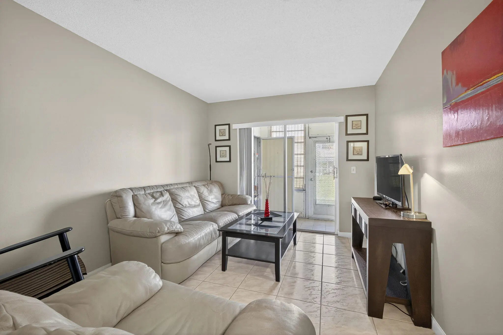 Budget-Friendly Retirement Living with Resort Amenities. This 2 Bed, 1.5 Bath is Move In Ready, on the First Floor and a Corner Unit. Tile floors throughout. Large Screened Patio has garden views. Step-in Shower and upgraded bathroom vanities and kitchen cabinets. Century Village is a 55 Plus Active Lifestyle Community with Theater, Multiple Club Houses, Pools and More. This unit is conveniently located to the Haverhill Main Gate, Somerset Pool and the Main Club House/Theater. Other amenities include, Tennis, Bocce Ball, Pickleball, Billiards, Gym/Fitness Center, 2 guarded gates and so much more.