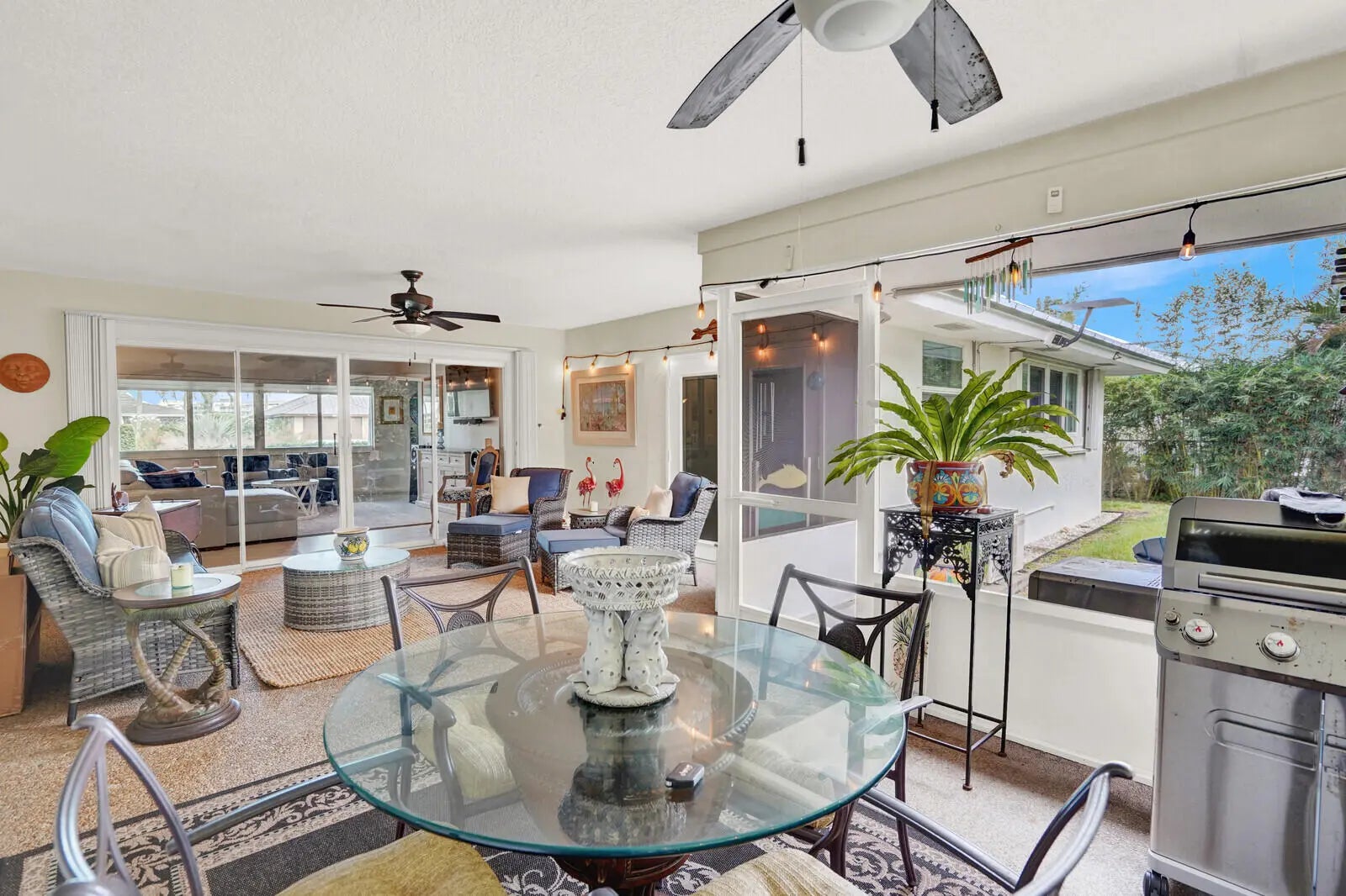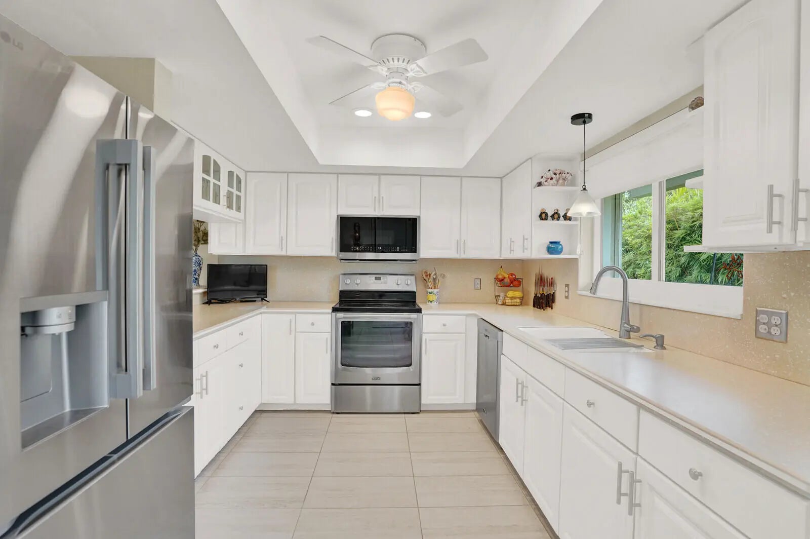 Tucked away within the serene and highly sought-after City of Atlantis, this inviting home effortlessly combines comfort, style, and versatility. From the moment you step inside, you're greeted by the warmth of upgraded tile flooring that flows seamlessly throughout, creating a sense of continuity and ease. Designed for flexibility, the home features two primary suites—a thoughtful layout ideal for hosting guests or accommodating multigenerational living. The kitchen serves as the heart of the home, showcasing stainless-steel appliances, a convenient snack bar with pass-through window, and a welcoming eat-in area that makes everyday living both functional and enjoyable. A dedicated water filtration system at the sink adds practicality, while custom Hunter Douglas blinds throughout lend a nice finishing touch. A versatile bonus room/office, accessible from both the primary suite and the lanai, offers a private space for work, creativity, or relaxation. One of the primary suites includes a built-in vanity within the bedroom, adding a touch of function and convenience. Step outside to an oversized screened lanaiperfect for entertaining or simply enjoying Florida's gentle breezes. The fully fenced backyard provides privacy amid lush landscaping with ample room to add a pool if desired. The home's newer roof provides peace of mind, while the automatic, zoned sprinkler systemfed by a private wellkeeps the grounds vibrant year-round. For peace of mind, the home offers comprehensive storm protection throughout, including a reinforced front entry and other thoughtful safeguards. A portable generator with a dedicated disconnect breaker ensures the entire home can stay powered during storms, offering comfort and preparedness in any weather. Additional highlights include natural gas service, a newer tankless water heater, a newer air conditioning system, ensuring efficient comfort in every corner of the home. Beyond the property itself, the City of Atlantis offers a lifestyle unlike any other. This vibrant, gated community is renowned for its non-mandatory country club membership options, featuring two award-winning golf courses, beautiful tree-lined streets, and a strong sense of community. Residents enjoy a lively social calendar with events such as the Spring Fling, Independence Day fireworks, Halloween festivities, a holiday golf-cart parade, and the beloved Christmas tree-burning celebration. Kintz Park serves as a community hub, offering pickleball, tennis, and basketball courts, a shaded pavilion for gatherings, and a children's water park. The city is entirely self-contained, with its own city hall and police department, providing residents with peace of mind and small-town charmall just minutes from the world-class shopping, dining, and beaches of Palm Beach County, and a short drive to Palm Beach International Airport. This home offers the perfect blend of practicality, charm, and lifestyle In Atlantis, it's not just a homeit's a way of life waiting to be enjoyed.