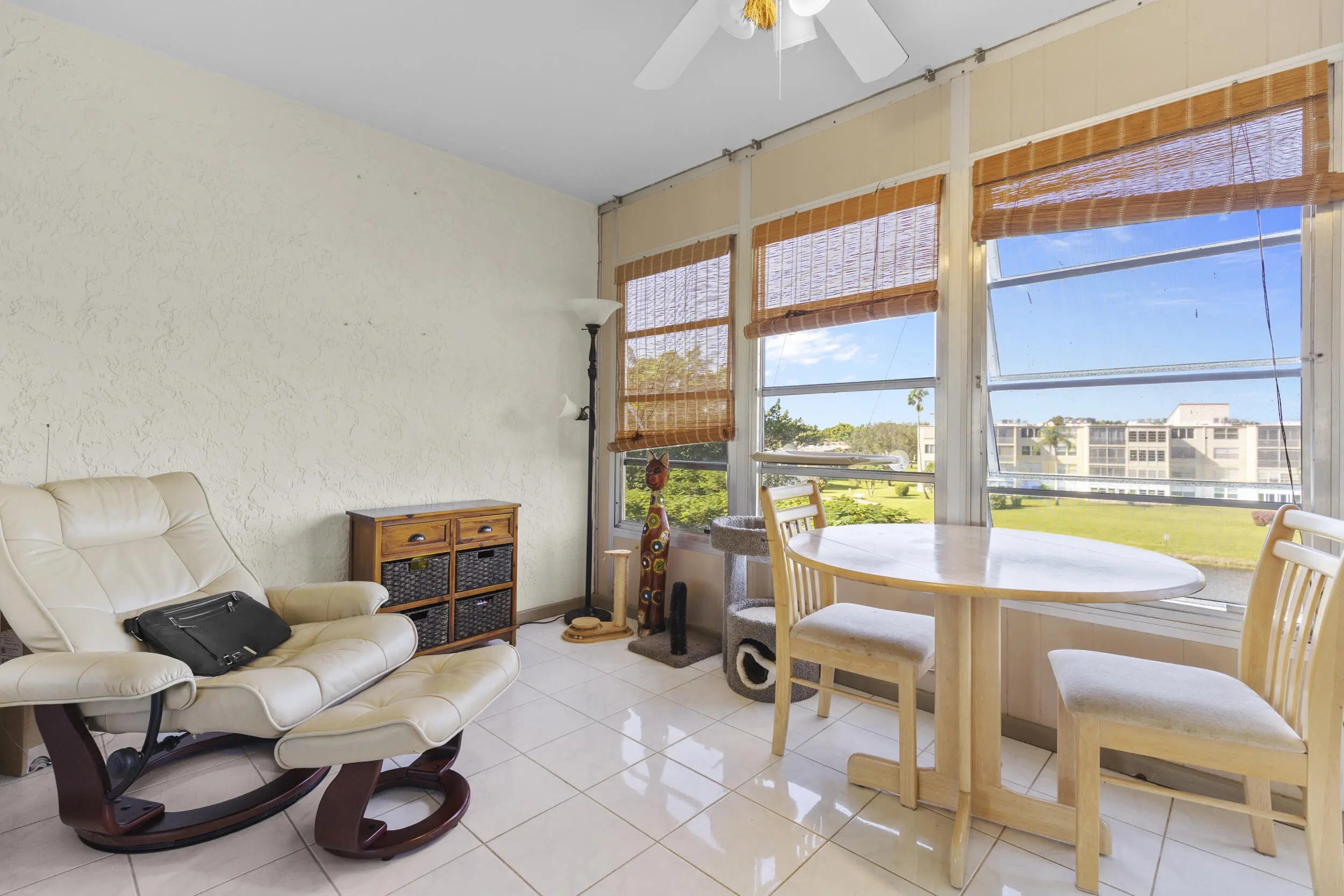 Owner Financing Available! FULLY FURNISHED move-in ready!! Beautiful LAKE VIEW from 4th Floor! Open living concept. Updated kitchen with granite, wood shaker cabinets, stainless-steel appliances and large pantry. Florida dining area, Primary suite has large walk-in closet, tiled shower. Second bath has tub/shower combo. Glassed in porch makes room for den, office or extra bedroom! Washer & Dryer conveniently located inside unit. Storage closet too. Water heater 2017. Fabulous amenities including clubhouse, library, auditorium, heated pools, fitness center, walking trails, tennis/pickleball courts, bocce, hot tub and courtesy bus service Close to turnpike, shopping & the beaches. This community is 55 or better.