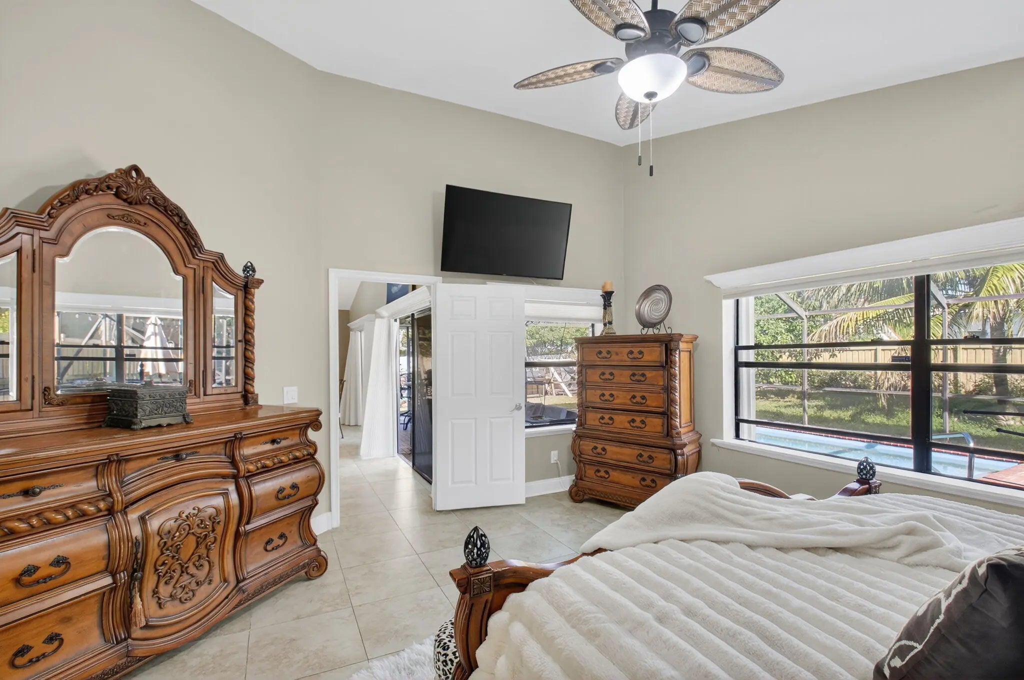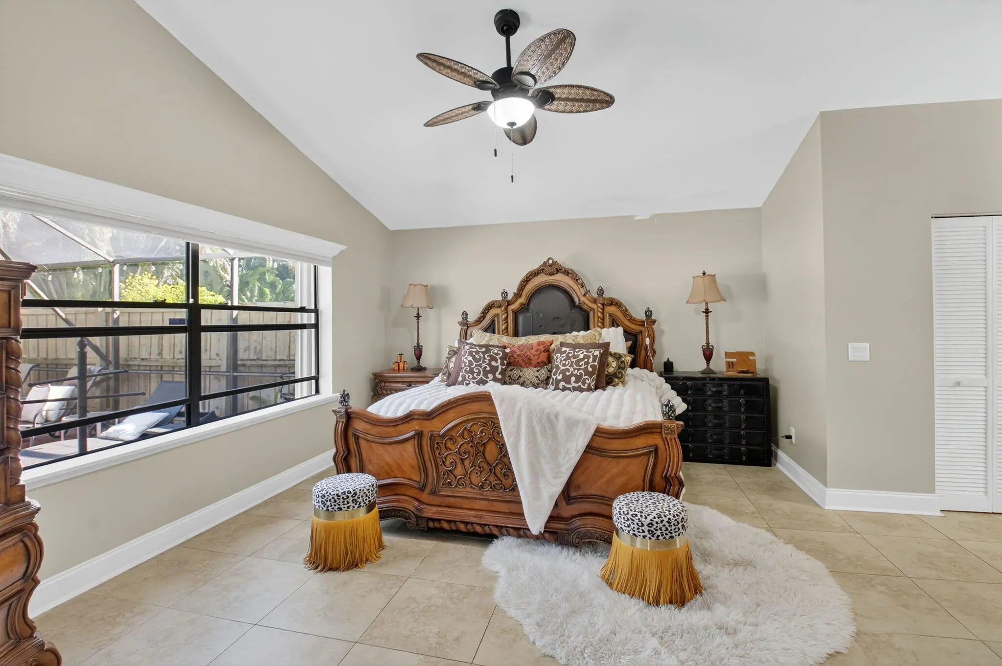 Immaculate 3BR/2BA furnished pool home available in the gated community of Citrus Glen close to schools and shopping! This bright, inviting residence features vaulted ceilings, abundant natural light, and a spacious open living and dining area. The well appointed kitchen includes granite countertops, generous cabinet and counter space, LED under cabinet lighting, stylish accent fixtures, and a double stacked oven, perfect for cooking and entertaining. Double sliding doors lead to a screened-in, solar heated saltwater pool, a covered BBQ area, and a fully fenced backyard that's ideal for gatherings or quiet relaxation. The master suite offers two walk-in closets, dual vanities, a soaking tub, and a separate shower for a true retreat feel. Additional upgrades include a REME HALO whole-home air purification system, surveillance cameras, Ring doorbell, sprinkler system, high-speed fiber internet, and access to hundreds of cable channels.