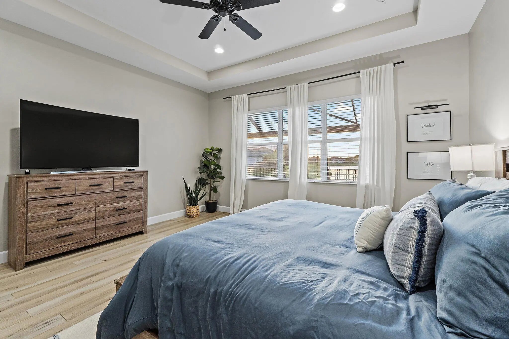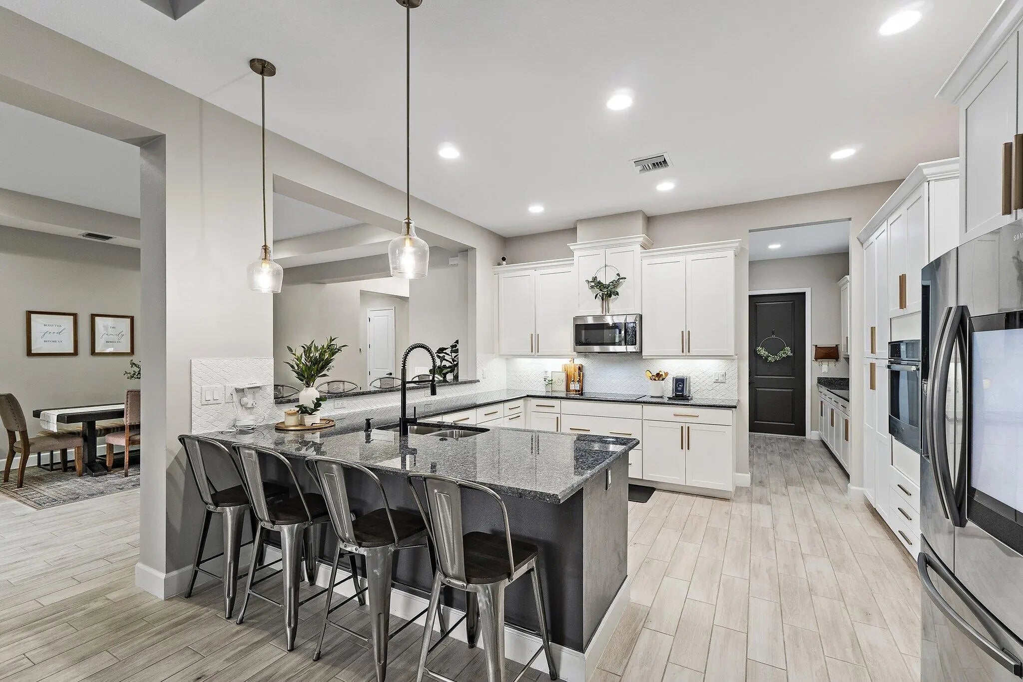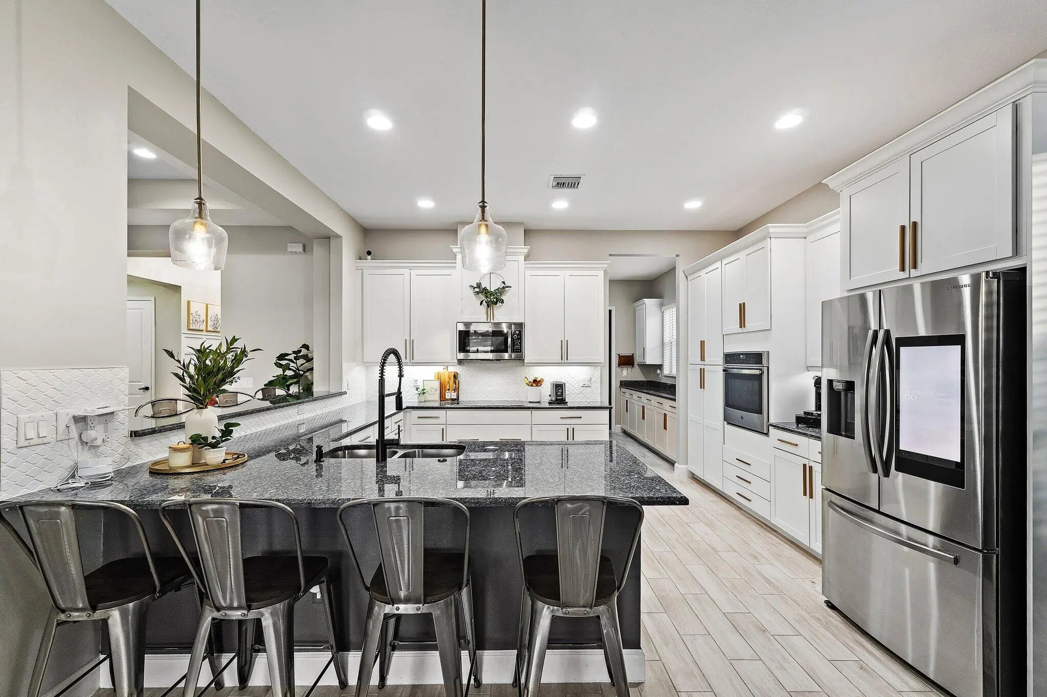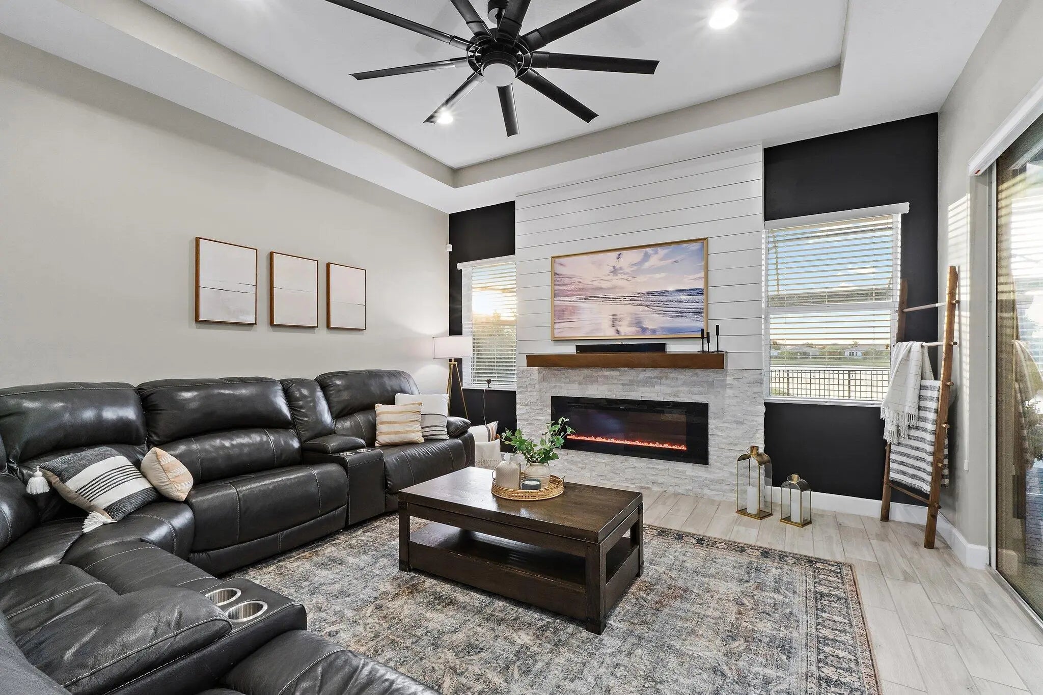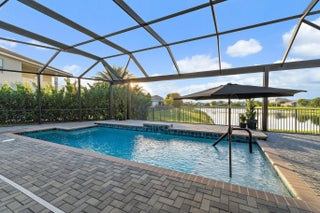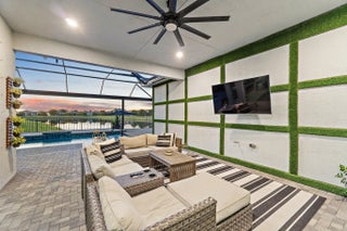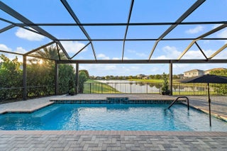 Redefining luxury living at Westlake! Sited on an oversized corner lot, this 2018 CBS Ranch style home offers five bedrooms + den. The idyllic lakefront location offers breathtaking sunset views. Design elements include custom closets, plank tile flooring, an open chef's kitchen with upgraded stainless steel appliances, two-car garage with EV charging, and a custom heated saltwater pool with a panoramic screen enclosure. The Kingfisher Grand is the premier single-story floor plan in Westlake, offering generously sized rooms across a split floor plan. Westlake is Palm Beach County's newest and most exciting new community. Westlake's Adventure Park offers endless amenities including a waterpark, food truck court, basketball courts, concert pavilion, bmx pump park and much more! The Vibrant Town Center offers shops, restaurants and local boutiques.