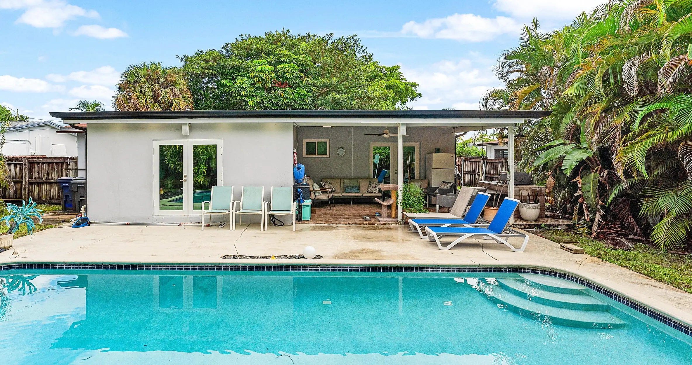 Contemporary 3/2 with pool in desirable Hollywood Hills. No HOA Motivated Seller. Updated kitchen with stainless, Island, ample storage, barn door access to large laundry room, French Doors lead out to the pool and porch with pavers and outdoor kitchen with built in grill. A/C smart thermostat ,impact windows, custom frosted doors and levers throughout, vinyl flooring throughout. Motion detector lighting. I 1 car garage with circular driveway. Roof and A/C 2016. Minutes from I95 and Hollywood Beach. Large lot approx. 9380 sq ft. TV and Speakers convey.