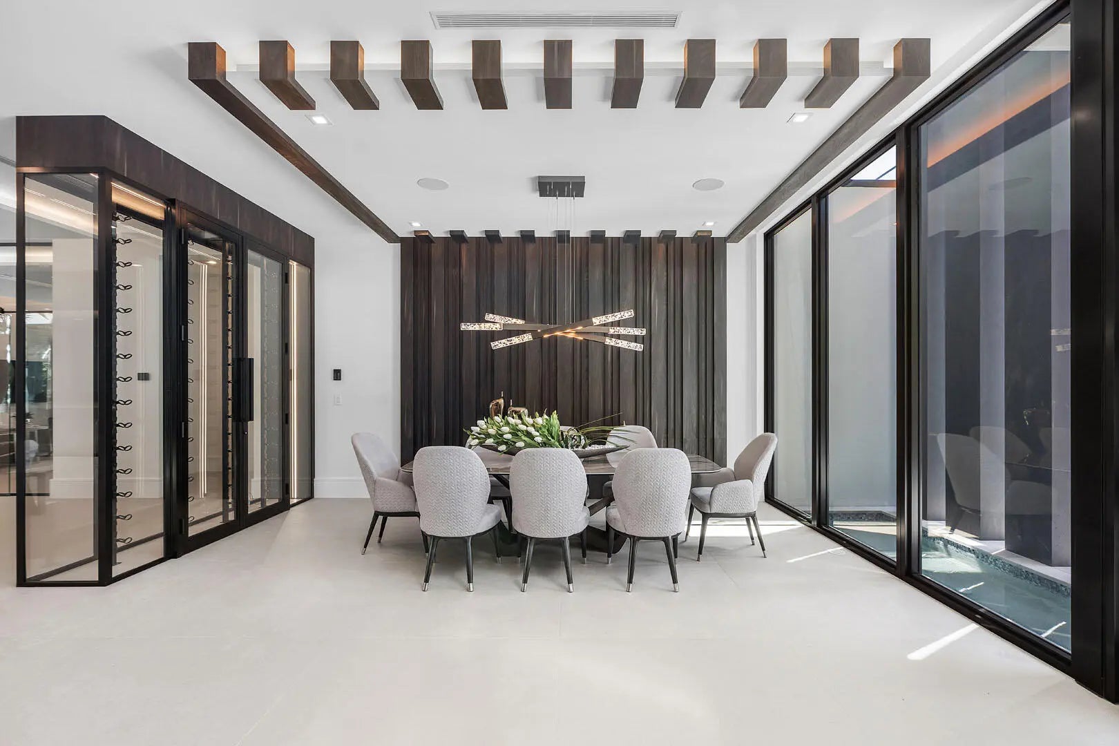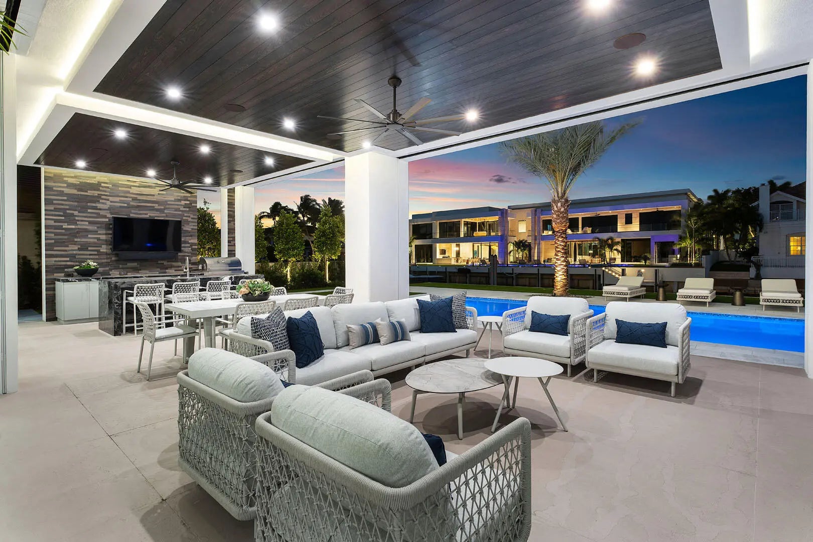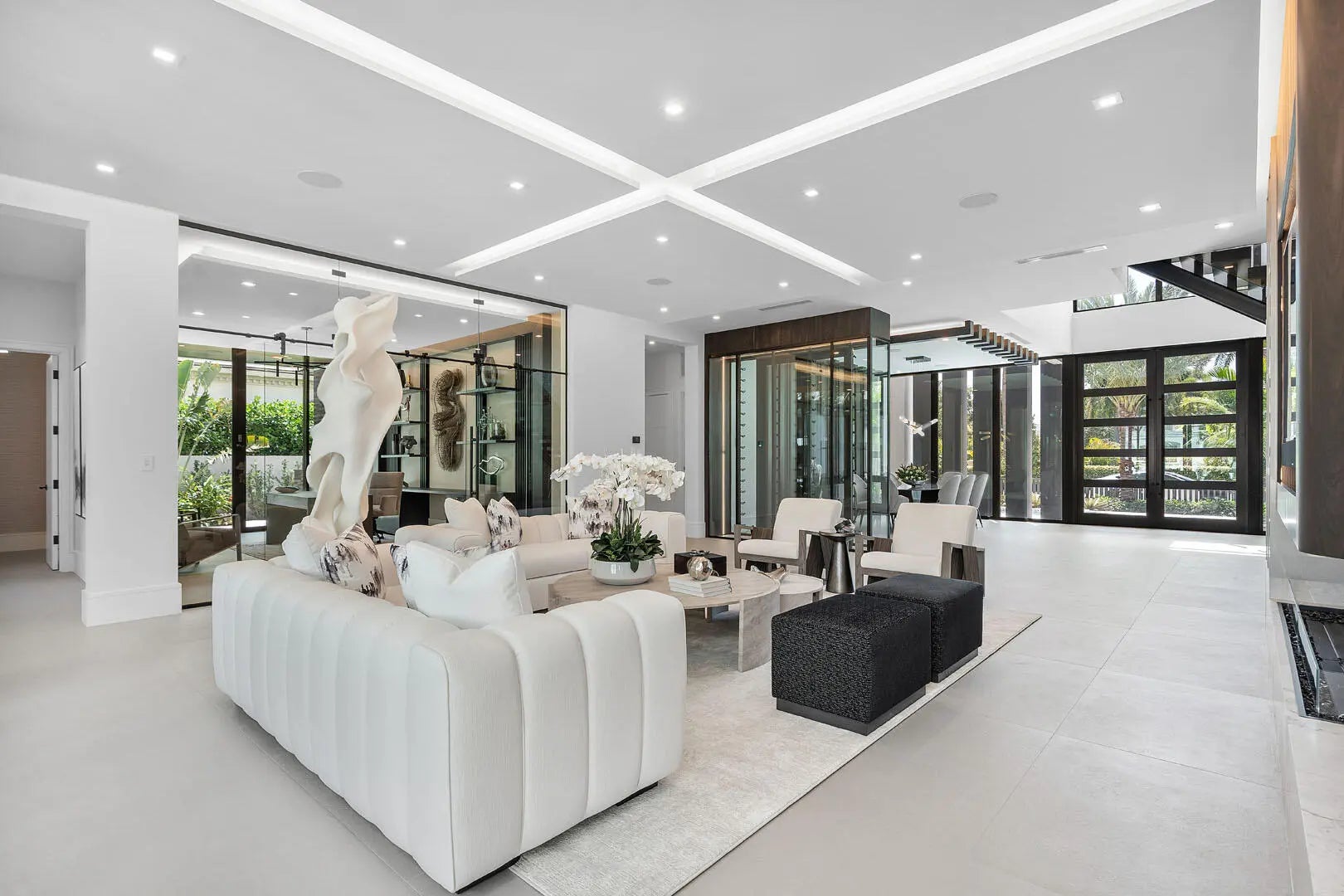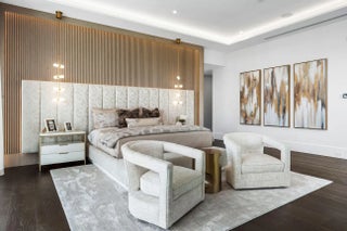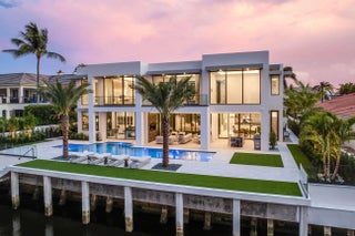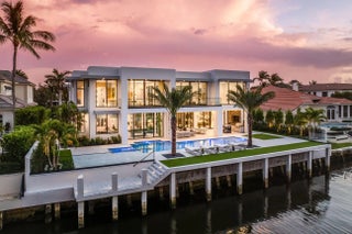 Discover a brand-new smart home crafted by Hanna Homes within the prestigious Royal Palm Yacht & Country Club! This custom estate is offered turn-key and fully furnished by Brown Interiors Design Group. With 6-bedrooms spanning over 9,500 square feet of luxurious living space, it seamlessly blends grandeur with the comfort of waterfront living. The property's centerpiece is a resort-style pool with a spa and sun shelf. The pool is complemented by an expansive covered loggia featuring a summer room and a fully equipped outdoor kitchen, perfect for entertaining or serene relaxation. Every element of this home is crafted for ultimate refinement, from the fully automated Crestron smart-home system to the state-of-the-art security features. The gourmet kitchen is a chef's dream, anchored by dual center islands, outfitted with premium appliances, and accompanied by a fully-equipped catering kitchen. The master suite is a private sanctuary, opening to an exclusive covered terrace. It boasts His & Her boutique closets, a master bath that exudes elegance, and a large sitting room with a chic two-sided fireplace. Additional spaces include a private office, a 26-foot interior garden, and a 4-car garage with a golf cart bay, ensuring you're always ready to explore the community. The buyer is responsible for documentary stamp taxes on the deed and title insurance.