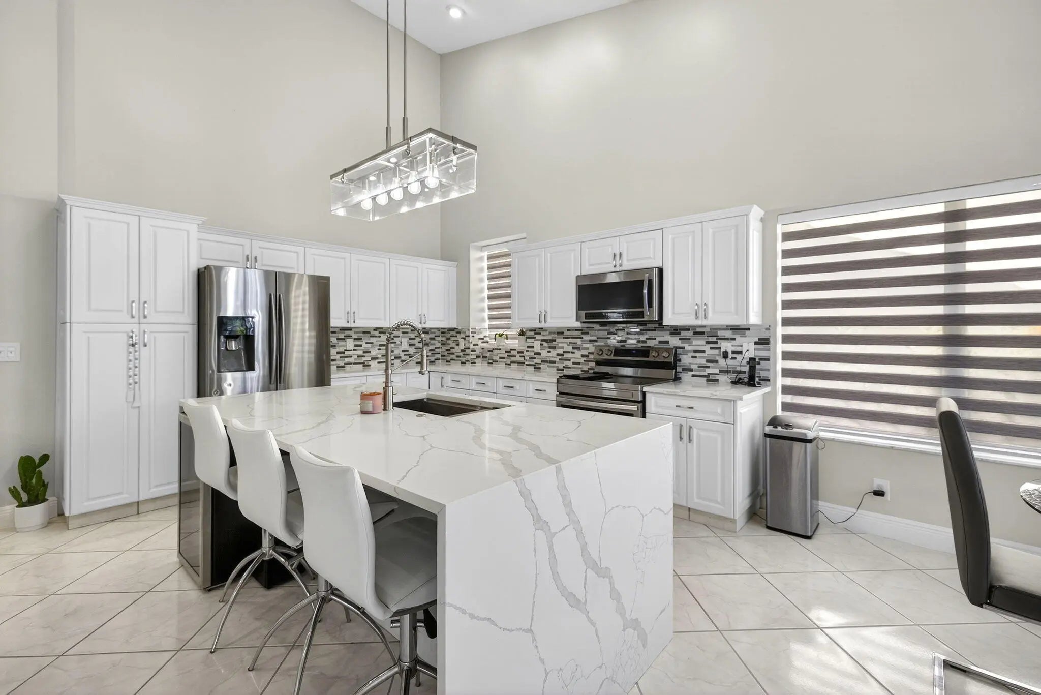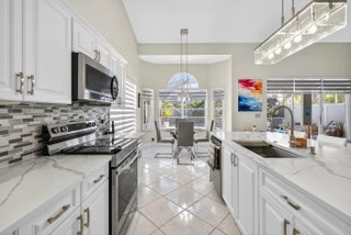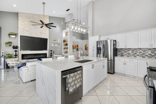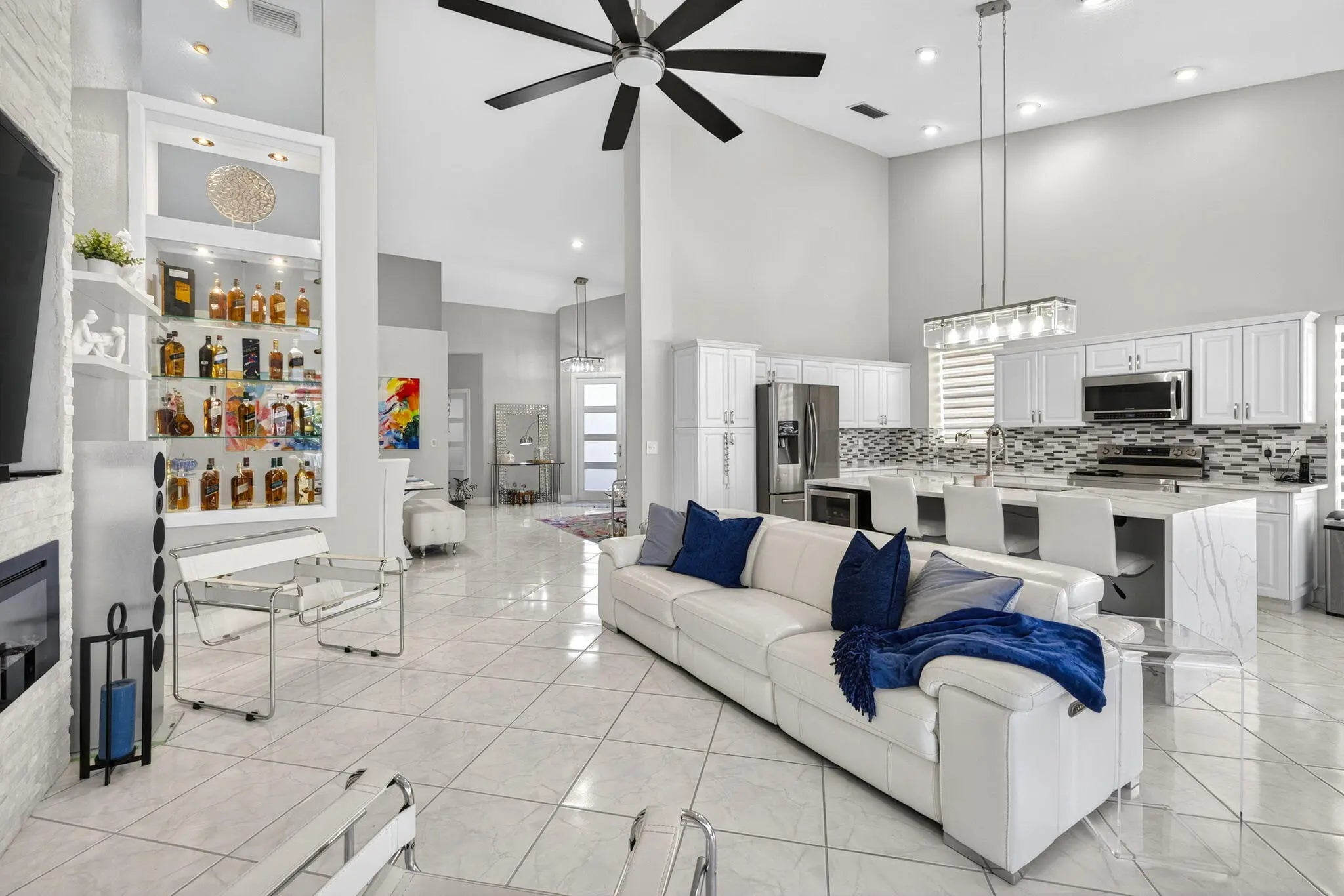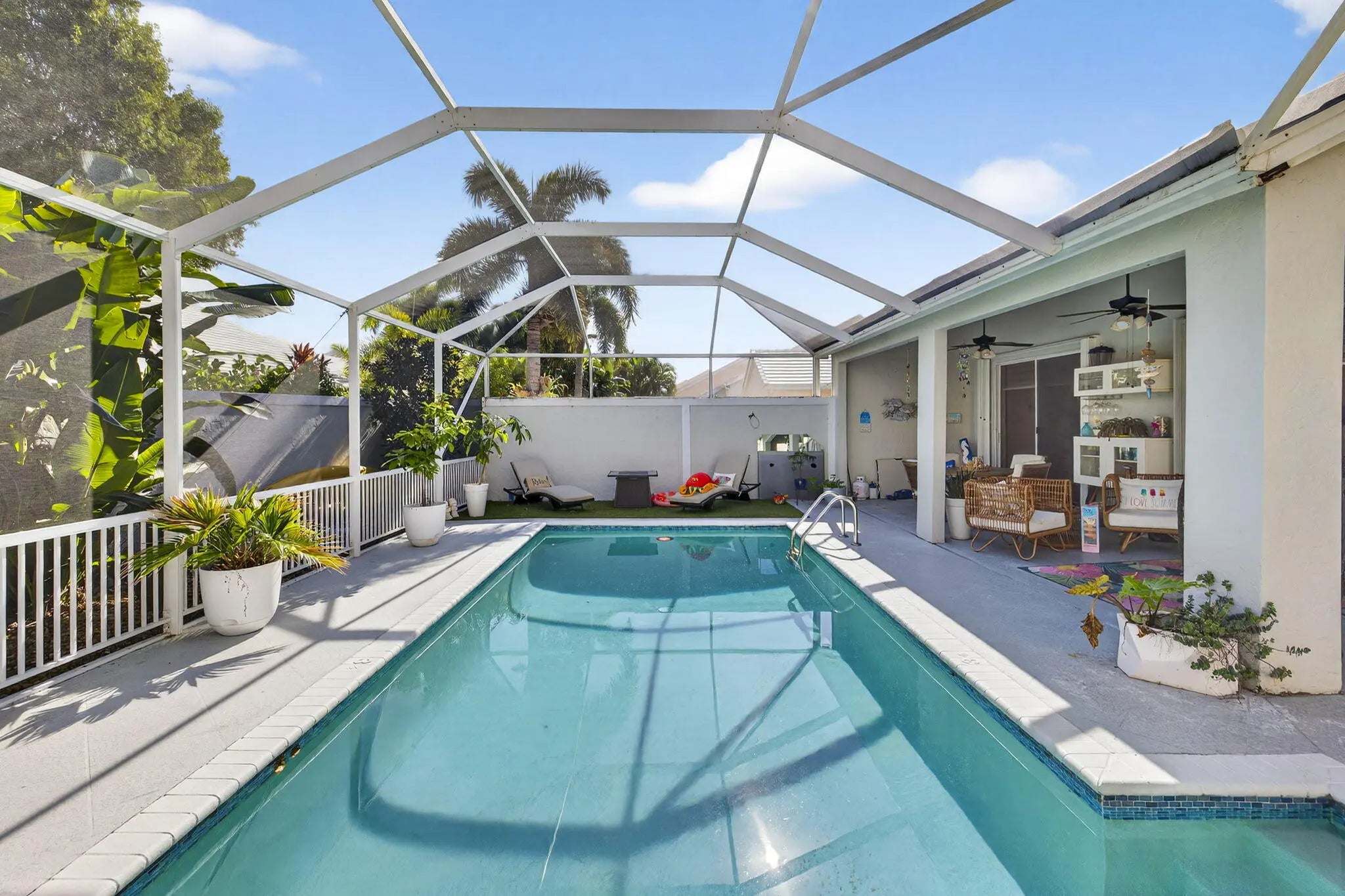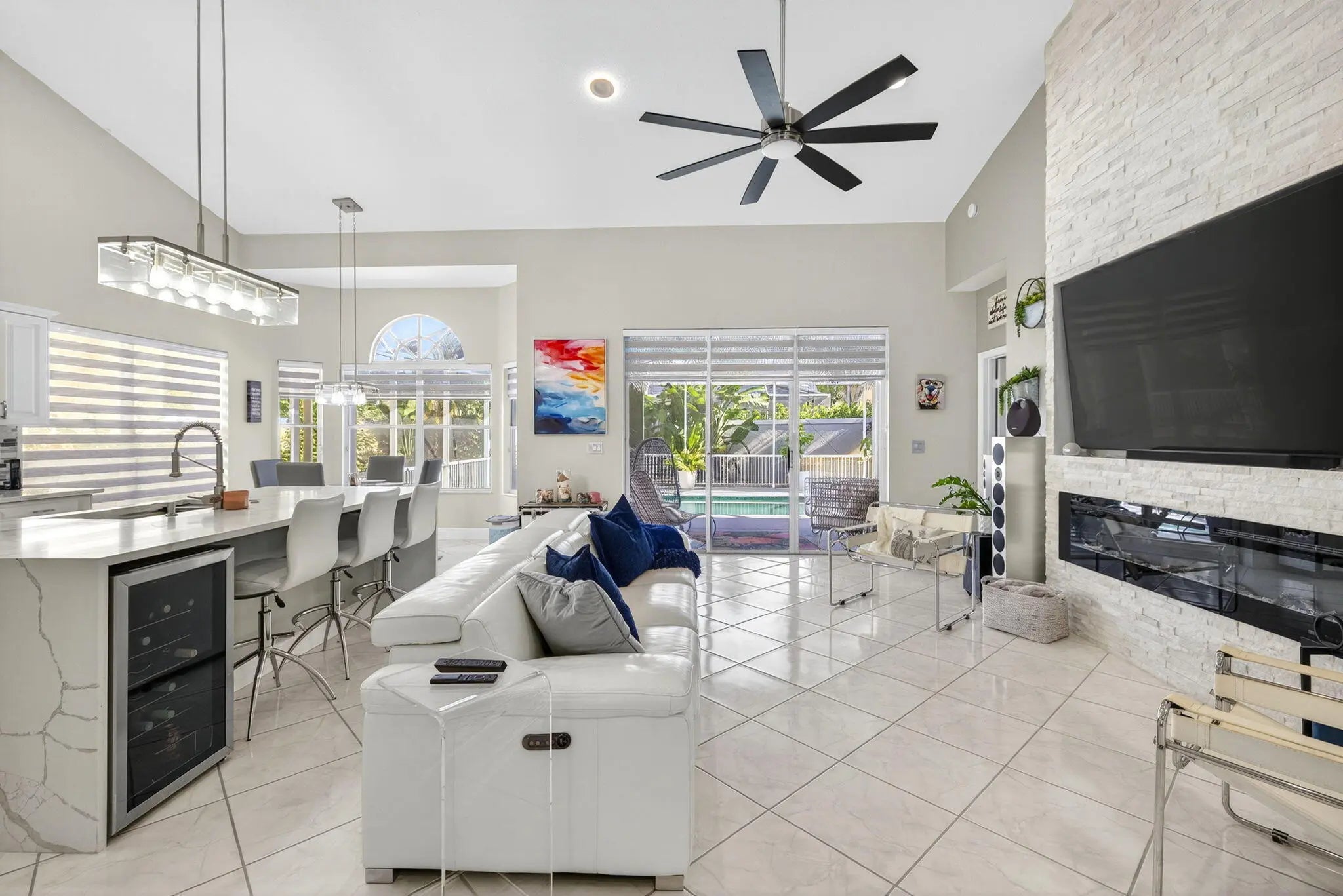 Beautifully upgraded pool home featuring a new Lennox 4-ton 18 SEER A/C system (2023), Diamond Brite-plastered heated pool with new tile (2022), new pool pump (2024), and a fully re-screened enclosure (2024). The home includes an 8' x 3' HVHZ hurricane-rated impact frosted front door (2022), accordion shutters, all new interior doors (2023), wireless ceiling fans (2023), and a 72'' electric fireplace with a 20-ft stone wall—perfect for the included 86'' 4K TV. Roof 2009. The bright open floor plan offers high ceilings, recessed lighting, and a large eat-in kitchen with Calacatta quartz countertops, a huge waterfall island, backsplash, and all stainless-steel appliances (2022). The family room opens to a covered patio and screened pool, ideal for entertaining. The spacious primary suite features vaulted ceilings, slider access to the pool, and a large bathroom with double sinks, walk-in shower, and separate soaking tub. Additional updates include quartz vanity and accessories in the 2nd bath (2022) and upgraded washer/dryer (2022). Cabinets throughout feature soft-close hinges.Aberdeen is a mandatory membership country club. Please inquire club direct for updated fees. Experience Aberdeen lifestyle to the fullest! Enjoy access to the golf course, tennis and pickleball courts, bocce ball courts, 3 restaurants, resort style pool and an array of activities that cater to diverse interests. Countless social events! Mandatory membership country club located in Boynton Beach!