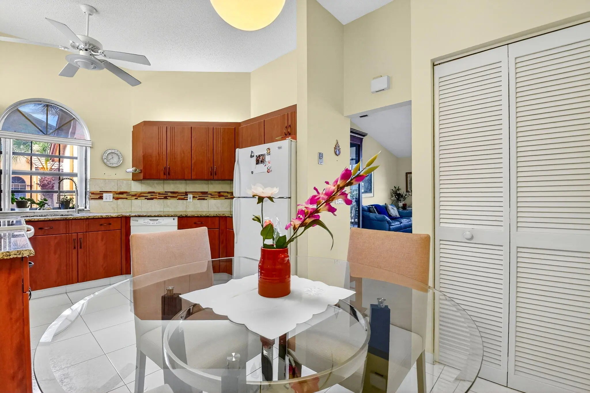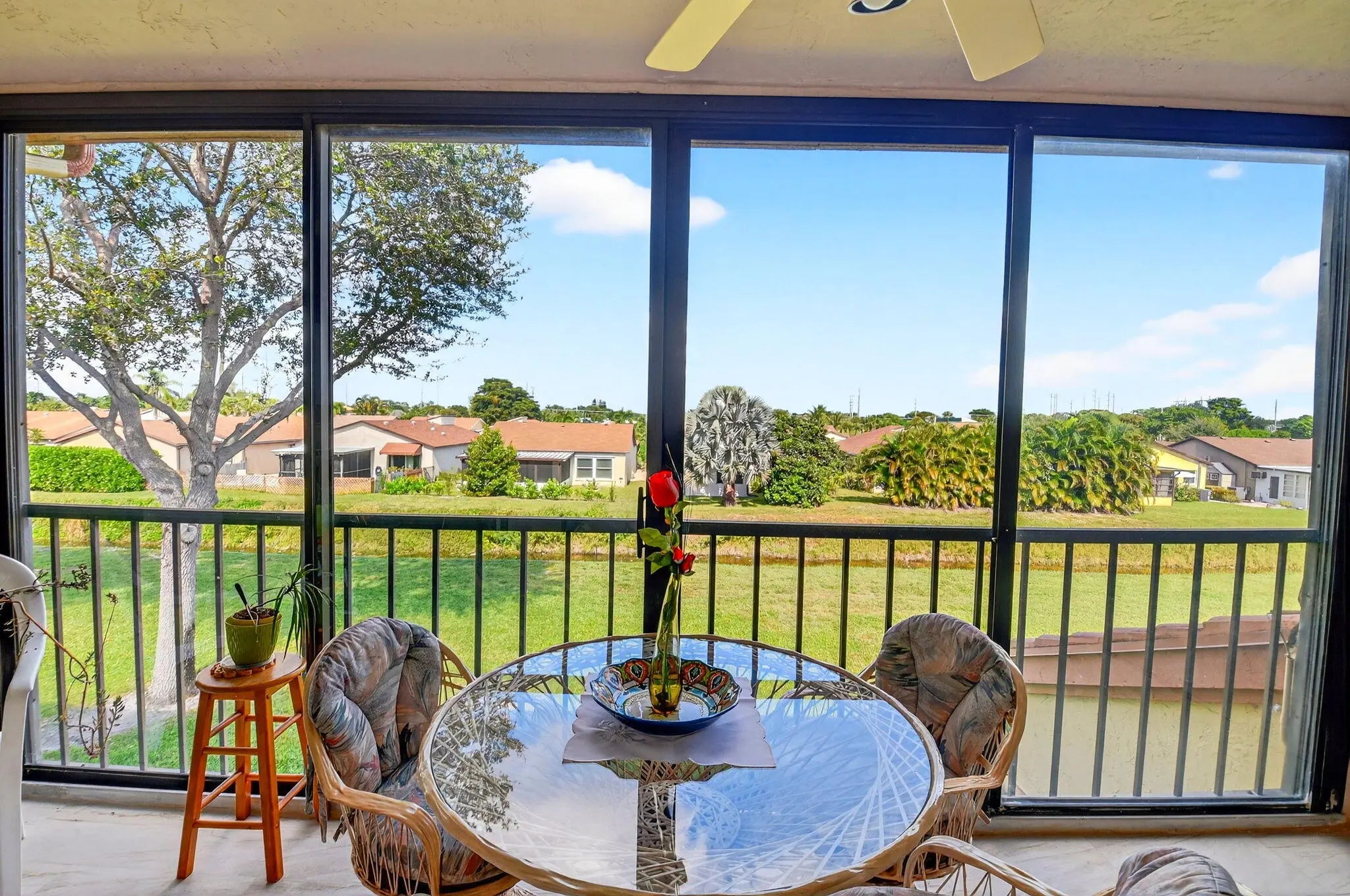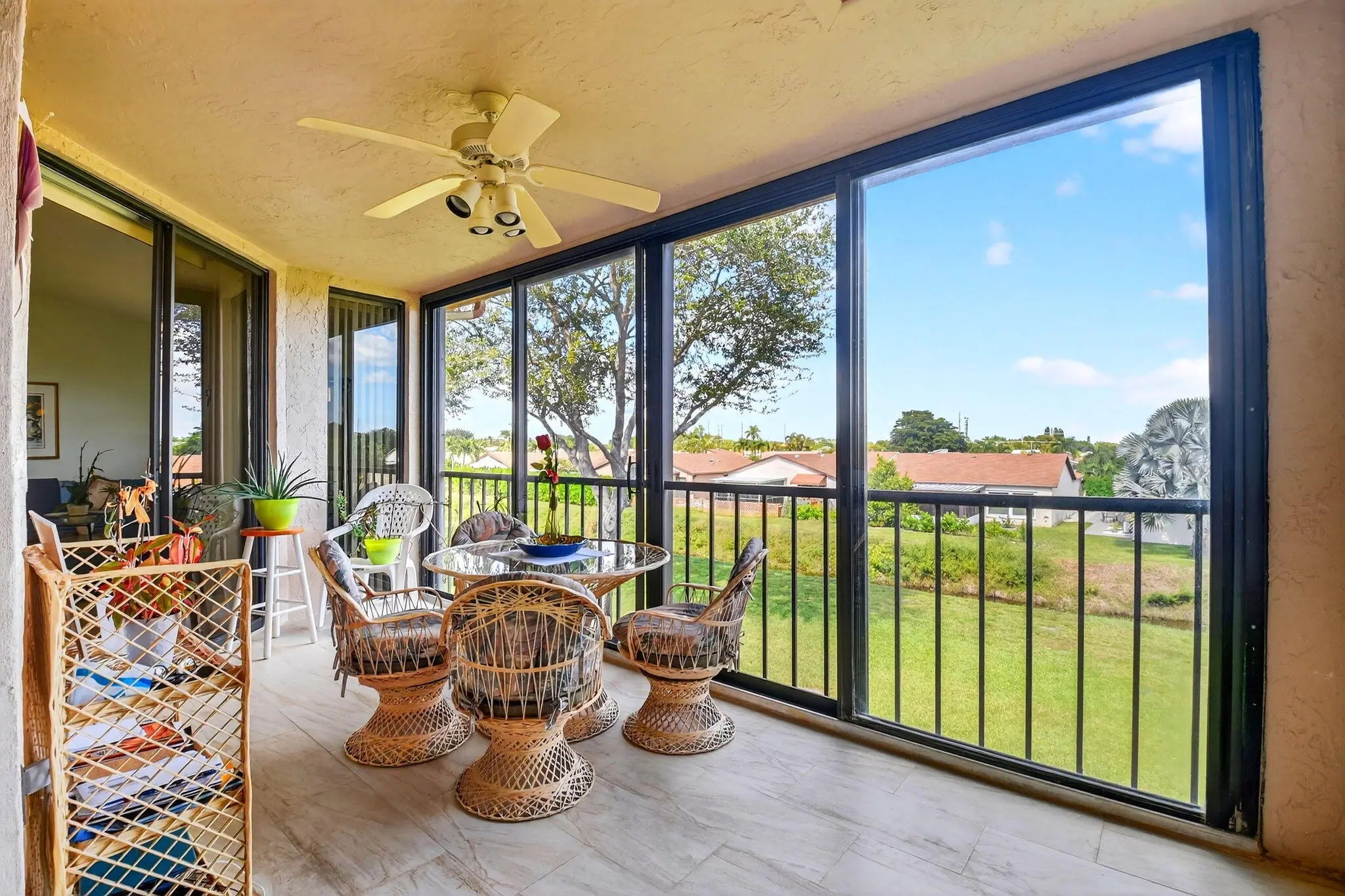 PERFECTION in Platina! 2nd floor 3/2 Grandi w private elevator & separate entrance. Prime location w/ greenbelt/canal view, in ''The King of Clubs'', as this guard-gated resort style community has come to be known in Boynton Beach. Take the stairs or your own elevator up to the open, airy interior & notice sweeping vaulted ceilings, gleaming tile floors, & beautiful view from glass enclosed porch off the LR & primary BR. Great layout w split BRs, eat in kitchen, & versatile 3BR/den. Features wood cabs., granite counters, & nice appliances in a kitchen suitable for cooking enthusiasts. Enjoy all you desire in spacious ensuite main BR, w soaking tub, separate shower, dual sinks, & walk-in closet. Come live the life you desire & deserve in fabulous Platina, described in add'l info attached. Unit is near to the multi-million-dollar clubhouse, where there is so much to keep you busy! Perhaps poolside dining at your resort sized swimming pool and clubhouse with neighbors and friends. Or you may choose to relax quietly at the satellite pool. If fitness is your enjoyment, Platina has a state-of-the gym, and every sports activity imaginable, including tennis, pickleball, billiards, racquetball, bocce, and shuffleboard. Numerous clubs are available to join; you can try fun crafting, play cards, attend parties, see entertainment acts, and more. Platina is desirably and conveniently located to shops, dining, highways, international airports and BEAUTIFL Florida BEACHES! In addition to all of these amenities, the association fee include fiber optic cable television, high speed internet, pest control, water and a 24-hour manned gate. Come live the fabulous lifestyle Platina has to offer!