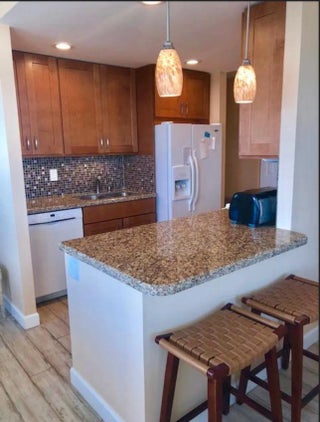Desirable corner unit with upgraded kitchen to enjoy the view as you cook. Bright, cheerful, faces North East, with great Ocean, Intracoastal, Nature Preserve Parks and City views. New hurricane windows and door. Wood floors in the main rooms and carpet in the bedrooms. King size bed in the master bedroom, 2 twin beds in the guest room. The bldg sits right on the Intra Coastal and is only steps away from the Deeded-Private-Beach access. This property has the largest unobstructed Intra Coastal frontage area of any other building on A1A. The property is surrounded by Nature Preserve Parks such as Rutherford Park, Gumbo Limbo, Ocean Strand Park.This condo sits only steps away from an exclusive private beach gate with outdoor shower, on the magnificent sparkling Atlantic Ocean!!!
