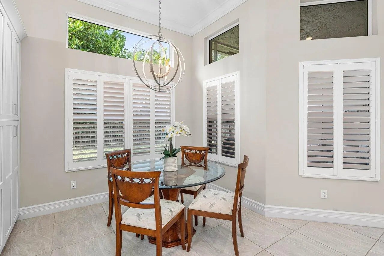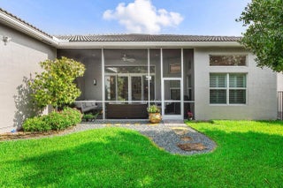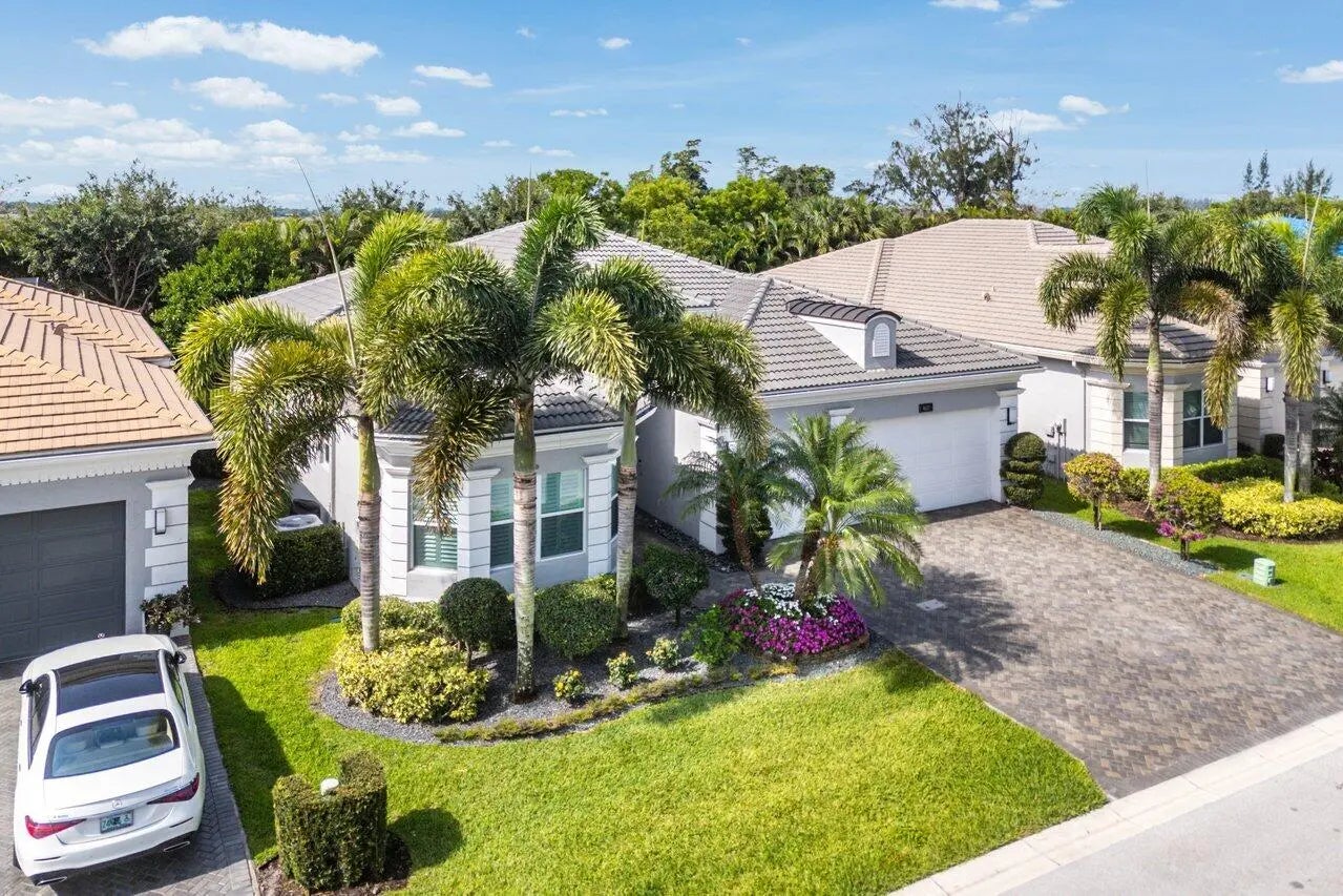 Experience refined living in this elegantly appointed and highly coveted Julia floor plan, perfectly situated on a lush, private, and lot. This home radiates curb appeal with its soothing gray exterior, decorative driveway, 3-car garage, and professionally designed landscaping with sculpted topiaries. Inside, you're greeted by dramatic volume ceilings, custom crown molding, abundant recessed lighting, natural sunlight, and pristine tile floors throughout. The open-concept Great Room is both stylish and inviting, featuring a stunning contemporary built-in entertainment wall, illuminated display shelves, and a high-end ceiling fan—ideal for effortless entertaining or relaxing. The light and bright chef's kitchen is a true ... showstopper, offering white straight-edge quartz countertops, a large quartz island with storage, tranquil stone backsplash, white Shaker cabinetry with pull-outs, top-tier stainless steel appliances (including French-door refrigerator), charming casual dining with backyard views, plantation shutters, snack bar with elegant pendant lighting, and a generous walk-in pantry. The formal dining room flows seamlessly from the kitchenperfect for gatherings. The primary suite (currently used as an office and not pictured) features rich laminate flooring, a bay window, tray ceiling, dual walk-in closets with custom built-ins, and a luxurious bath retreat with Roman tub, dual quartz vanities, a beautifully tiled frameless-glass shower, and full-height mirrors for added elegance. On the opposite side of the home, you'll find a stylish powder room with quartz counters. " Bedroom 2 offers a walk-in closet with custom built-ins, an atrium view, and an en-suite bath with tub/shower combo, designer tile, and granite vanity. " Bedroom 3, located at the front of the home, features a bay window, walk-in closet with custom built-ins, and an en-suite bath with glass-enclosed shower and granite vanity. " The 4th room serves perfectly as a den, complete with double pocket doors and laminate flooring. Step outside to your private outdoor oasis: a fully covered, screened-in patio with herringbone paver flooring, lush landscaping, and a fully fenced yardperfect for fur-babies and relaxing Florida evenings. This home is equipped with impact glass windows and doors and a whole-house generator, offering peace of mind during storm season. Additional updates include fresh exterior paint, a new water heater (2025), and high-end LG washer and dryer. This gem is located in Valencia Bay which is is an exceptional, active community offering resort-style pools, café, card rooms, social hall, arts & crafts studios, a state-of-the-art fitness center, tennis, pickleball, clubs, and endless activities. Live the Florida lifestyle you've been dreaming of!