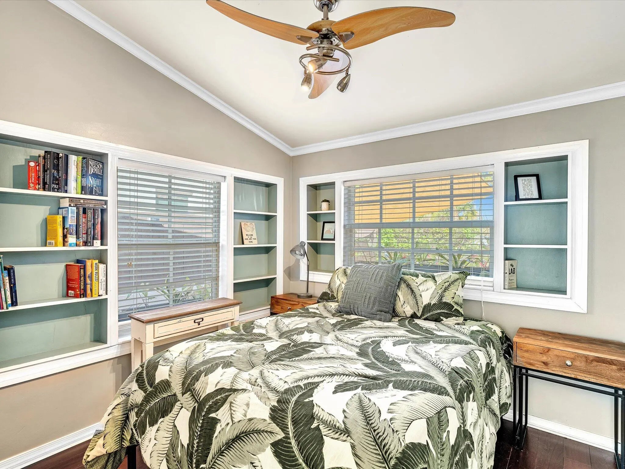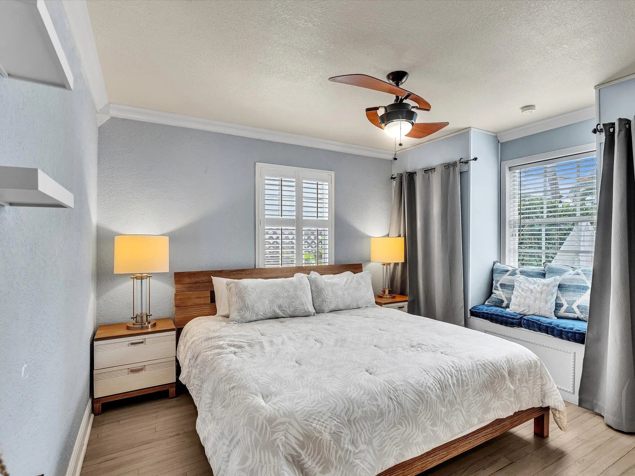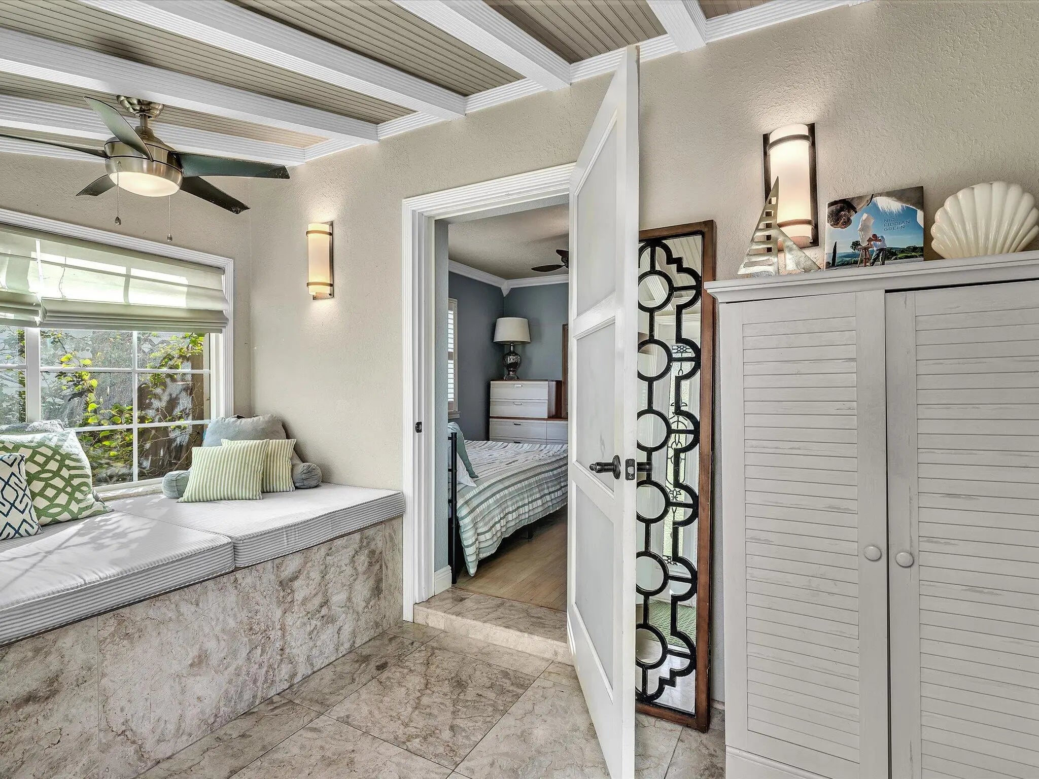 Charming 3BD/2BA home + Studio Guest Cottage, fully furnished and ready to live like you're on vacation! Features real wood floors, granite countertops, stainless steel appliances, crown molding, plantation shutters, closets in every room, and new impact doors with screened entries. Exterior includes a barrel-tile roof, new brick driveway, fruit trees, tiled side patio, and large fenced yard with gazebo-covered travertine terrace, turf, lush landscaping, and shed. A studio guest cottage with bath, lofted bed, new A/C, private patio, and alley parking is ideal for seasonal of annual rental. Located in around the corner from LaMarina Restaurant / Rybovich Superyacht Marina and the Icon Marina Village. Annual $6500 / Seasonal $6900