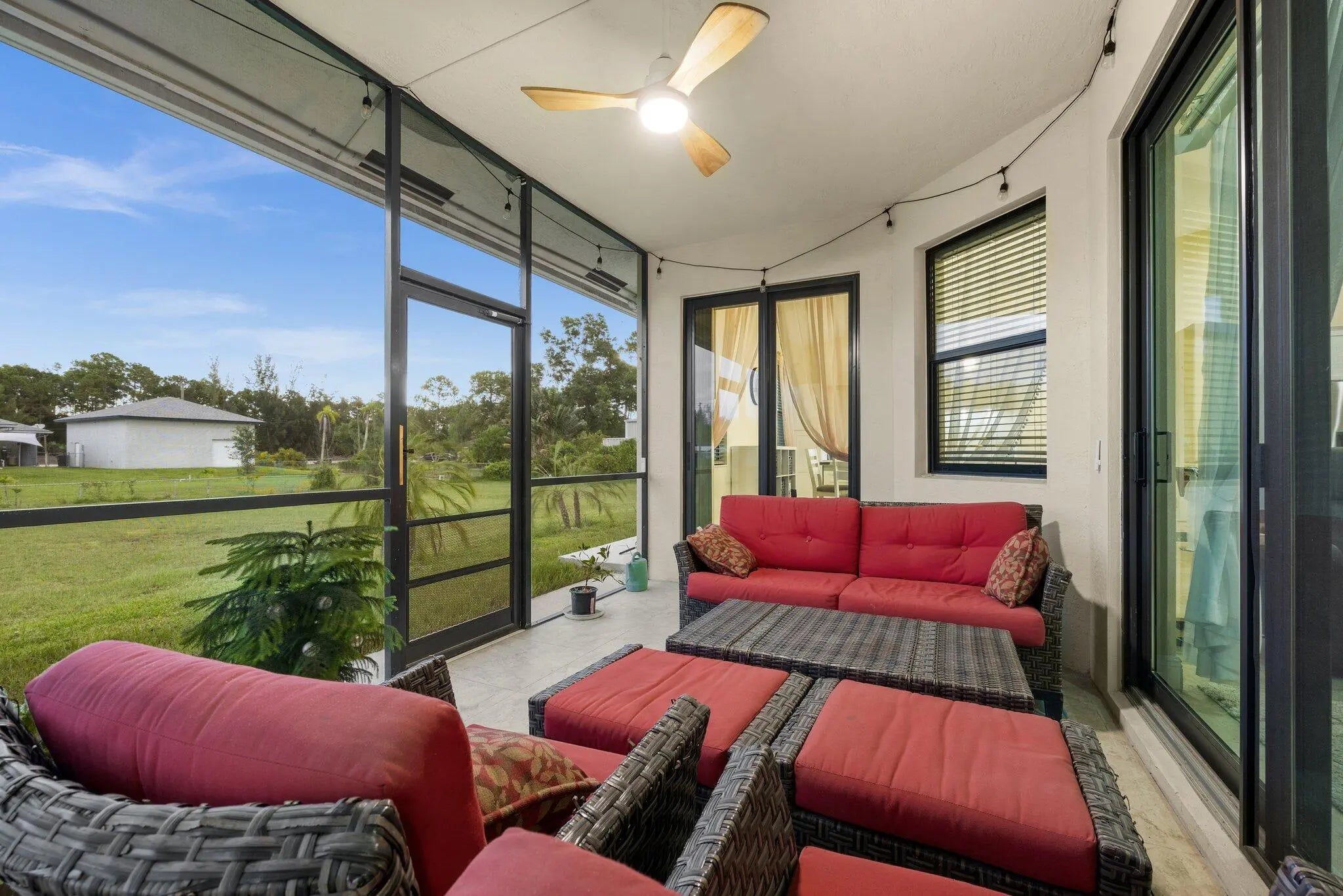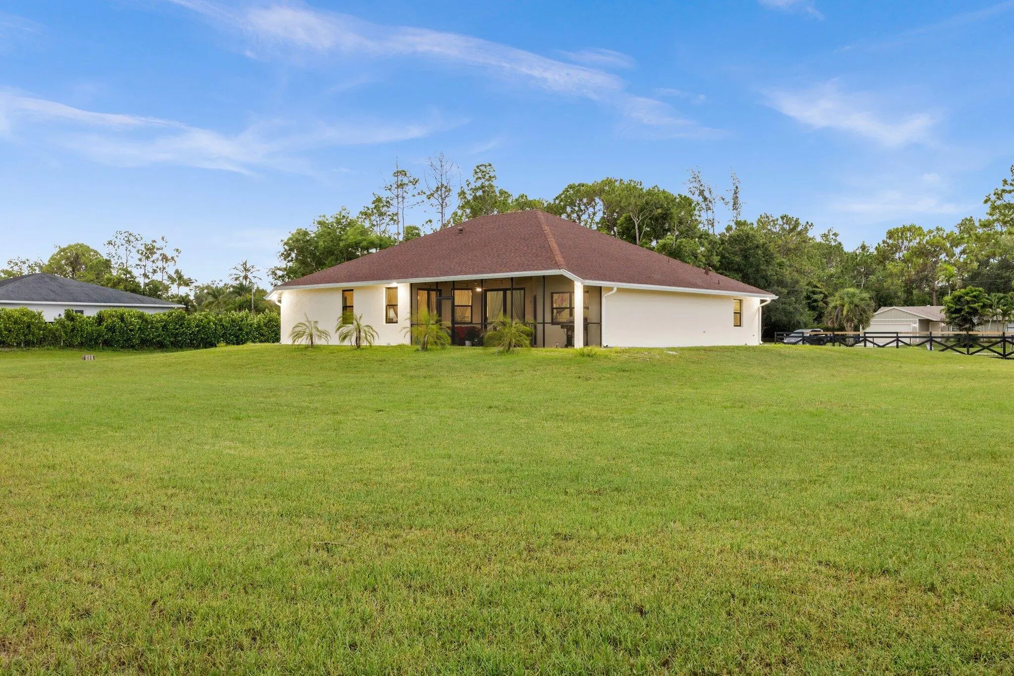Discover modern living at its best in this newly built 2023 CBS home, perfectly situated on 1.15 acres in the desirable Acreage/West Palm Beach area. This light-filled residence features 3 bedrooms plus a versatile den/office/flex room and 2 tastefully finished bathrooms. Designed with an open, airy floor plan and vaulted ceilings, the home welcomes you with abundant natural light, clean lines, and contemporary finishes throughout. The impact windows offer peace of mind and energy efficiency, while the spacious layout and screened in patio provides effortless flow for both everyday living and entertaining. The home also has foam insulated roof, built-in wall pest control system and underground power lines. Set on a generous, private lot with plenty of room to create your ideal outdoor- oasis, this property offers the perfect blend of modern comfort and peaceful living - just minutes from all the conveniences of Palm Beach County.