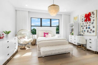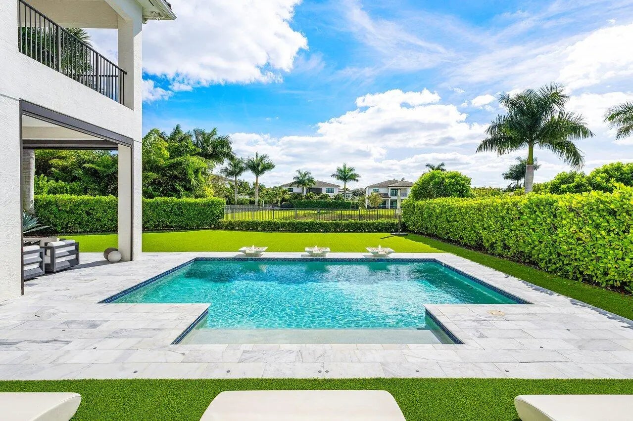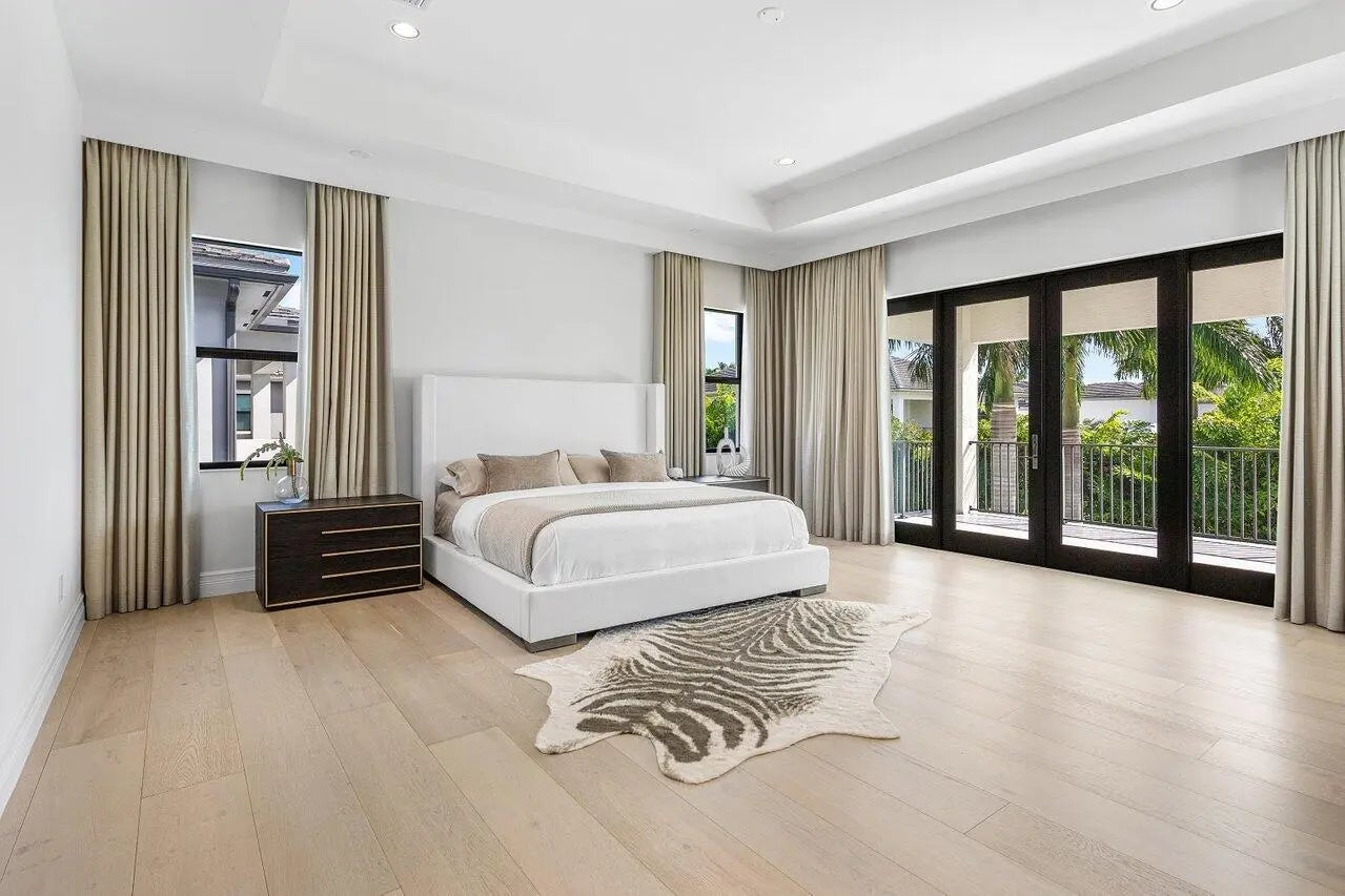 Experience Luxury Living in this custom built, stunning Palermo Model Estate in the Exclusive Gated Community of Boca Bridges. This home is simply gorgeous! From its magnificent curb appeal and breathtaking expansive backyard with water views, to its designer-decorated interior, this home will delight even the most discerning buyer. Furnished throughout by Artefacto, Restoration Hardware, Arhaus, CB2 and more, this listing shows like a model! This stunning home features Long Lake Views, 6 True Bedrooms, 8 Bathrooms, a Movie Room, a Loft, a 4 Car Air-Conditioned Garage, a Fully Turfed Extra Large Backyard with ''Hamptons Style'' Pool, 2 Laundry Rooms, a Gourmet Chef's Kitchen with an Extra Long Waterfall Island, 60 Inch Subzero Fridge, 48 Inch 8 Burner Stove, and 2 dishwashers. This unique home features beautiful custom flooring throughout which was installed after closing and not through the builder. The first floor features 24 x 48 large format porcelain tiles, while the lower guest bedroom, movie room, and the entire second floor feature 10.5 inch wide light oak wood flooring. Every corner of the home was thoroughly crafted and carried out in the most designer-appointed way. The generously sized yet private backyard was curated to perfection from every angle with its oversized "Hamptons Style" pool, custom gas bbq area, Restoration Hardware outdoor furnishings, and expansive, fully turfed lawn. Enjoy long lake views and gorgeous "cotton candy skies" every evening from your very own South/West facing backyard! For Privacy, This home is outfitted with high-end window treatments and automated shades throughout. You really have to see this home to believe it! No expense was spared. Some notable upgrades include: -Full Home Generator -Garage: Large format porcelain tiles, built in cabinets, and slat walls by Premier Garage -Fully finished built in closets throughout the entire home and pantry area by Delta Closets -Upgraded glass staircase railings - Beautiful custom window treatments throughout, many rooms with both blackout curtains and automated shades -Kitchen- Oversized 60 inch Subzero fridge, double Bosch dishwashers, large waterfall island, double stacked cabinets, upgraded 3 inch waterfall kitchen island countertop -Surround Sound capable home with ceiling outlets in many rooms throughout the home - Automated screens for all covered patio areas -All New Landscaping done in front along with new irrigation -Bathrooms - all upgraded cabinets and countertops throughout