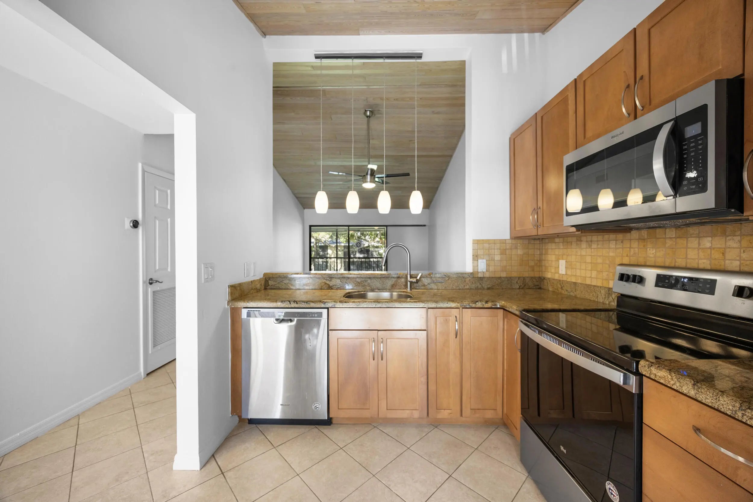 This EAST BOCA GEM is located on Spanish River Blvd and Second Avenue. This second-floor unit has vaulted wood ceilings creating an open bright environment. The kitchen has granite counter tops, shaker cabinets & stainless-steel appliances. Primary suite has walk in closet and updated bathroom. Second bedroom has glass patio door making it a great den or office space. Screened Patio has lots of space outdoors. New ROOF and painting were completed this year indoors. Outdoor painting spring 2026. Washer/dryer with plenty of storage is in unit. Sanctuary Pines is a intimate community with swimming pool, tennis and basketball court. Publix center is across the street. It's a few blocks to Spanish River beach, Mizner Park & Atlantic Avenue in Delray Beach. Easy access. to I-95. Move in Ready.