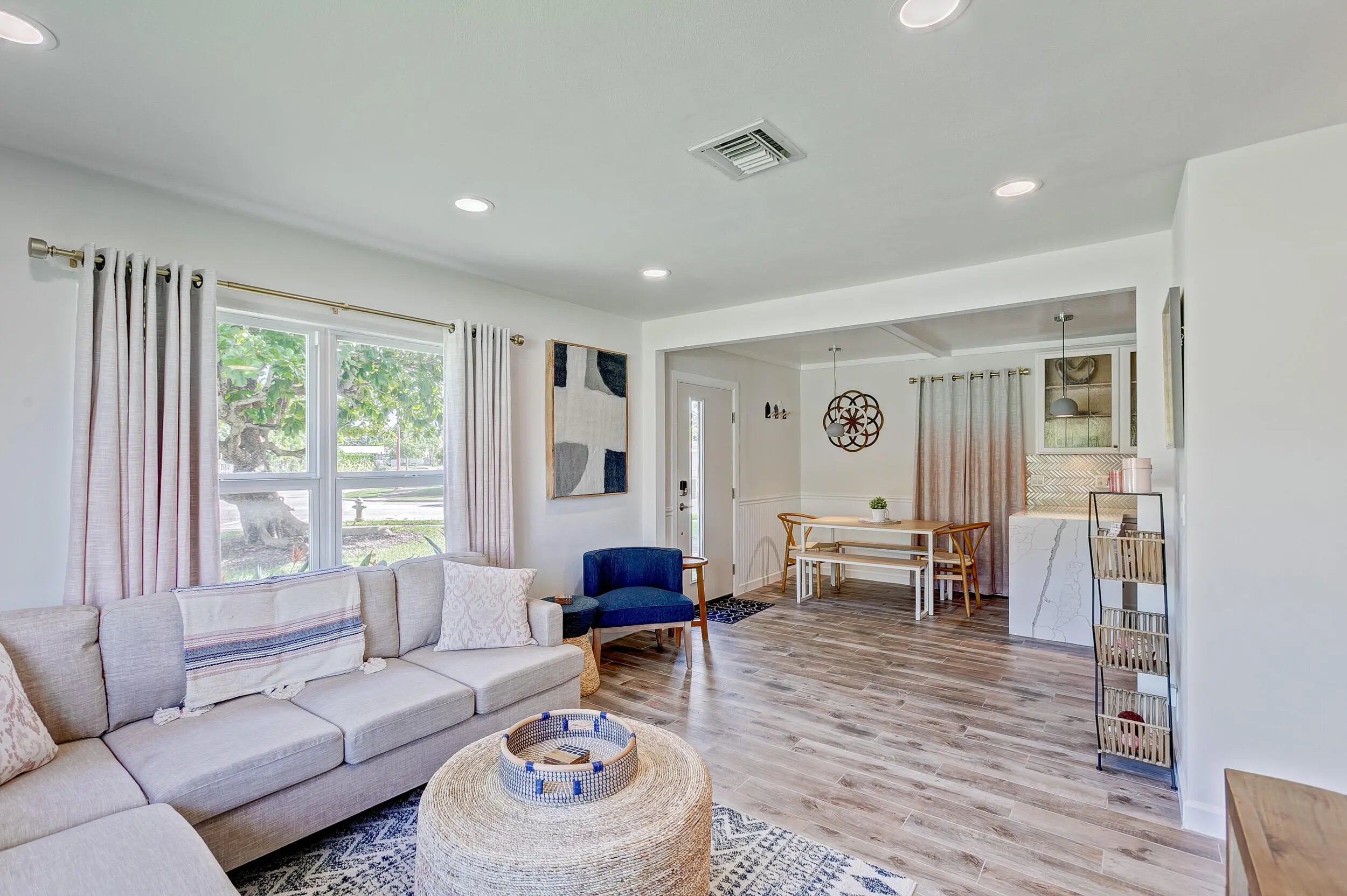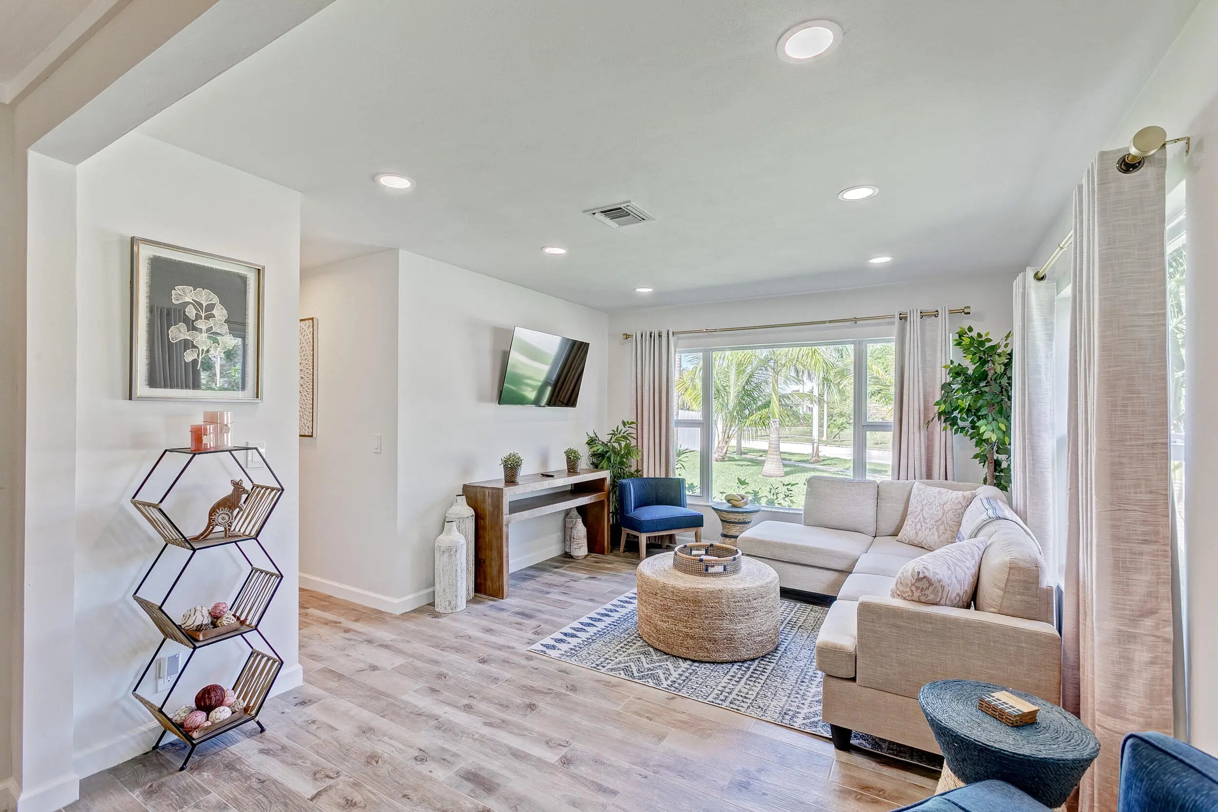 SoSo Mid Century Modern - move in ready! This charming bungalow features 3 bedrooms, 1 bathroom and lots of natural light on a beautiful, corner 8,700 sf lot. Some of the many upgrades include the renovated kitchen & bath, impact rated windows, tile floors and energy efficient a/c. Enjoy this property as is, expand or tear down and build your dream home - this neighborhood is flooded with many renovated homes as well as new construction. Great location near Flagler Drive, restaurants, shops, beaches, The Park, City Place and much more.