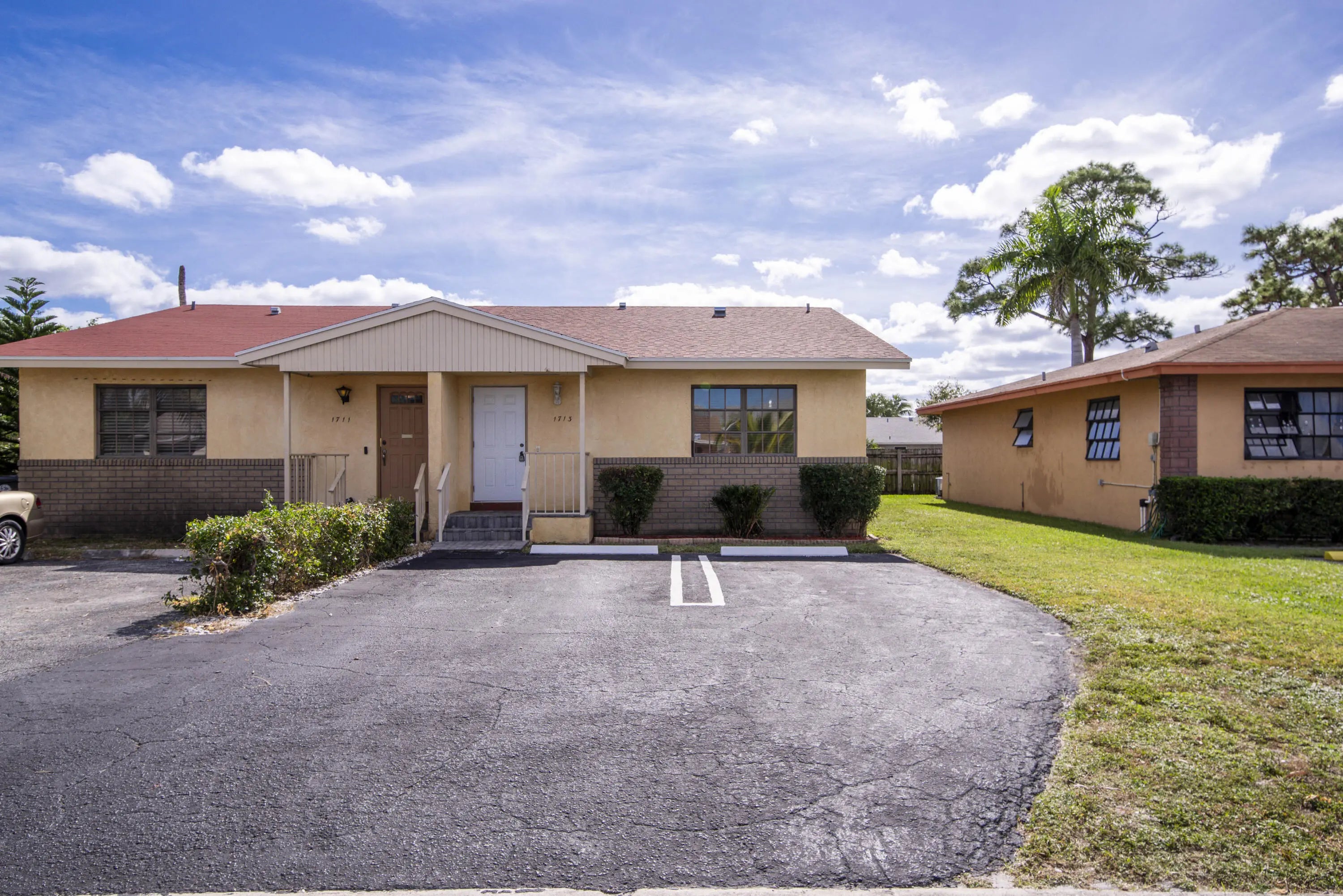 Cozy, updated, and move-in ready duplex in the heart of Lake Worth! This freshly renovated 2BR/2BA home features new laminate wood flooring, updated kitchen with stone-style countertops and backsplash, and a bright combined living/dining area. Both bedrooms are privately located at the back of the home, including a primary suite with its own patio access. Enjoy a beautifully redone screened-in back patio with wood-panel ceiling, perfect for relaxing. Located on a quiet cul-de-sac just minutes from I-95. Roof 2025. No HOA.