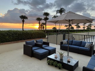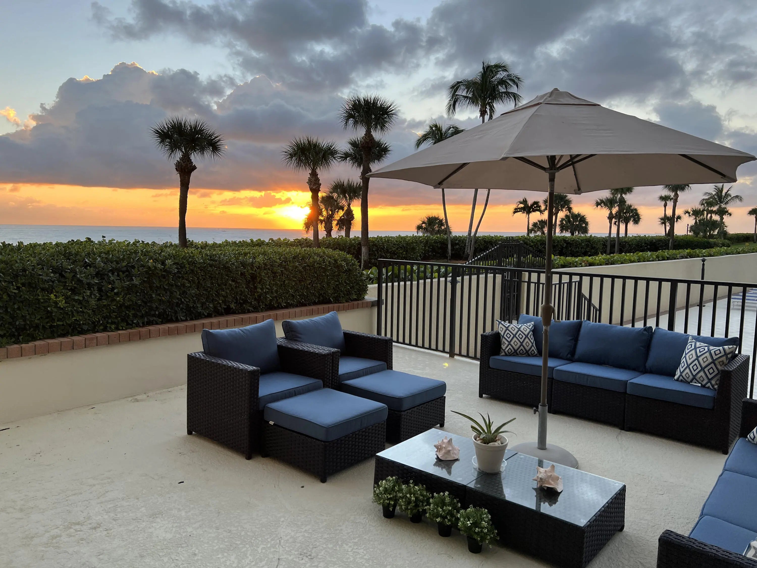 Annual rate $4,500/month. Season rate 2025-2026 $6500/month. Jan - April 26' rented. Off season $4500 3 months min. +13% tourist tax if lease is less than 6 months, comes furnished. This spacious ocean end unit offers direct ocean views from its 2 balconies, porch and over-sized private terrace next to the ocean. Just steps away from the ocean and beach-side pool, this unit is equipped with impact windows for added quietness and safety. Amenities at Ocean Trail include 9 tennis courts, a fitness center, community rooms, and heated lap and resort-style pools. Don't miss this opportunity to experience the best of oceanfront living. Photos do not reflect walls being white. Rent has been drastically reduced due to pool closure for construction. Community pool just steps away available for use