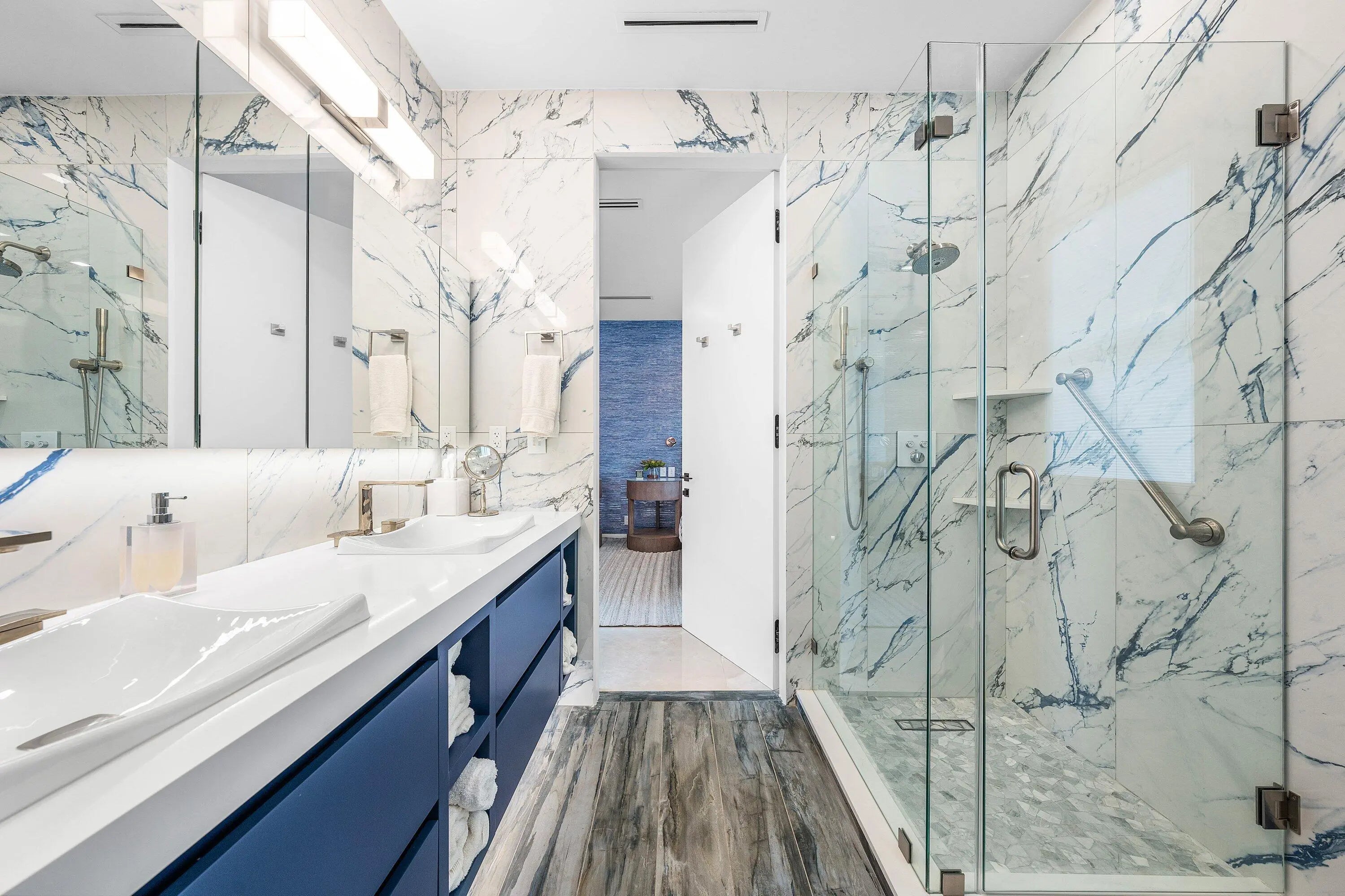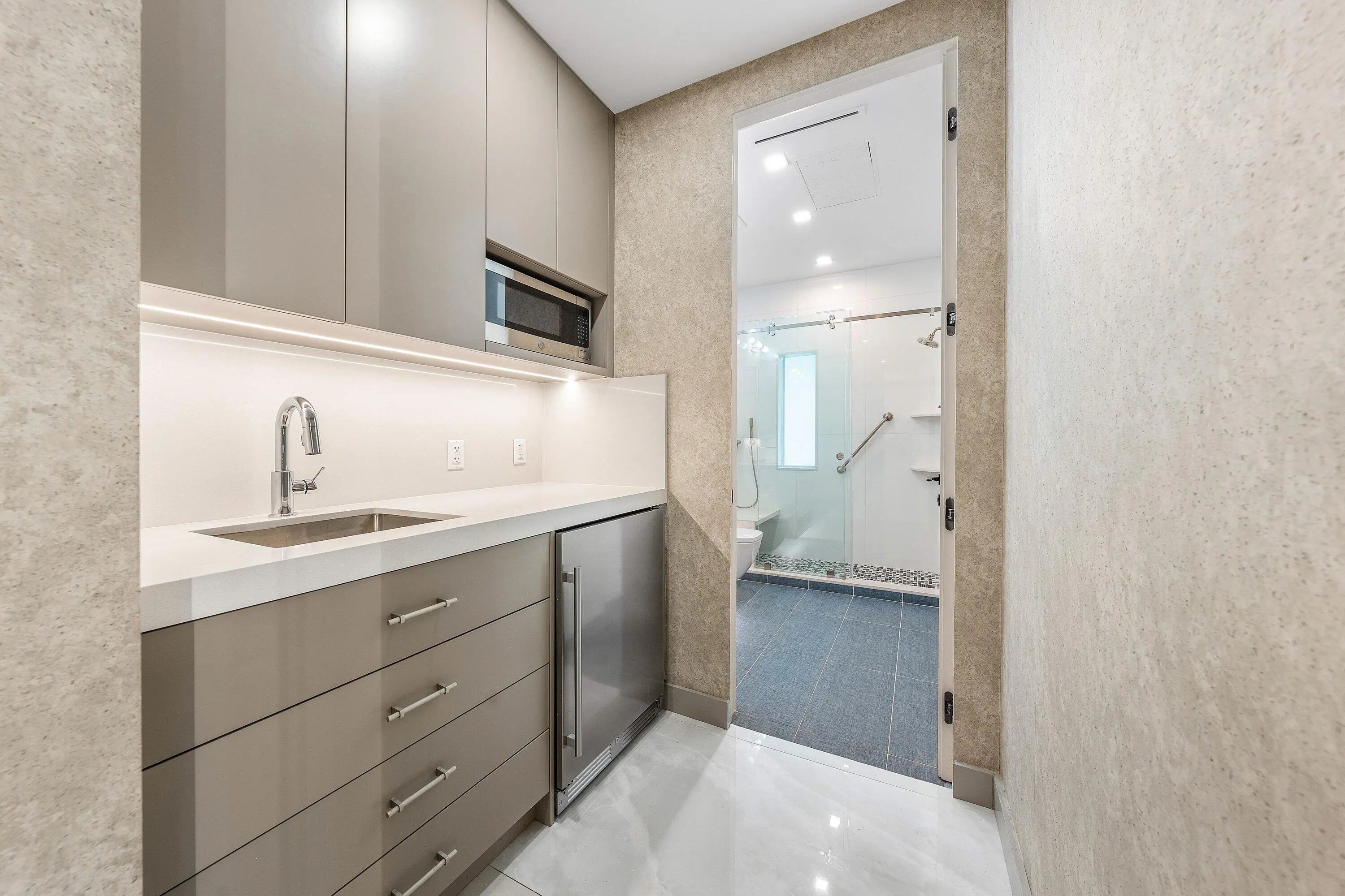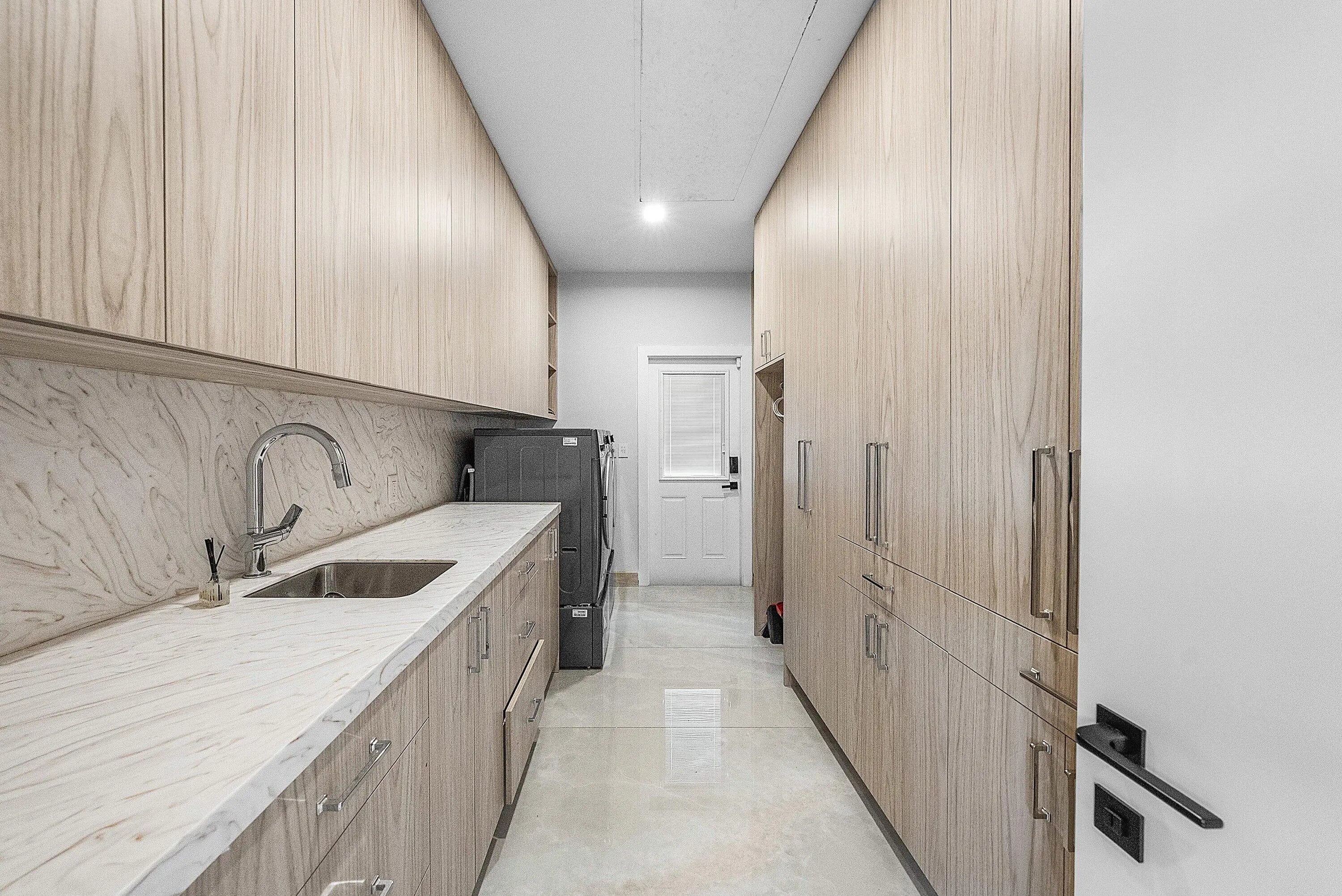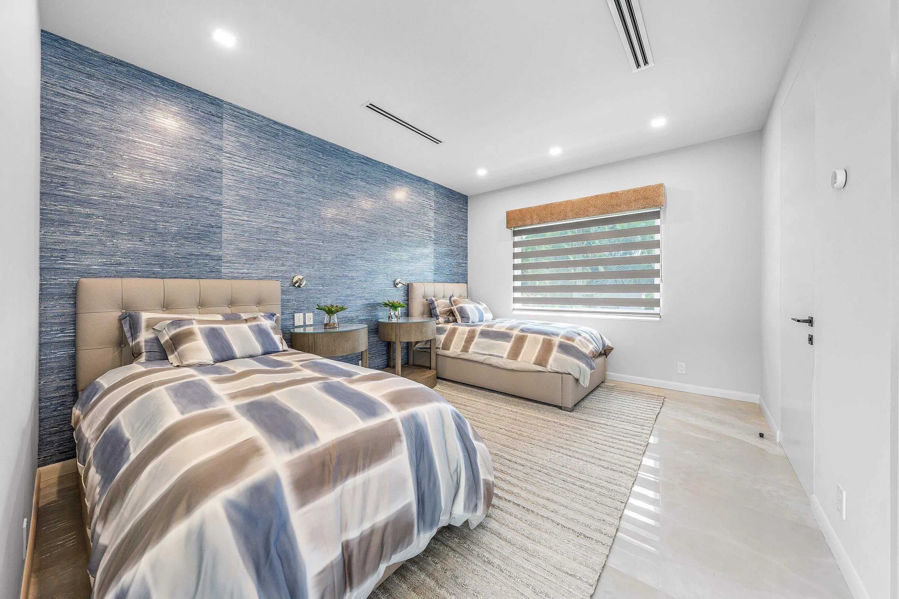 Contemporary Boca Raton Masterpiece with private 82-foot Olympic-like Heated Saltwater Pool and Spa and Impressive Decorative Stone Courtyard with Waterfall Features Throughout. A Tiki-Hut lounge-area and massive backyard complete the property. Welcome to a realm of unparalleled luxury at 6641 Giralda Circle in central Boca, a stunning 5-bedroom, 6.5-bathroom newly renovated and expanded from 2022-2023 on an incredible 1.55 acre lot with the finest craftsmanship and imported finishes throughout. Sleek lines and bespoke European finishes permeate every inch of this captivating single-story, 5,990-square-foot under-air residence with 8,146 total square-feet. Ornate A-frame ceiling details add a unique warm grandeur with custom wood and stone wall coverings that infuse warmth and style into the living spaces. The home was designed for grand entertaining - a bar with its own fridge, sink and ice machine, expansive flow between indoor and outdoor areas, and an open layout that can easily accommodate over 100 guests in comfort and style. A stunning statement, the 8-foot-tall pivot front-entry door, locally crafted from steel and glass to provide a grand yet minimalist entrance enhancing security and peace of mind. An airy foyer with sublime exposed architectural, white-washed wood-beams provides an awe-inspiring living area with volume vaulted ceilings, breathtaking decorative walls with a linear fireplace, additional cabinetry space, full bar complete with chandeliers. The open kitchen and dining area flows onto a private outdoor space overlooking the courtyard, waterfalls, and pool. Elegant and expansive, designed for both relaxation and entertainment. The kitchen was crafted entirely in Porcelain, both the countertops and backsplash are heat-resistant, non-porous, and virtually indestructible. The surfaces are elegant yet highly functional - a combination of sleek Italian design and bulletproof durability. The kitchen has an eat-in peninsula, custom Italian cabinetry, and high-end appliances such as Wolf and Sub-zero. Every surface flows effortlessly, with the design emphasizing minimalism, precision, and harmony between function and form. All kitchen and service-area appliances are top-tier European brands, fully integrated into the cabinetry creating a completely streamlined and sophisticated look to maintain a sleek aesthetic. The adjacent media or club room has gorgeous finished walls, a flat-screen TV and open cabinet shelving for the library touch. The library and all closets throughout the home were custom fabricated in the United States designed and detailed by J.Mark Interiors for both visual impact and long-term performance. Art and decor was personally curated by J. MARK Interiors, sourced from international galleries and bespoke artisans to create a layered, collected feel - refined yet deeply personal. All window treatments are custom-made by J.Mark workrooms, with fabrics flown in from Italy. The designs combine functionality with soft elegance, enhancing the home's architectural lines. The closets and the living and dining millwork were custom-made in Portugal, where artisanal woodworking traditions meet modern precision. Every piece was handcrafted, finished to perfection, and shipped to the U.S. exclusively for this residence. Every fabric and wall covering in the home was imported from Romo Fabrics and Wallpapers in Italy, known for their couture-quality textures and exceptional craftsmanship. Each selection was made to enhance the mood of the space, using rich weaves, silks, and refined patterns that bring warmth and depth to every room. The main office walls are finished in genuine mother-of-pearl, individually hand-applied to catch the light and create a subtle, iridescent glow - a true statement of sophistication. The oversized primary suite features a large encompassing open walk-in closet complete with multiple safes for His and Hers. Impressive Master bedroom facing the courtyard includes a retractable flat-screen television that opens from the ceiling. Full His and Her bathrooms, each one with its own identity and design. Her bathroom features a smart toilet and a tiled ceiling, bringing spa-like refinement into everyday living. The master bathroom is graced with warm and soothing stone accents, and a two-person walk-in shower. All secondary bedrooms have ample closet space and full en-suite bathrooms with Italian cabinetry. Each vanity was custom-made locally, designed to complement the architectural language of the house, with precise attention to proportion and material detailing. Every fixture and surface was selected for both comfort and style. The lighting program combines architectural lighting from Italy with carefully curated decorative pieces. The balance of function and ambience was a key design element - every fixture was chosen for both its beauty and quality of light. Custom solid-core doors, locally made in the United States, selected for soundproofing, proportion, and a clean, substantial feel. Porcelain tile floors throughout for a clean aesthetic, durability, and practicality that require no polishing or maintenance and maintains its finish indefinitely. The tones and layout were selected to create a seamless, timeless foundation throughout the home. The cedar closet constructed entirely of solid cedar, provides natural preservation and a rich, warm scent - both functional and beautifully luxurious. Large laundry room with a washer and dryer, sink-tub for convenience and additional storage space. Home has a complete Vitrea Smart Home system with glass plates, each one customized to the specific light point for effortless access and control. It's an ultra-modern, luxury-grade automation system that manages lighting, HVAC, and shading with precision and elegance; residents have seamless remote control of mood adjustable cove lighting, security alarm system, pool and spa, and audio-visual systems through two in-wall touch-screen pads. Full Cat 6 wiri