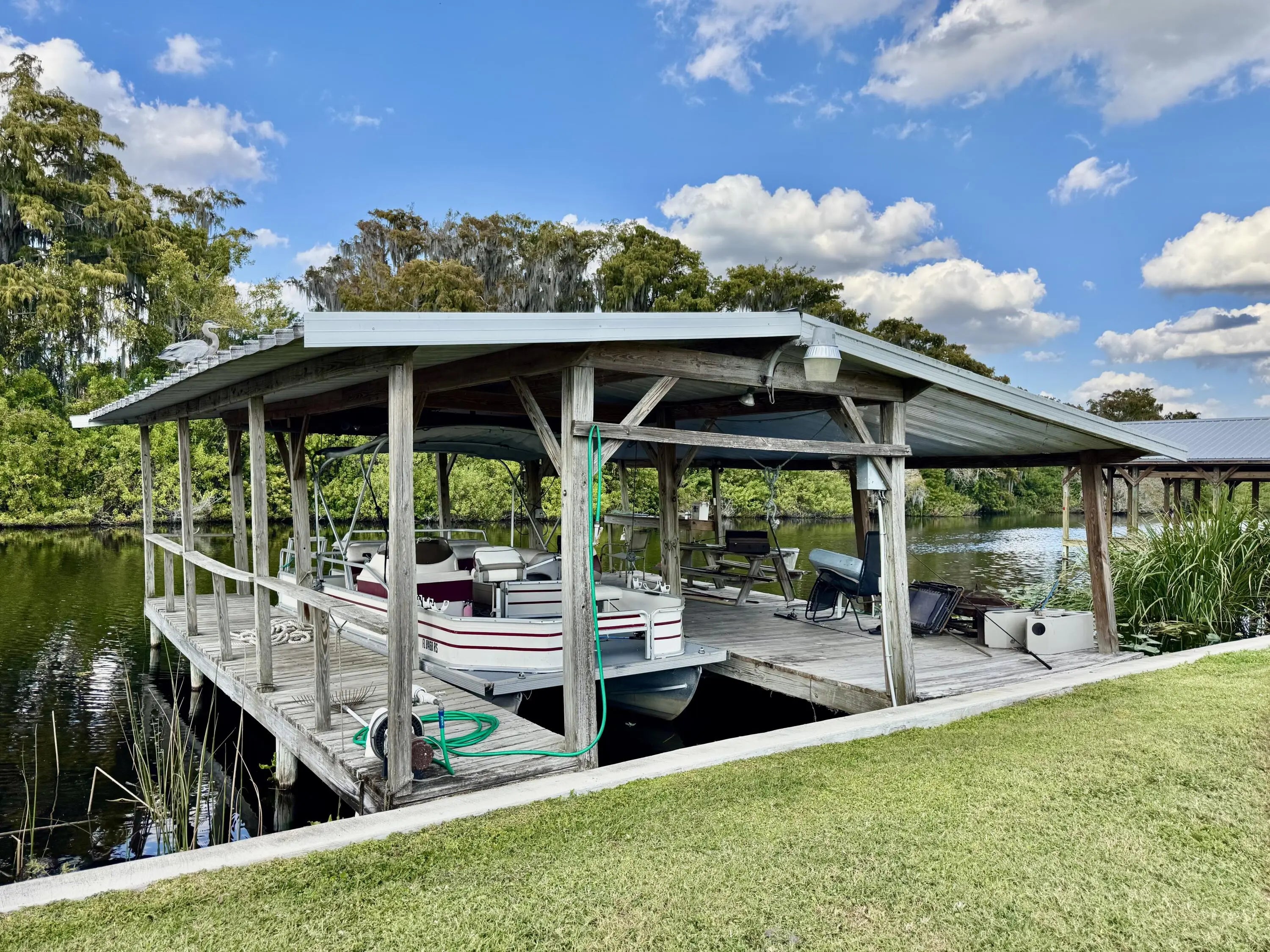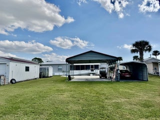 RIGHT on TAYLOR CREEK~ Lake ''O'' access! Great Curb Appeal! 3 Bd/ 2 Ba/ DWMH w/ double carport. Delightful 12x14 front porch. Spacious 1779 Sf under air-2656 TLA. Split plan. Galley kitchen, bkfast nook and formal dining. MB has double sinks, big shower and walk in closet. 12x24 Screened porch. Double driveway, parking for RV or boat. Two nice sheds. Metal roof, 2025 HVAC. Seawall, covered dock with/ hoist. FISHERMAN'S DREAM! Taylor Creek Isles. Dimensions are approximate, must measure for exact.