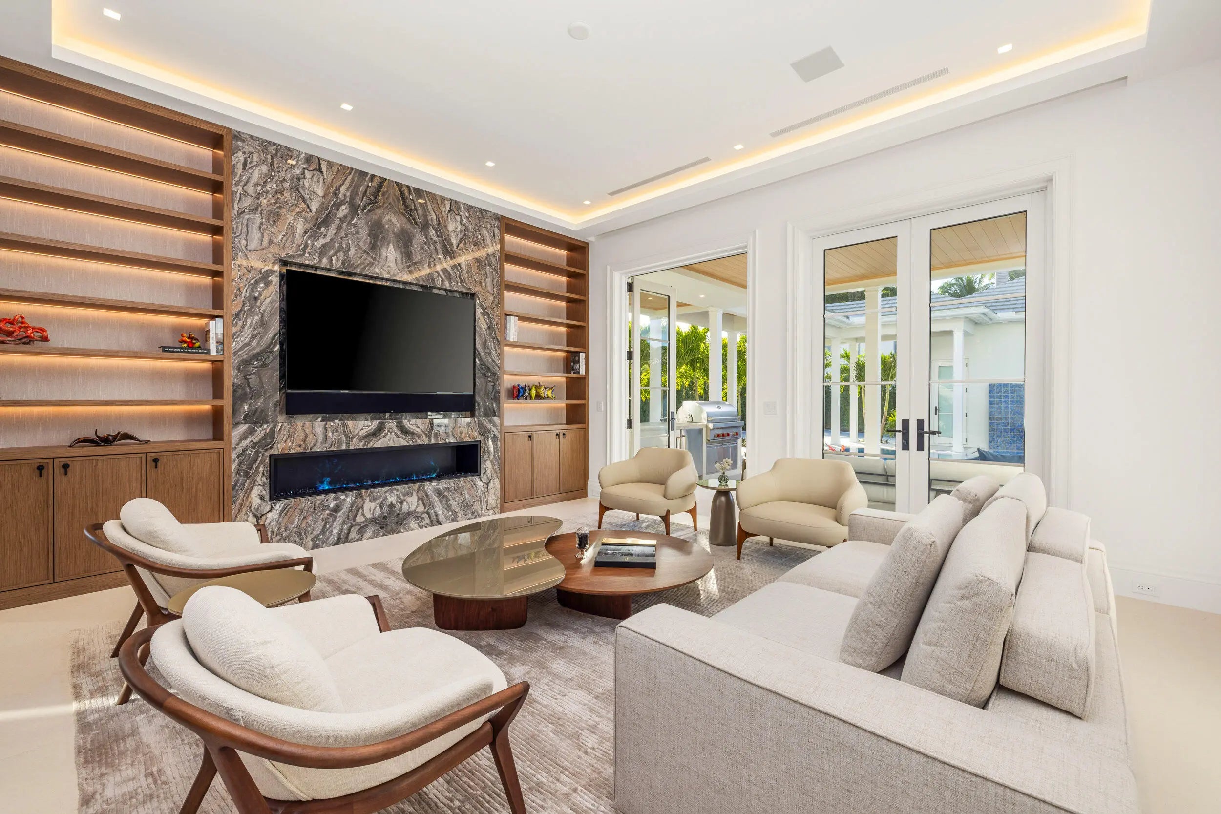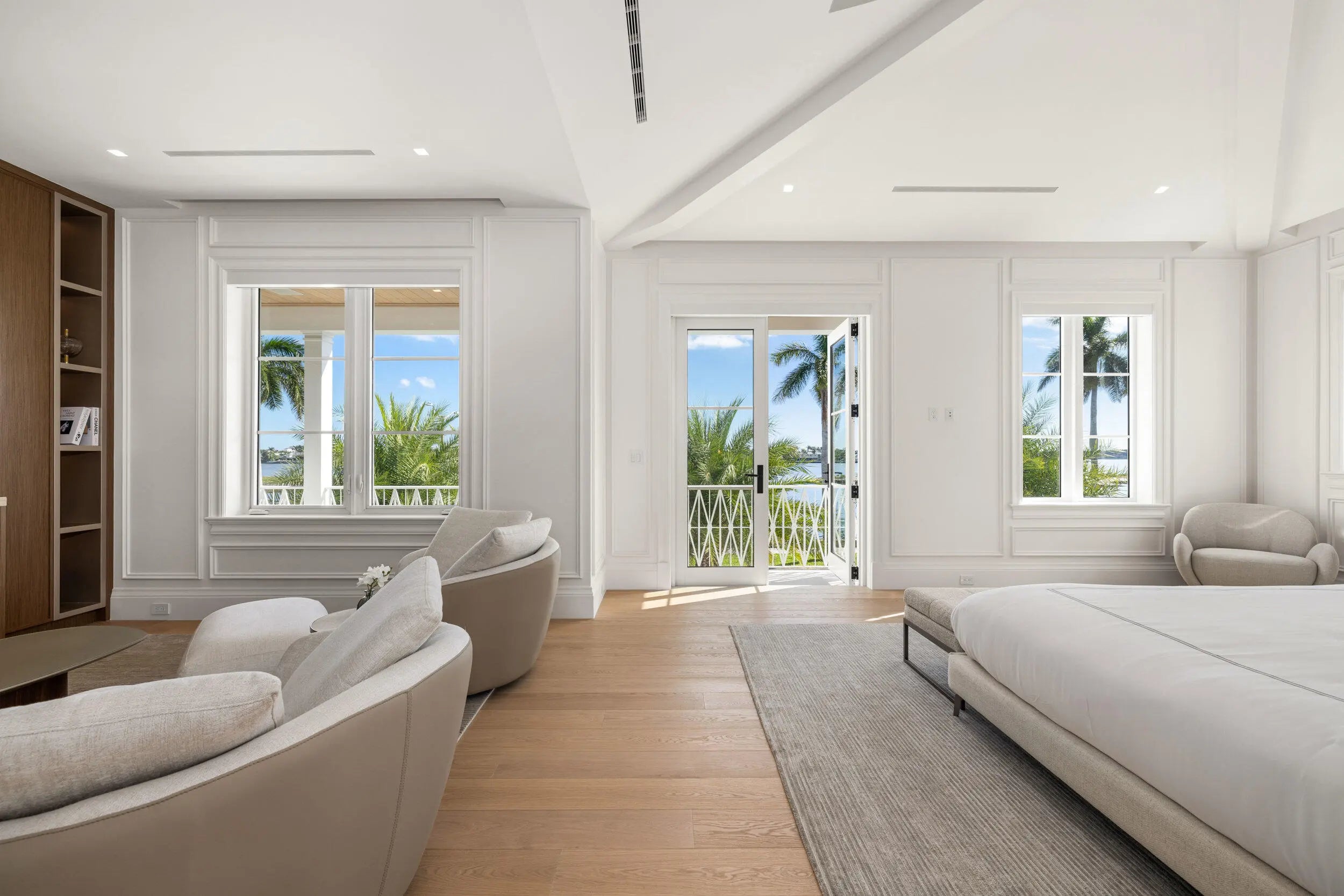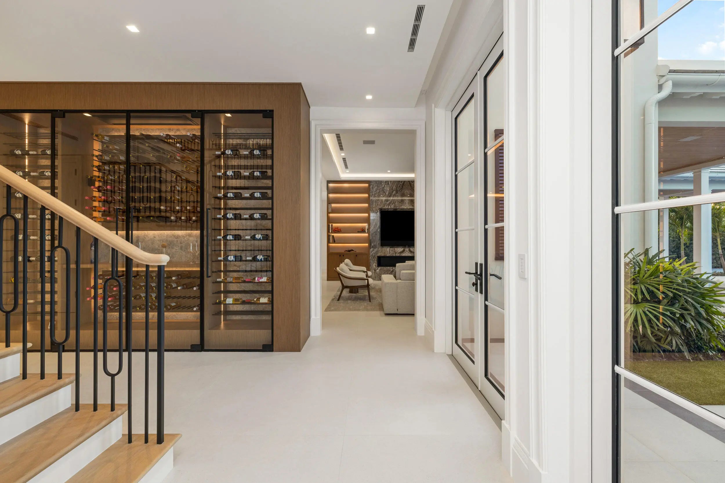 Welcome to 2415 S Flagler Drive, a newly constructed Monterey-style residence on the Intracoastal in historic El Cid. Nearly 6,000 sq. ft. under air, the home features a bright foyer, formal living room with marble fireplaces, and a chef's kitchen with Sub-Zero and Wolf appliances, natural stone counters, custom cabinetry, and an oversized island opening to the family room. Additional spaces include formal dining, a wine cellar, office, and media room. With 5 bedrooms and 7.1 baths, plus a tranquil primary suite, this home is perfect for guests and entertaining. Also offered are automated Lutron window treatments and integrated home automation. Outdoor living includes a Euro-edge pool, cabana, loggia, and summer kitchen. About 5 minutes from downtown WPB and Palm Beach. Welcome to 2415 S Flagler Drive, a newly constructed Monterey-style home on the Intracoastal in the sought-after historic El Cid neighborhood. With nearly 6,000 sq. ft. under air, this residence combines classic architecture with modern finishes and a thoughtful, livable layout. The main level features a bright foyer, a formal living room with marble fireplaces, and stunning views of the water. The chef's kitchen is equipped with Sub-Zero and Wolf appliances, natural stone countertops, custom cabinetry, and a large island that opens to the family room. The home also includes a formal dining room, a temperature-controlled wine cellar, a dedicated office, and a media room. With 5 bedrooms and 7.1 bathrooms, the property provides flexibility for up to six en-suite bedrooms. Each room offers generous closets and beautifully designed bathrooms. The primary suite includes a sitting room, a spa-style bath, and tranquil Intracoastal views. Dual laundry rooms add convenience. Outdoor living is at the forefront with a Euro-edge pool, cabana, covered loggia, and a complete summer kitchenideal for entertaining. The cabana also functions as a separate guest house, creating additional options for visitors or long-term stays. Just 5 minutes to downtown West Palm Beach and the island of Palm Beach, beaches, parks, and restaurants, this home delivers exceptional coastal living in one of the area's most desirable neighborhoods with classic historic charm.