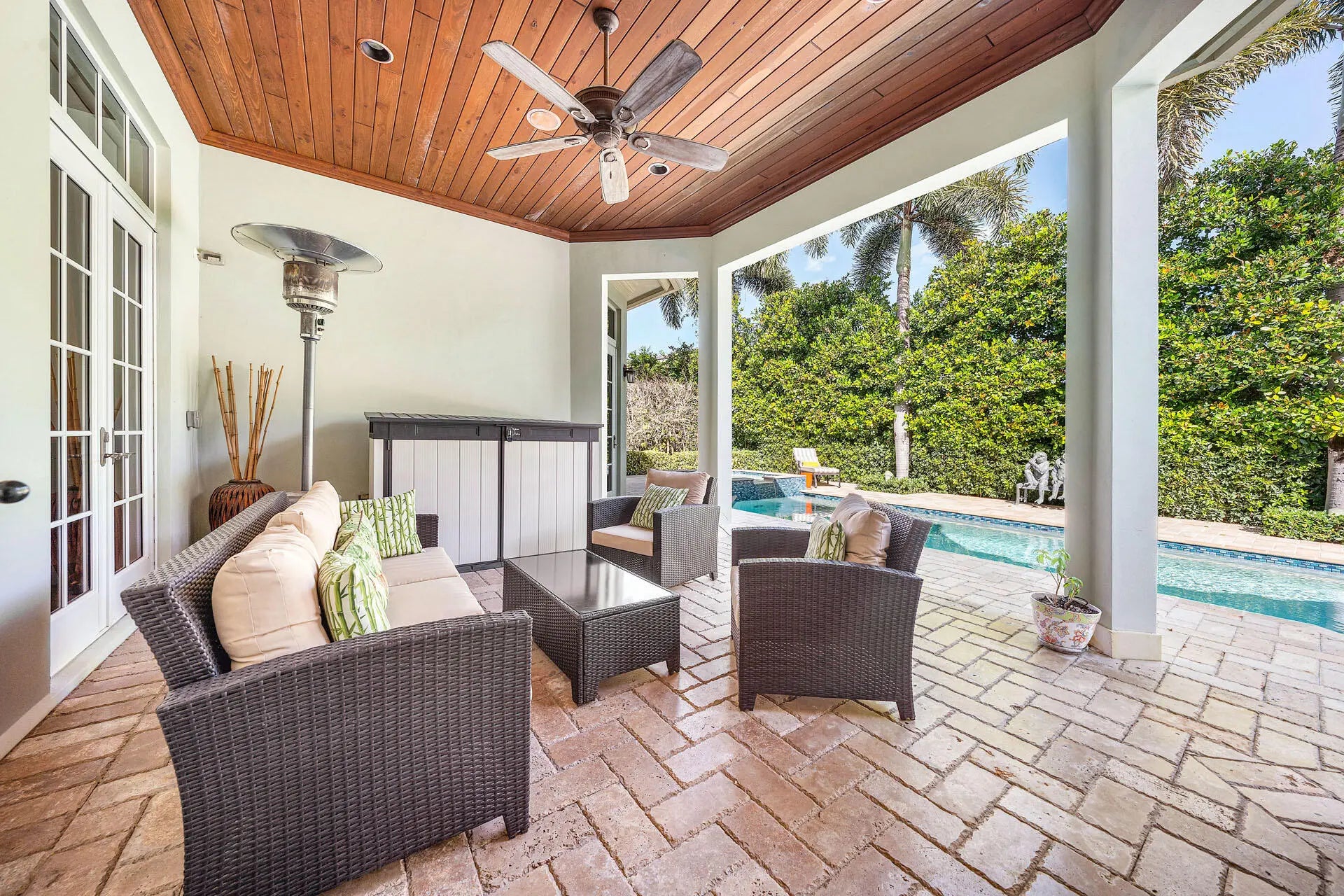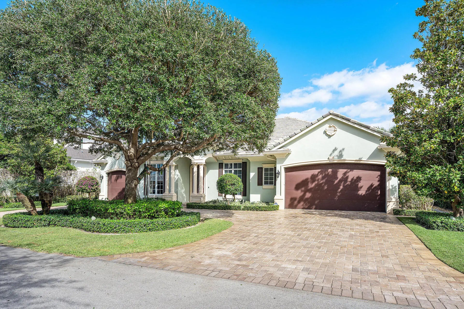 Discover this beautifully finished single-story transitional estate offering just over 4,000 sq ft of elegant living on a quiet street in the prestigious Royal Palm Yacht & Country Club. Built in 2010 and designed for effortless living, the home features an inviting layout, spacious living and dining areas, and a seamless connection to the backyard with east exposure—perfect for morning light and all-day outdoor enjoyment. French doors open to a covered loggia overlooking the pool and raised spa with ample patio space for relaxing or entertaining. Inside, refinements include hardwood flooring, high ceilings, and custom moldings. The gourmet kitchen flows easily into the living spaces, and the private bedroom suites provide true one-level convenience. Additional highlights include a 2-car garage plus golf cart, and the rare benefit of single-story living. A rare opportunity within Boca Raton's premier community.