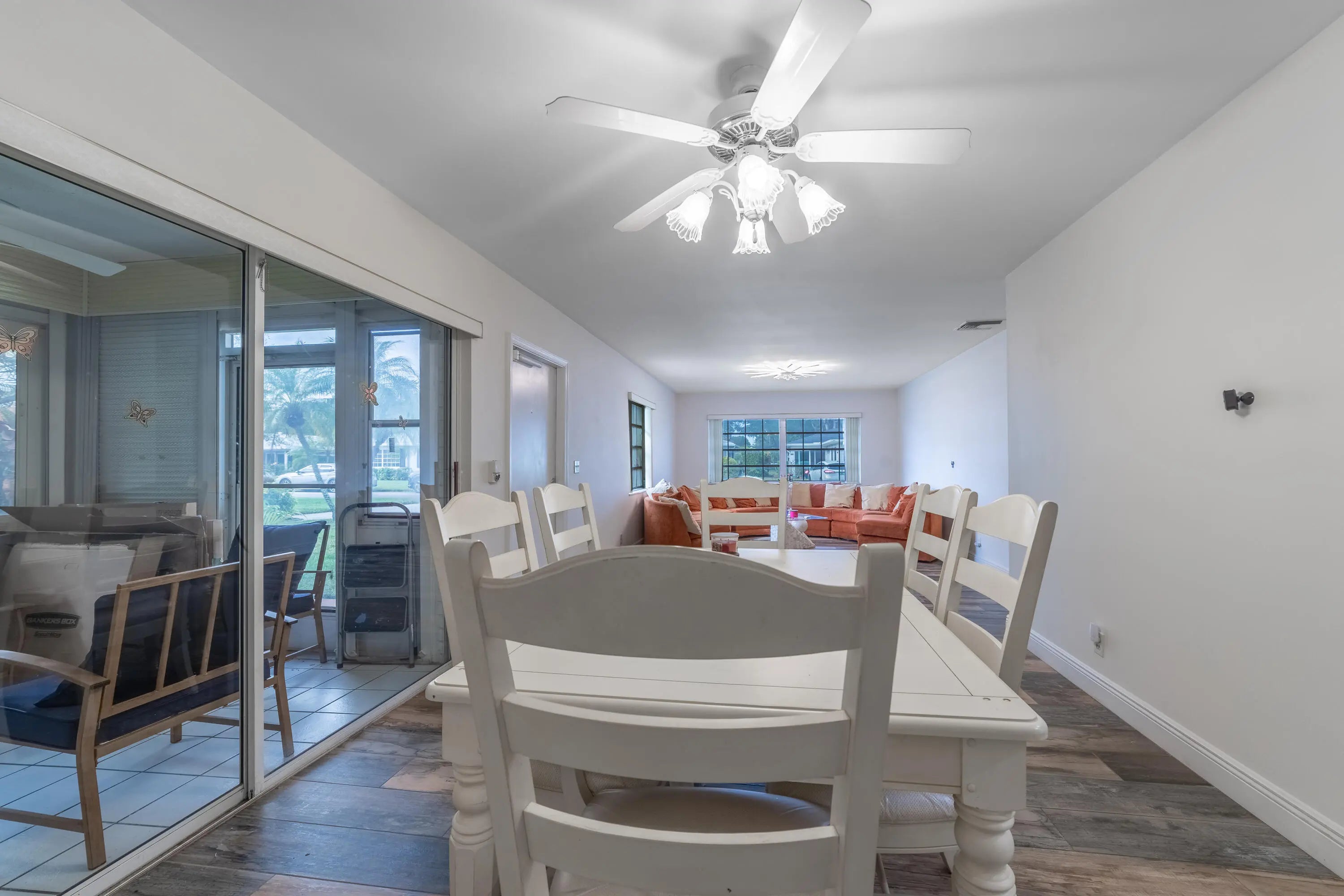 Beautiful 2 Bedroom 2 Full Bath Corner condo in the 55+, Pet-Friendly community of Limetree in Boynton Beach. Features include Ceramic Barnwood Tile flooring throughout - no carpet, Stainless Steel appliances, New Refrigerator & indoor Full-Size Frontloading Washer & Dryer, Spacious Primary Bedroom with large Walk-in Closet & Bathroom with tub/shower combination, Second Bath has stall shower, Indoor/Outdoor Security cameras, Screened/Glassed Patio with storage closet, Two Parking Spaces in Driveway close to the entrance, NO popcorn ceilings. Leasing permitted after 2 yrs. One pet up to 15 lbs. A/C 2021, ROOF 2019. Amenities include: Clubhouse, 3 Heated Pools, Fitness Center, Billiards, Pickleball, Tennis, Shuffleboard, & Bocce. Close to Restaurants, Shopping, & the Beach.