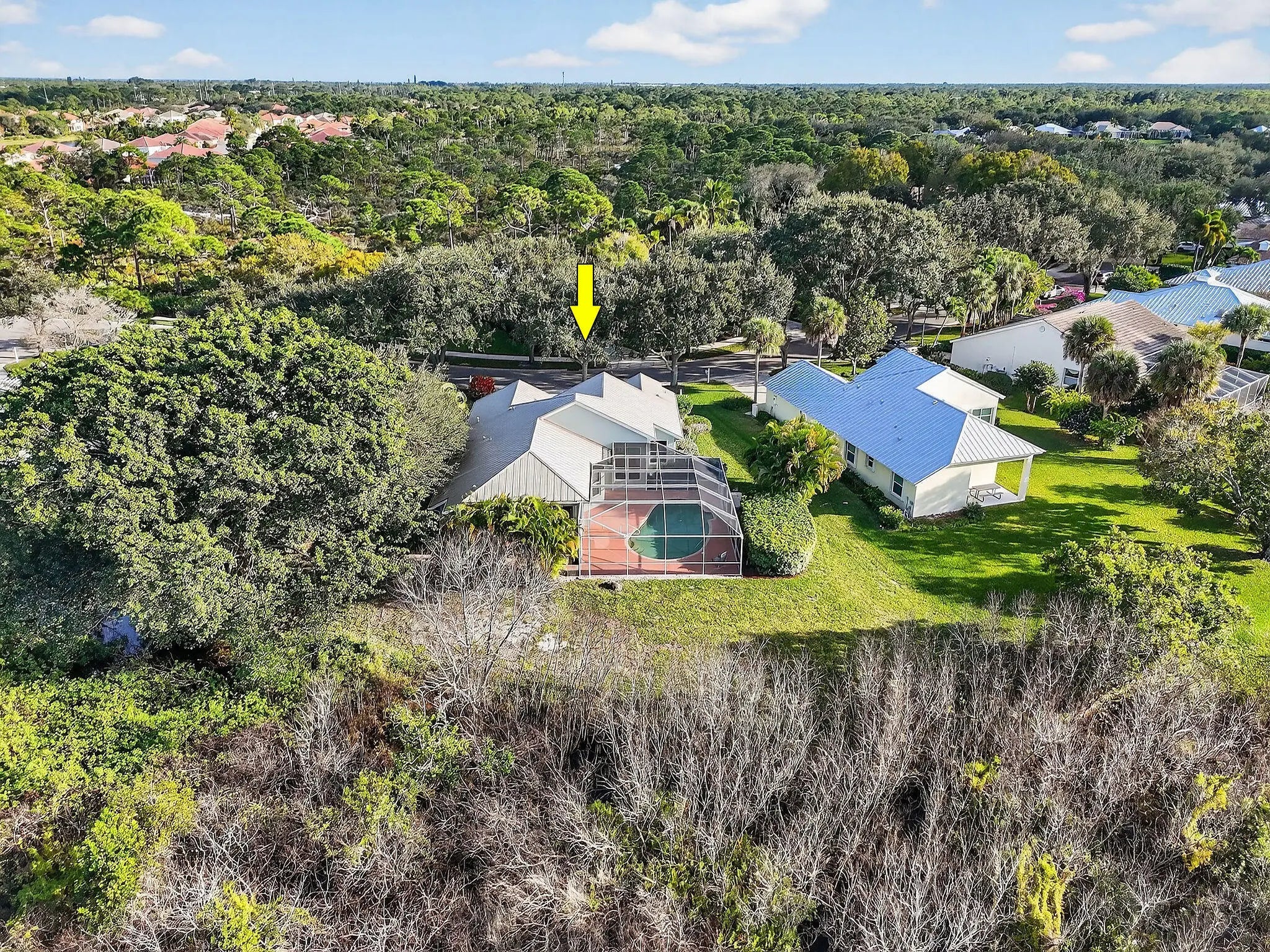 Experience refined Florida living in this exceptionally designed 3-bedroom, 3-bath residence with a den, located in the highly desirable Arbors of Hobe Sound. Set in a private, tranquil setting, this home is filled with natural light and thoughtfully crafted for comfort and elegance. High ceilings, crown molding, and wood-look ceramic tile create a timeless interior, while the expansive primary suite offers a true retreat with double vanities, a walk-in shower, and a Roman soaking tub. Step outside to your own private oasis—a heated free-form pool with screened patio overlooking a peaceful pond, perfect for entertaining or unwinding while enjoying beautiful sunset views. Recent upgrades include a metal roof (2020), central A/C (2019), impact windows and sliding doors, and. and a new Pool Heater, providing both luxury and peace of mind. A new impact rated garage door has been installed as well. Ideally situated near a quiet cul-de-sac with access to a scenic nature trail, this home blends privacy, elegance, and lifestyle in one exceptional offering just minutes from everything Hobe Sound has to offer. Visit the Hobe Sound Restaurants, Golf Courses, the new Tennis Center, and the beach, all of which are within minutes. See this unique opportunity soon.
