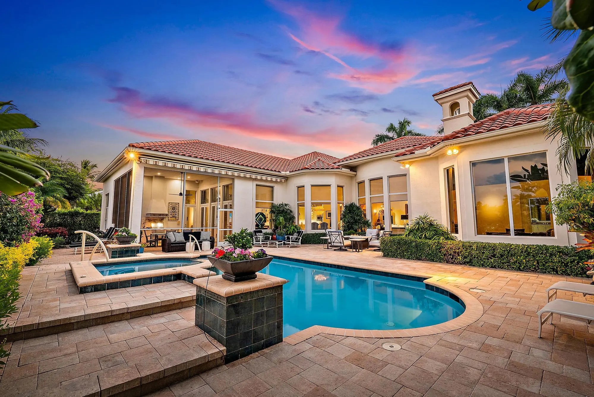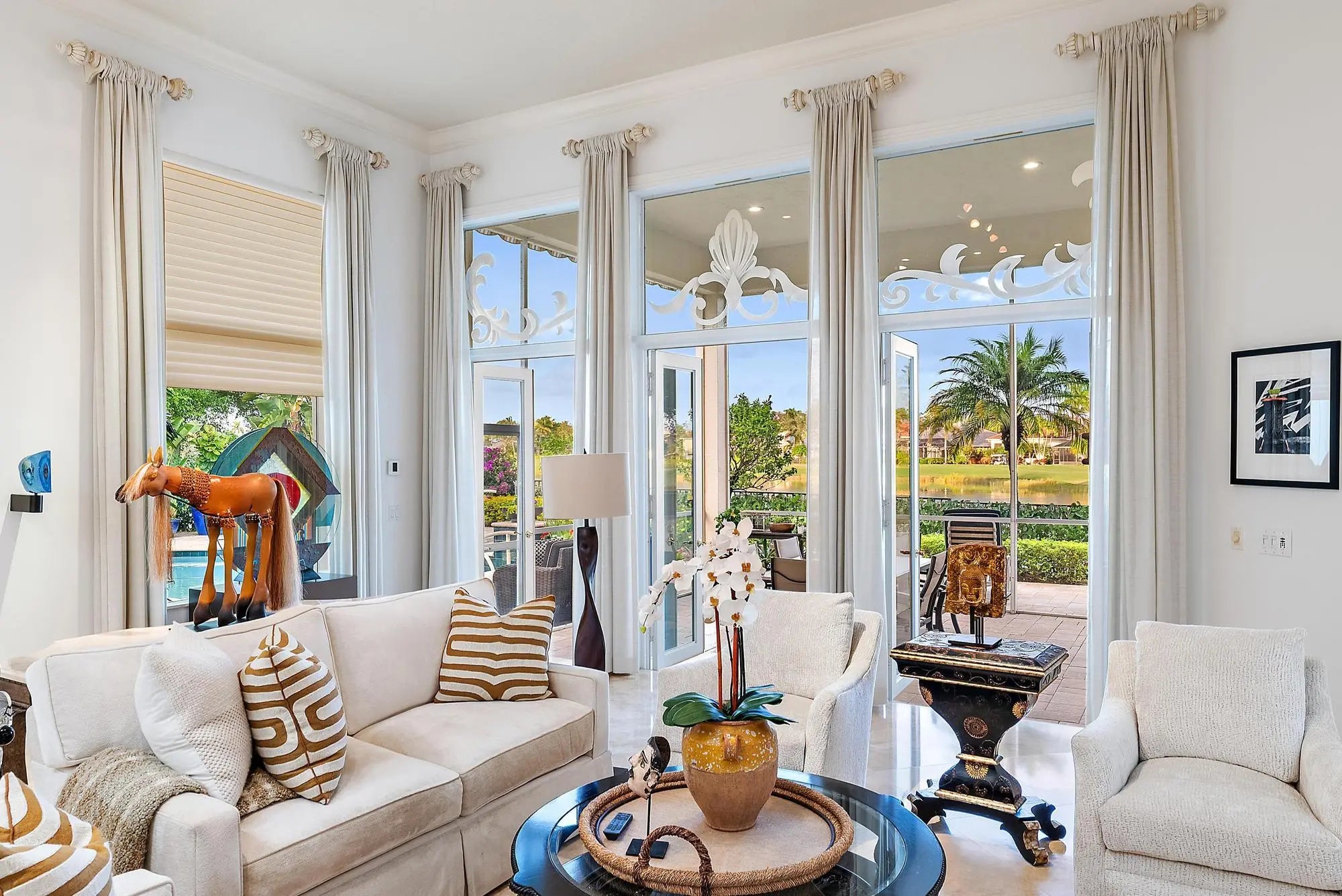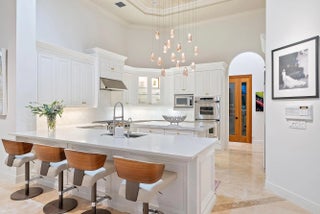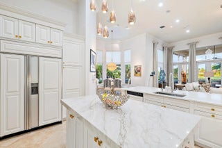 IMMEDIATE PREMIER GOLF MEMBERSHIP AVAILABLE WITH THE PURCHASE OF THIS HOME. Nestled on one of the most coveted and rarely available streets in Ibis—Hawk's Landing Terrace—this elegant 4,800-square-foot 4BR/4.5BA+ Den + Theater residence offers extraordinary privacy, sublime long-water views, and the timeless sophistication that defines luxury living in The Club at Ibis. Perfectly positioned on a quiet cul-de-sac lined with graceful Royal Palms, the home enjoys a serene lakefront setting with sweeping vistas that enhance every major living space. Reimagined and significantly upgraded, this estate is move-in perfect, blending the elegance of the original custom build with a comprehensive list of recent improvements. A new 40KW whole-house generator (2025), Impact Glass throughout, and a new Impact front door (2023) provide peace of mind and security. The roof, replaced in 2019, and the exterior and interior repainted in 2023, ensure the property feels fresh, modern, and impeccably maintained. The home's sprawling floor planfeatures open living spaces, refined details, and a layout ideal for both intimate living and large-scale entertaining. The updated kitchen showcases a professional-grade Dacor 6-burner gas cooktop, Dacor double ovens, a Sub-Zero refrigerator/freezer, and an AquaLink water-filtration system. Custom-fitted cabinetry enhances every closet, providing exceptional storage throughout. One of the home's showpiece spaces is the acoustically engineered movie theater, now outfitted with a new 90" TV, soundproofing, plush new carpeting, and seating for eighta true luxury amenity rarely found in Ibis. Wine enthusiasts will appreciate the large custom-built wine room, designed to anchor and impress. Additional upgrades include a 3-zone Air Scrubber System (2023) with REME technology, three Carrier AC units, and an ADT alarm system supplemented with a Ring front door camera and a Q camera in the garage. Outdoor living shines with a 2022-updated pool area featuring new pavers, resurfacing, and new tilenow enhanced by a suite of mechanical upgrades for year-round reliability. These include a Raypak heater replaced in November 2021, an indoor remote panel installed in September 2022, a new main control board for the AquaLink system installed in August 2022, a new pump (October 2023), and a new filter housing (January 2025). A 2018 awning and a new lanai fan (2023) enhance comfort, while the tranquil lake views create a stunning backdrop year-round. The original high-end enhancementssuch as the gas fireplace, sit-down wet bar, summer kitchen, and refined architectural detailingremain, now complemented by modernized systems and finishes that elevate both luxury and functionality. Located within the exclusive enclave of Hawk's Landing, this home offers quiet streets, estate-style lots, and enviable proximity to the heart of the community. As a resident of The Club at Ibis, you will enjoy access to its 90,000-square-foot clubhouse, three Nicklaus-family championship golf courses, five restaurants, a world-class fitness center and spa, and premier tennis and pickleball facilities.