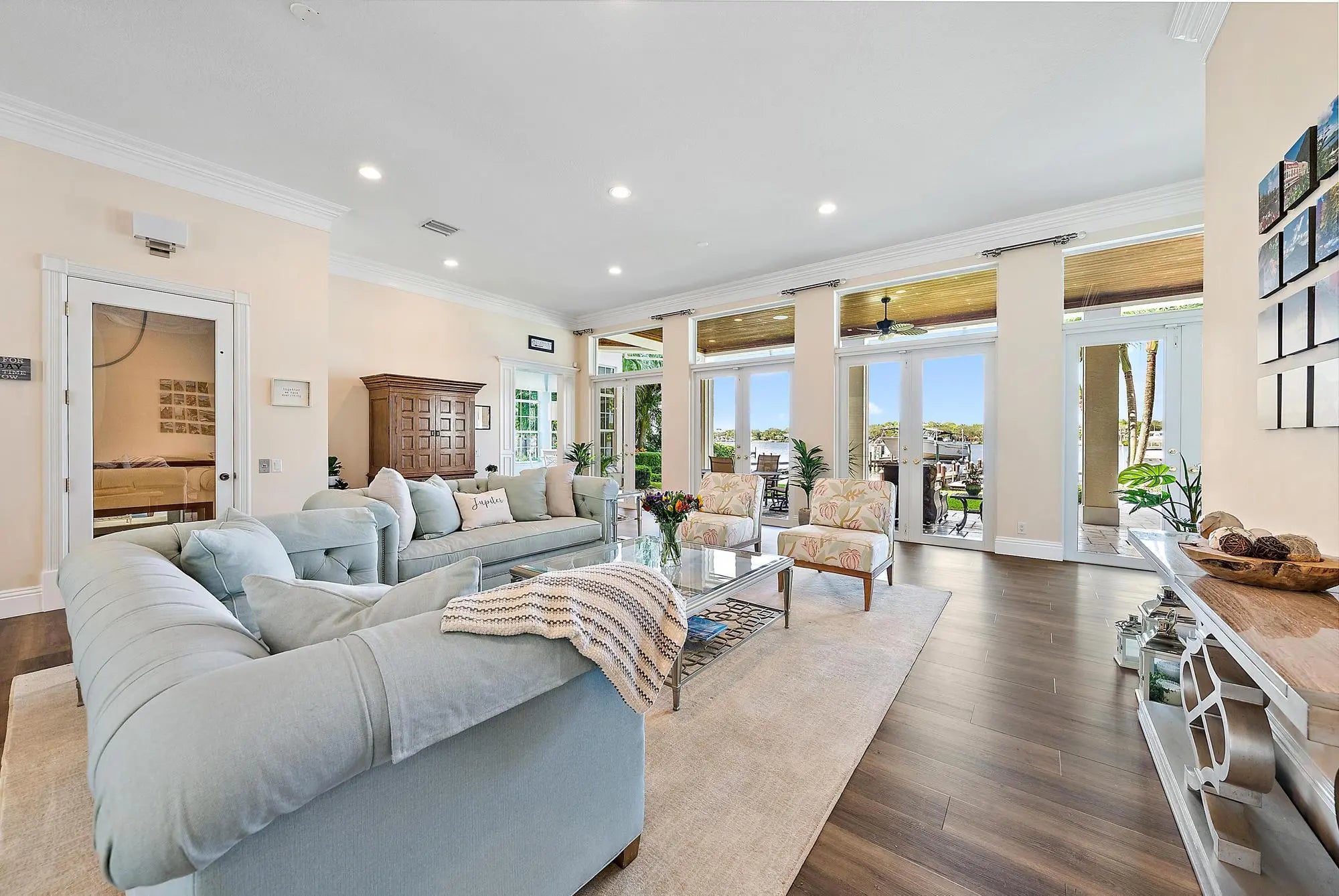Discover this magnificent custom estate on the Loxahatchee River, featuring stunning waterfront views and breathtaking sunsets. With 7,900 sq. ft. of luxurious living space across three levels, this home boasts 6 bedrooms, 7.1 baths, and a private guest suite, complete with an elevator for your convenience. Step into the grand foyer with a floating staircase, leading to elegant formal living and dining rooms, a gourmet kitchen with a butler's pantry, and a family room with a stylish bar. Enjoy leisure time in the billiard room or serene moments in the study/library. This estate showcases exceptional craftsmanship, including an exquisite remodel of the primary suite and bath, featuring an opulent custom dressing suite. The newly updated garage includes a gymnasium with water views, and the third level offers ample space for various uses, making it a versatile part of the home. For added comfort and versatility, the estate includes a generously sized attached guest home with a private entrance, boasting its own kitchen, living room, bedroom, and bath. Ideal for boat enthusiasts, the property boasts a private dock equipped with a 24,000-pound boat lift, allowing for easy access to the water. It's just a short ride to the Jupiter Inlet, where you can enjoy excellent fishing and dining at several top-notch restaurants in the area. 2026 Slate Roof has been installed. Seize the opportunity to own this waterfront paradise!