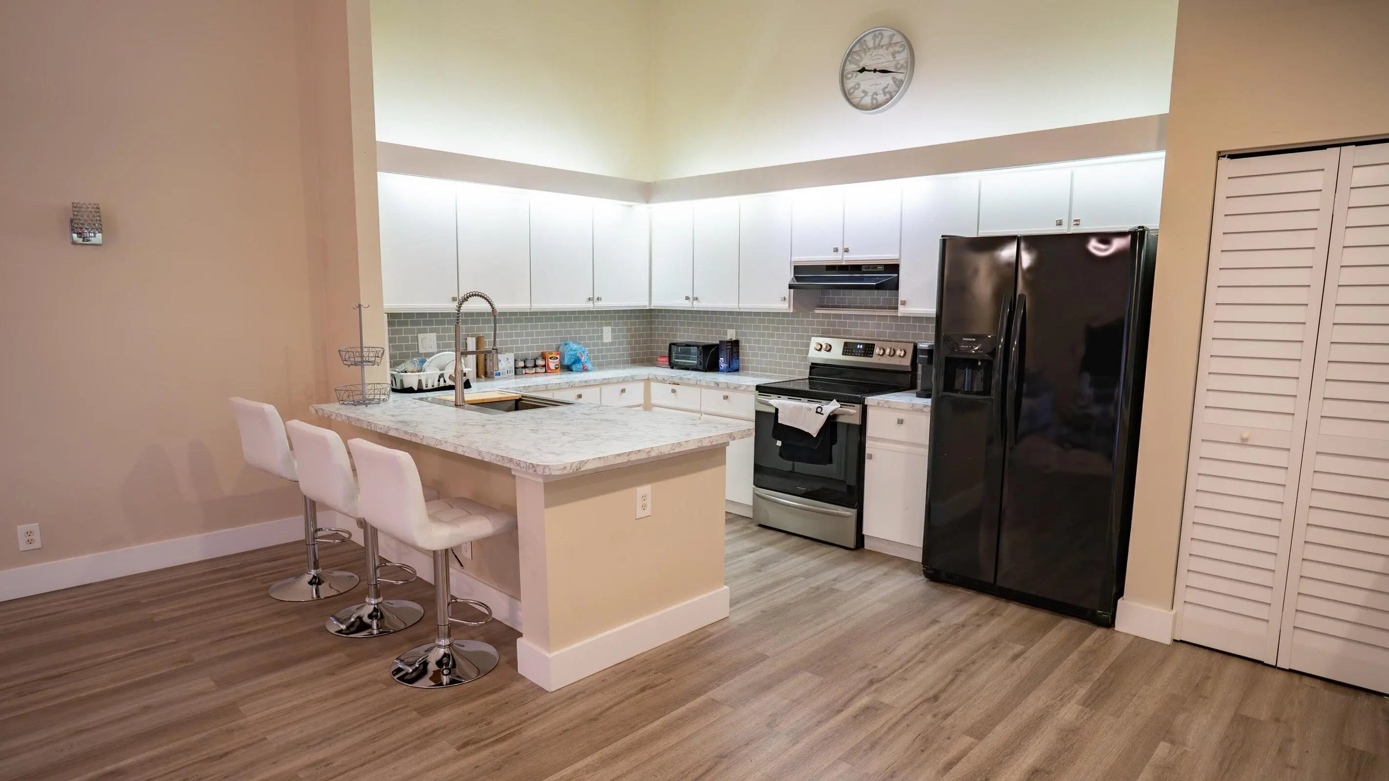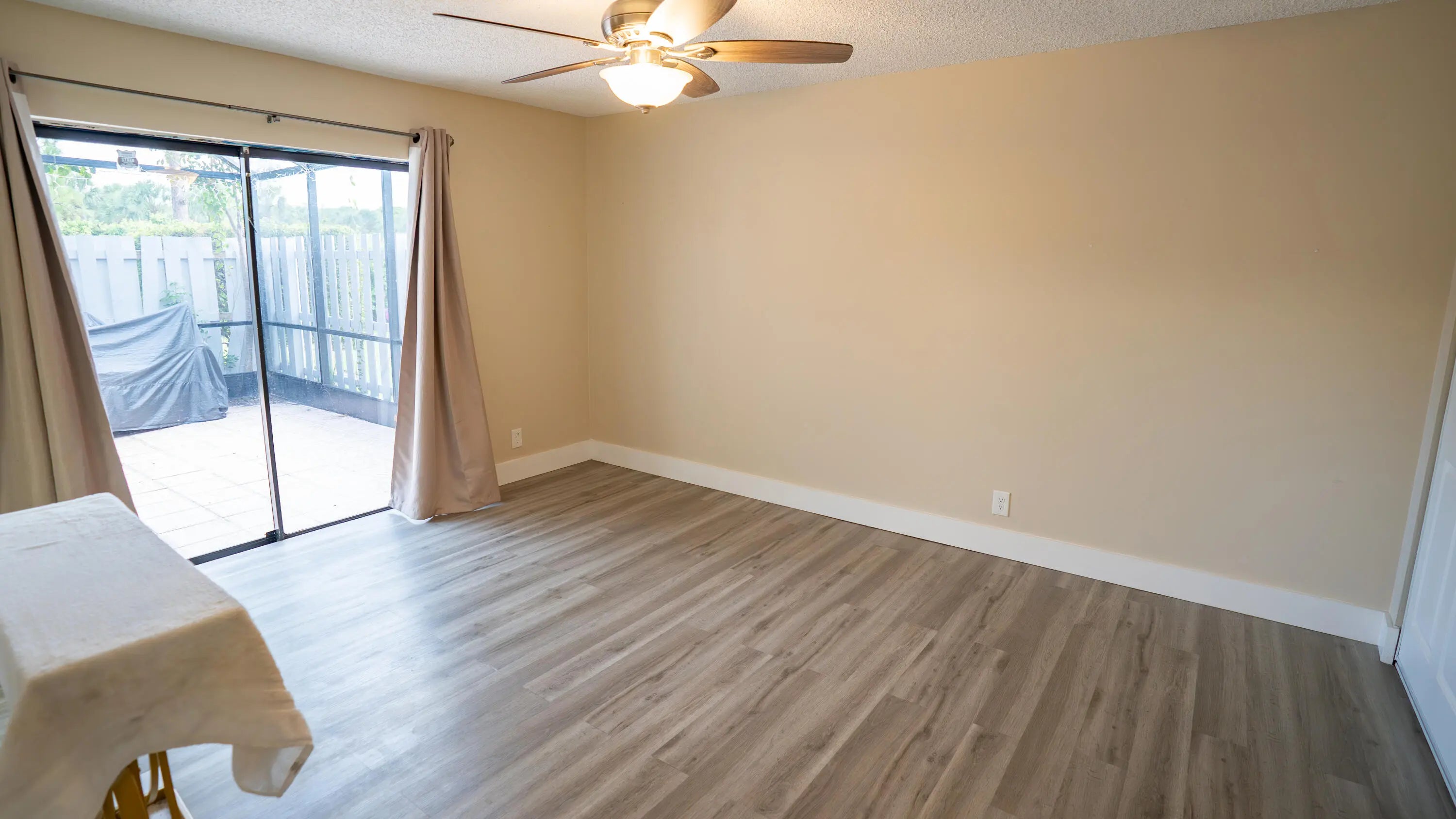 Welcome to this beautifully updated 3-bedroom, 2-bathroom villa in the Barrwood community of Boynton Beach! This spacious one-story offers 1,350 sq ft of living space with vinyl flooring, updated bathrooms. The layout is light and bright with vaulted ceilings and an open-concept feel. Enjoy relaxing or entertaining in the private, fully screened-in courtyard patio facing a quiet greenspace...no rear neighbors! The home features a split-bedroom floor plan, indoor laundry, and ample storage throughout. The Barrwood community offers fantastic amenities including a pool, hot tub, clubhouse, tennis courts, and basketball court. Centrally located just minutes from shopping, dining, and I-95. Pet-friendly! Cable & High Speed Internet Included!
