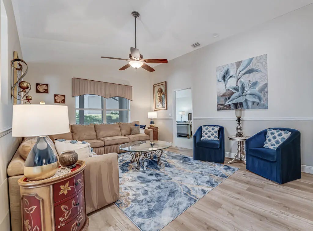 Brand new roof and a whole-house generator! This beautiful Messina model offers new flooring, two new bathrooms, newer appliances, a new hot water heater, glass enclosed lanai with impact glass, freshly painted interior, freshly painted exterior, luxurious landscaping, and so much more. The primary bedroom has a beautiful bay window. The front door is upgraded with a beautiful glass insert. The third bedroom/den offers a double-door entry with glass inserts. This home is extremely elegant and needs absolutely nothing. Venetian Isles is the place to be. Manned Gate, brand new clubhouse with cocktail lounge, cafe, social hall, card rooms, arts and crafts, aerobics, pickle ball, tennis, Olympic pool, resistance pool, gorgeous lakeside state of the art fitness and yoga center and more!