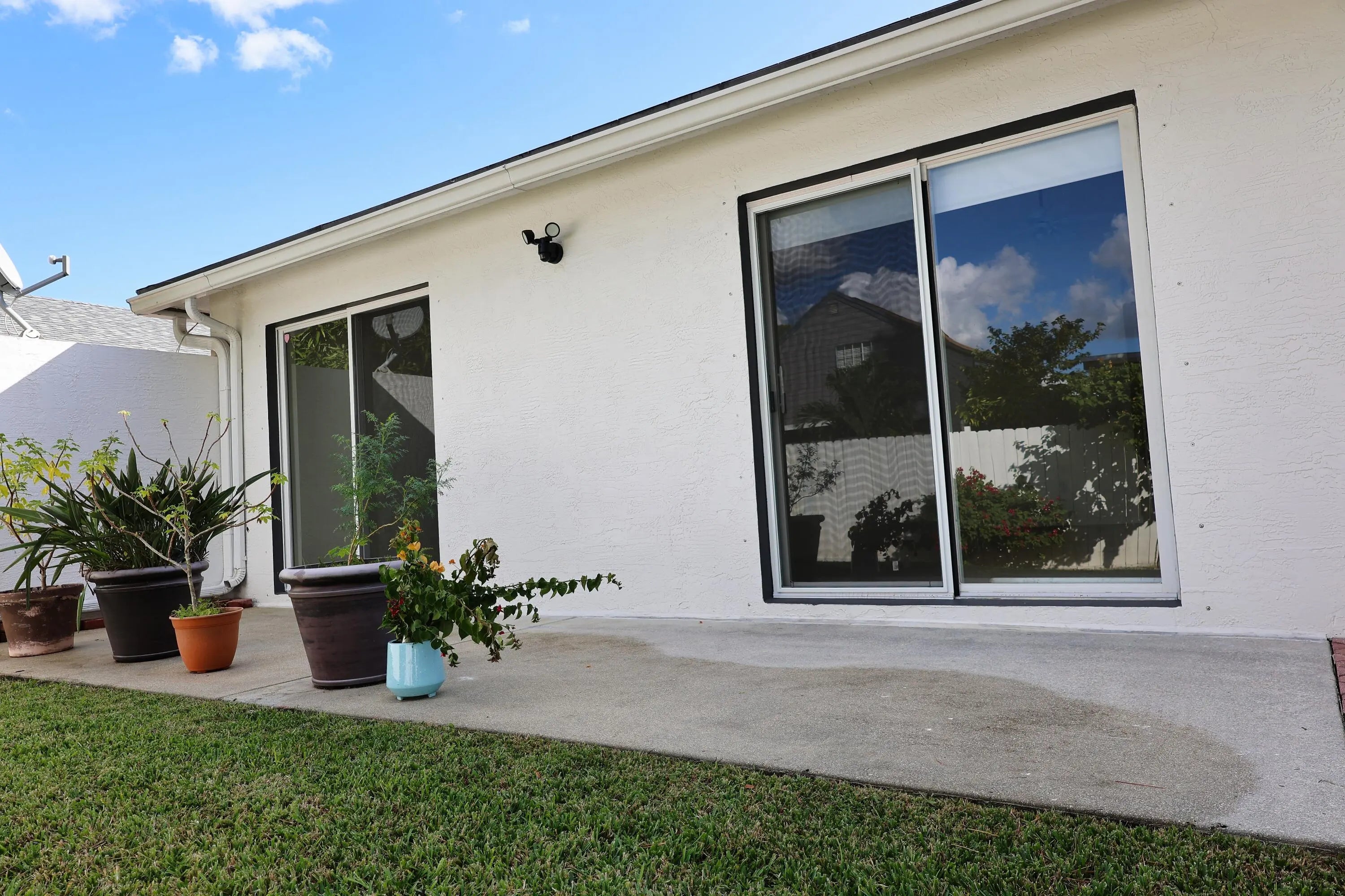 Live the Florida lifestyle in this beautifully upgraded 3-bedroom, 2-bath home with 2-car garage, set on a quiet, fully fenced lot in desirable Victoria Woods with low HOA! Step into a bright, open living area with vaulted ceilings and diagonal tile throughout—no carpet here. The stunning 2022-renovated kitchen features granite countertops, stainless steel appliances, custom-built pantry, ample cabinetry, and a cozy breakfast area. The primary suite offers direct access to the backyard, a walk-in closet plus an additional custom-organized closet, and an updated bathroom with 2022 cabinets/tops and linen closet. This home has been meticulously cared for: entire interior repainted in 2022 with Sherwin Williams Super Paint, newer AC system (2020) with air ducts cleaned in 2022, smart Samsung washer/dryer (2023), added laundry utility sink, new water heater (2024) with transferable 20-year warranty, upgraded light switches, and replaced bathroom fans/extractors (2022). Outside is your private oasis with new grass all around (2023), programmable automatic sprinkler system (2023), new fence and gutters (2022), custom-built storage shed (2022), driveway and entry lights with automatic on/off, and WiFi-enabled garage door opener with notifications and a new motor/sensors (2022). All of this in a gated community just minutes to the FL Turnpike, I-95, PBI Airport, Palm Beach Outlets, downtown West Palm Beach, Rosemary Square, and only about 8 miles to the beach and Lake Worth Pier. All measurements approximate.