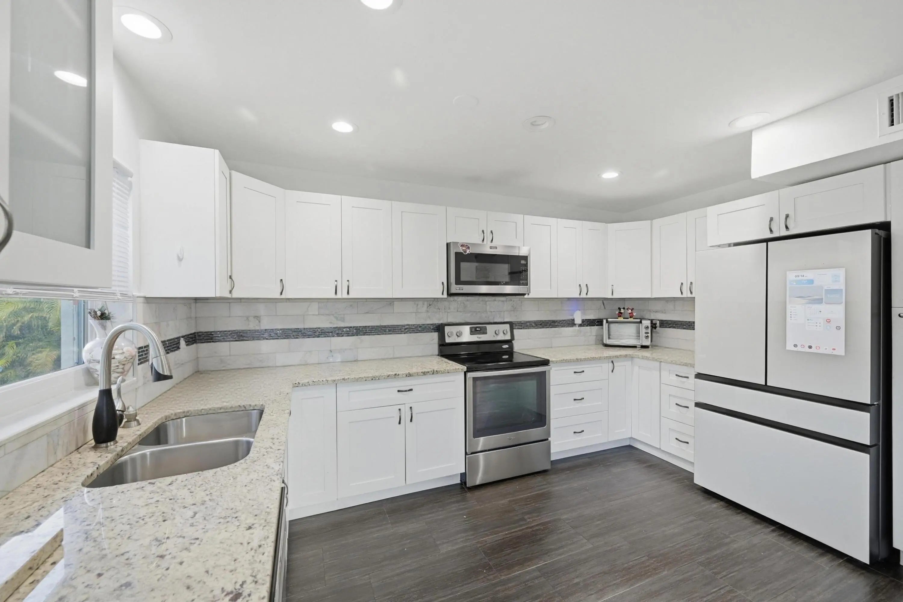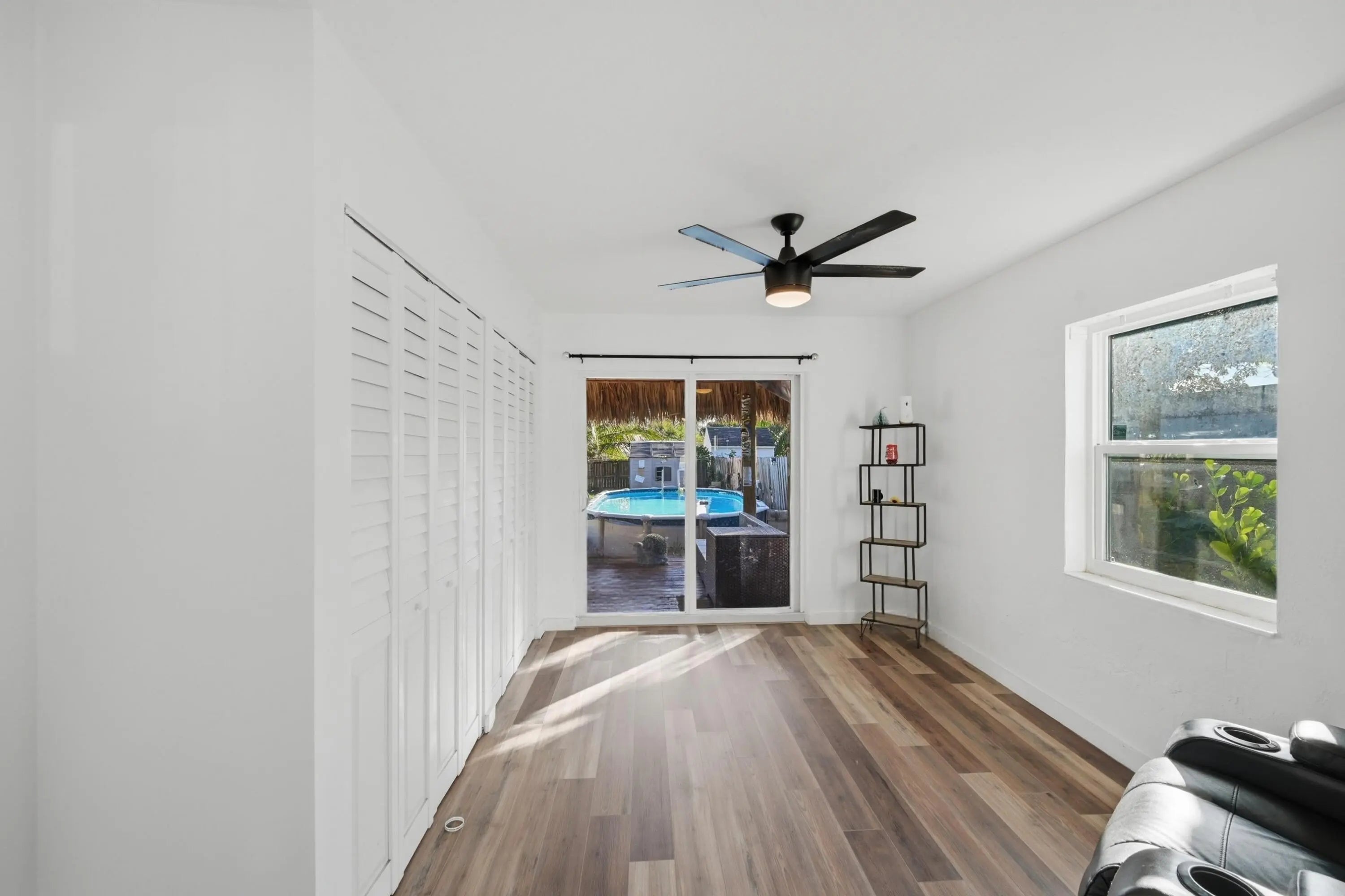 Remodeled Pool Home with no HOA. This home offers newer kitchen cabinets with marble backsplash and granite counters. Luxury vinyl flooring thru-out. Stainless appliances Spacious yard. Impact Doors with Panel Shutters.