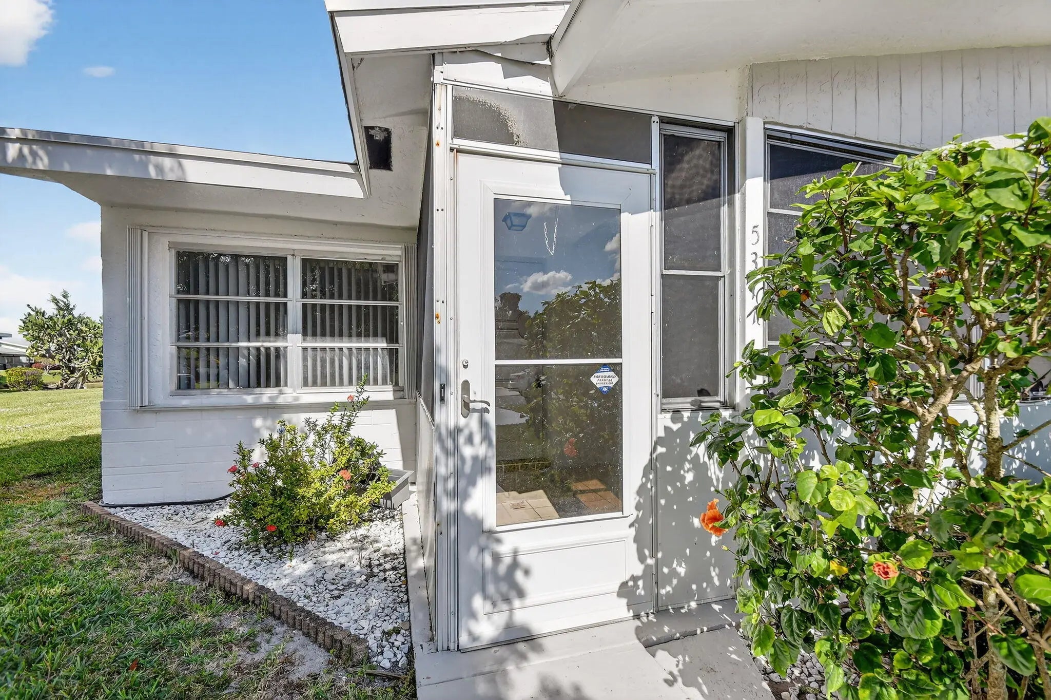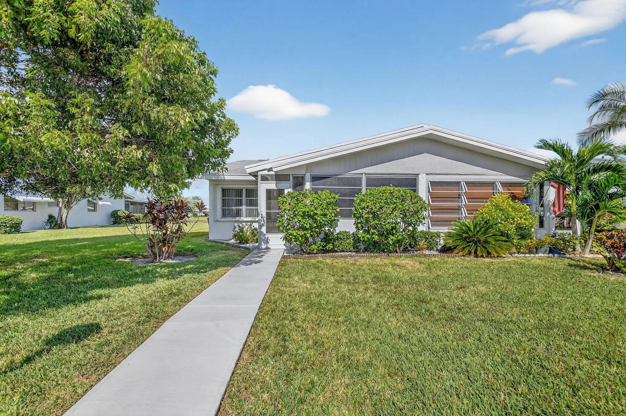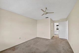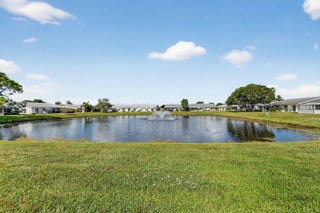 Lake & fountain views from both bedrooms & patio. Front patio & entrance south exposure. Central WPB, close to shops, grocery, restaurants, I-95 & turnpike. Roof completed 11/28/16. H,water heater 2024, partial accord. shutters, 2024, A/C 2023. Make new friends at the many activities. Cable/internet, golf, pickleball, card room, shows/movies, bingo all w/in this friendly community. 1/2 duplex, 3 exposures. Quick close possible.