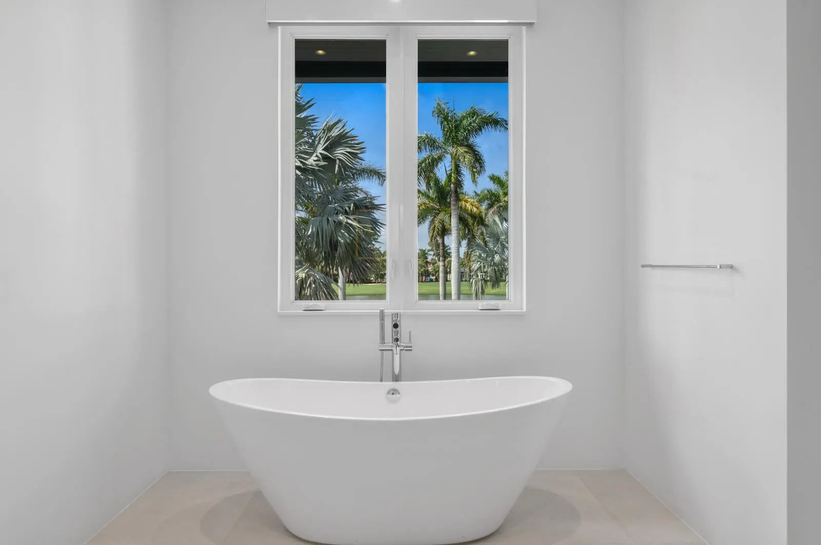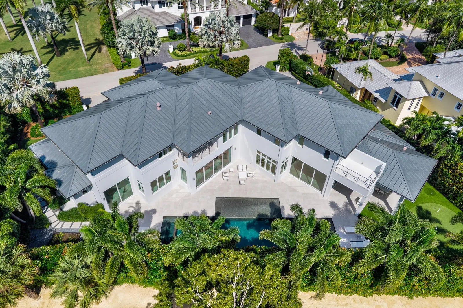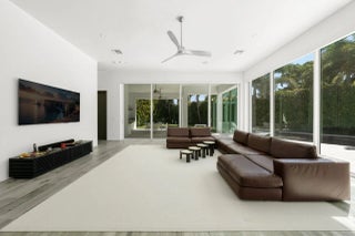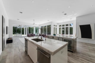 A contemporary, light-filled home on an oversized lot with 165 feet of golf course frontage in Royal Palm. The 7,911 SF residence (9,900 SF total) offers 6 en-suite bedrooms, 7 full baths, and 3 first-floor powder rooms. The chef's kitchen includes 4 Wolf ovens, Sub-Zero refrigeration, two islands, four dishwashers, and two sinks. A dramatic glass, steel, and Caesarstone staircase and custom closets elevate the interiors. Smart-home systems by Lutron and Savant, a 4-car AC garage with 2 EV chargers, and gated 15 ft Calophyllum landscaping ensure privacy and comfort. The 50 ft lap pool features a covered dining area with a Wolf grill, mini fridge, and storage. Recent upgrades include new ACs, full-house generator, new washers/dryers, and water filtration.