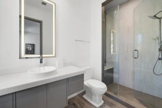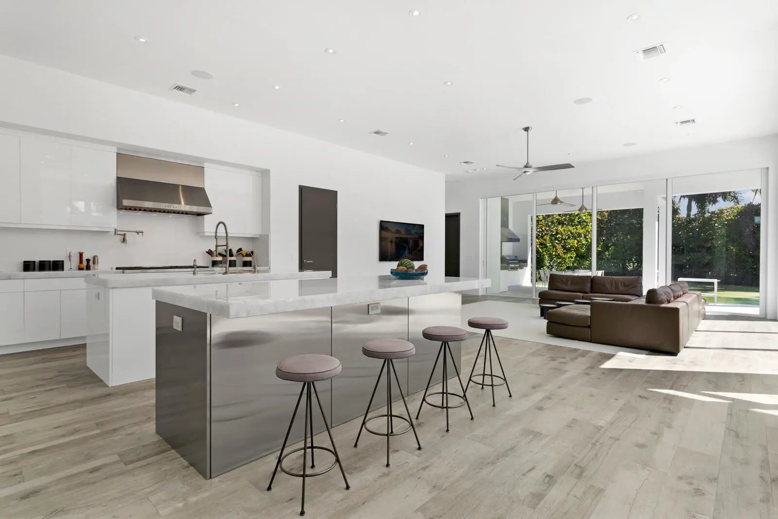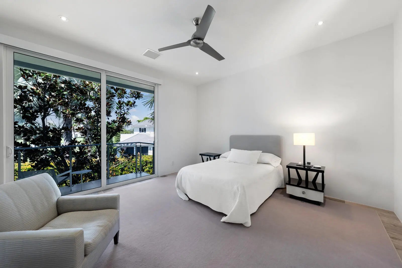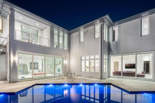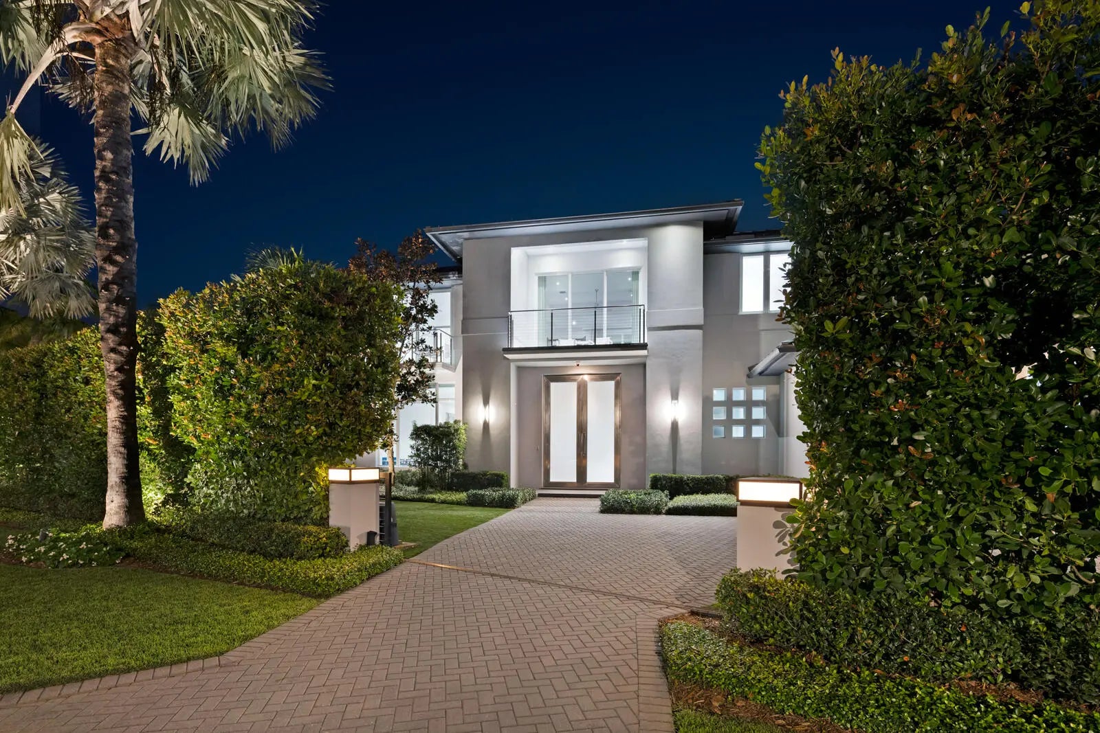 A contemporary, light-filled home on an oversized lot with 165 feet of golf course frontage in Royal Palm. The 7,911 SF residence (9,900 SF total) offers 6 en-suite bedrooms, 7 full baths, and 3 first-floor powder rooms. The chef's kitchen includes 4 Wolf ovens, Sub-Zero refrigeration, two islands, four dishwashers, and two sinks. A dramatic glass, steel, and Caesarstone staircase and custom closets elevate the interiors. Smart-home systems by Lutron and Savant, a 4-car AC garage with 2 EV chargers, and gated 15 ft Calophyllum landscaping ensure privacy and comfort. The 50 ft lap pool features a covered dining area with a Wolf grill, mini fridge, and storage. Recent upgrades include new ACs, full-house generator, new washers/dryers, and water filtration.