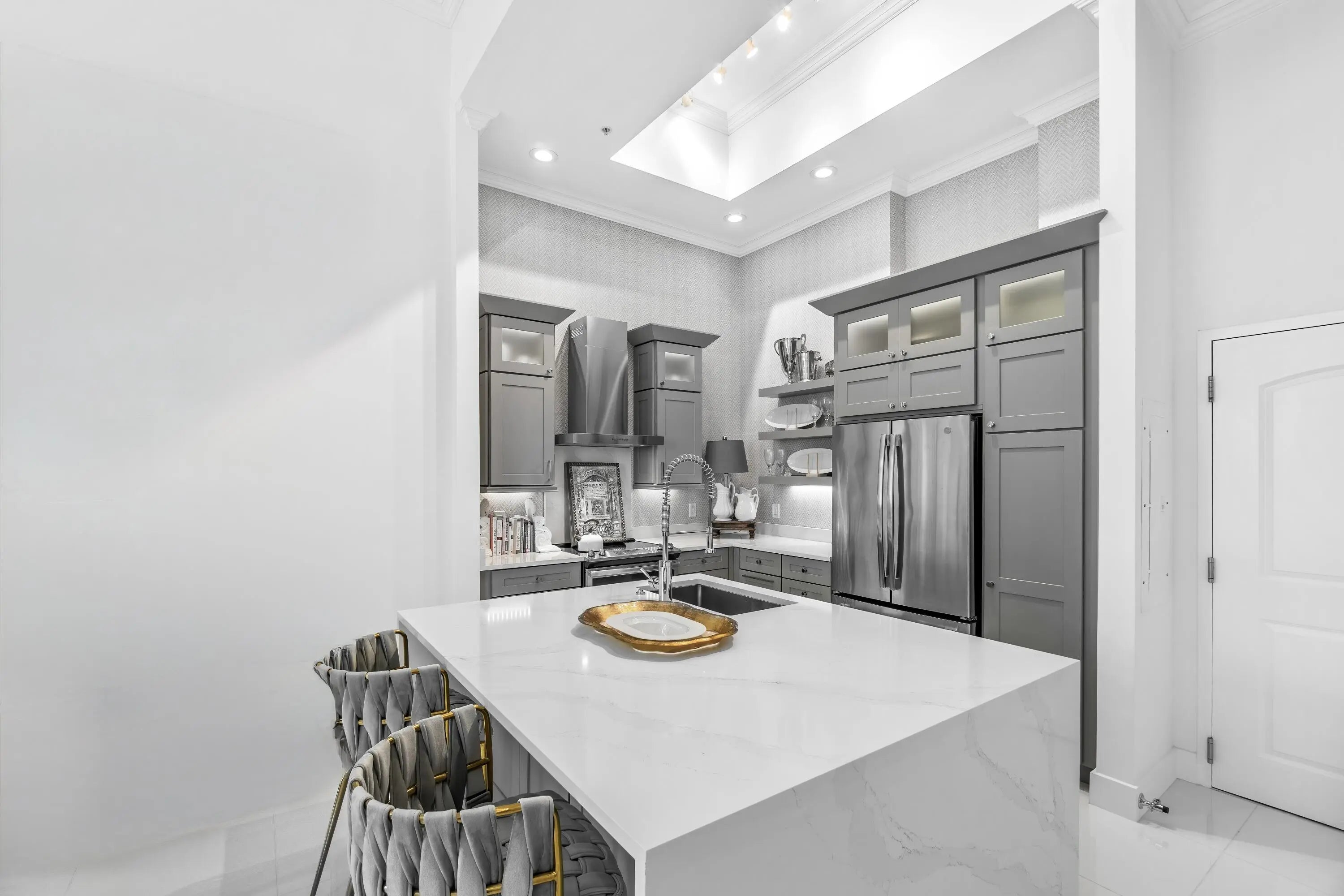 In the heart of downtown West Palm Beach, you'll find a stunning fully renovated condo that exudes modern luxury. This spacious residence boasts two generously sized bedrooms each with its own private bathroom, and a versatile den that can serve as a home office or additional living space. With soaring 14-foot ceilings, this condo offers an open and airy atmosphere that's truly captivating. Enter into the heart of this home, the designer kitchen, where no expense was spared. It features all new appliances, exquisite countertops with oversized waterfall island and custom cabinetry, making it a chef's dream come true. The entire condo showcases all-new flooring that adds elegance to the space. Designer lighting, window treatments and molding add the final touches to truly make it special... 1 garage-parking space and storage. Amenities in this full-service building are endless; 24-hr security, concierge, roof top pool, hot tub, sauna, steam room, fully renovated state of the art fitness center/gym, outdoor kitchen w/ BBQ area and all NEW Restoration Hardware furniture, outdoor & indoor movie theaters, renovated club room, table tennis, lanai courtyard w/ water feature, renovated roof top dog park area, complimentary valet parking & exceptional staff. Centrally located in the heart of Downtown West Palm Beach, across from One Flagler offices, 7 minutes to PBIA airport, award winning restaurants and shopping, and walking to Worth Ave, Palm Beach.