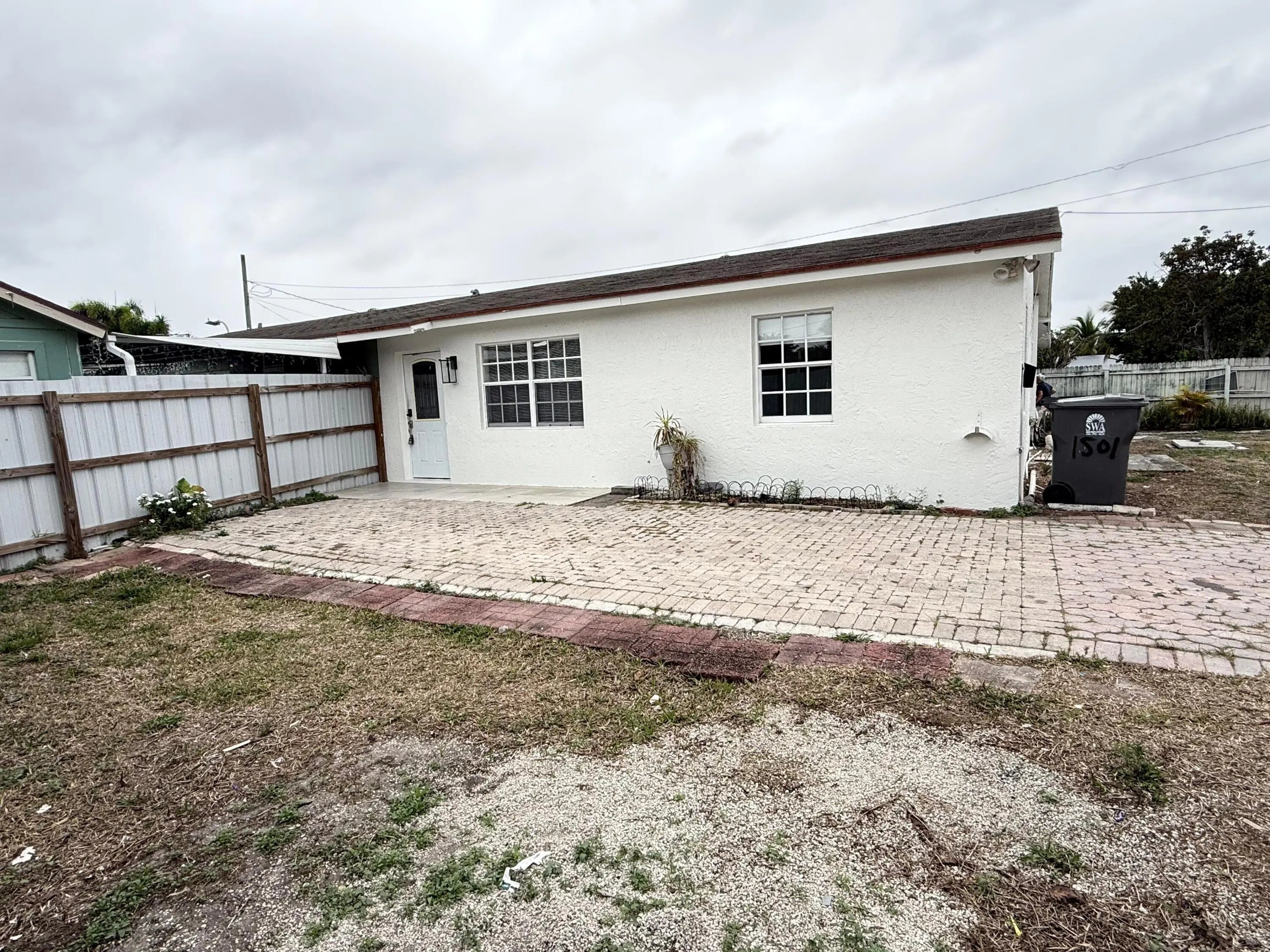 Spacious and centrally located 2-bedroom, 1-bath duplex with a huge paver driveway—perfect for multiple cars or a work van, with no HOA restrictions. This first-floor corner unit features tile flooring throughout, an open living area, and in-unit washer and dryer for total convenience. Enjoy a quick and easy move-in process and plenty of outdoor space, plus a fenced yard that adds privacy and comfort. Located just minutes from major roads, shopping, dining, and everyday essentials. If you're looking for space, flexibility, and a great location in West Palm Beach, this duplex is the perfect fit!