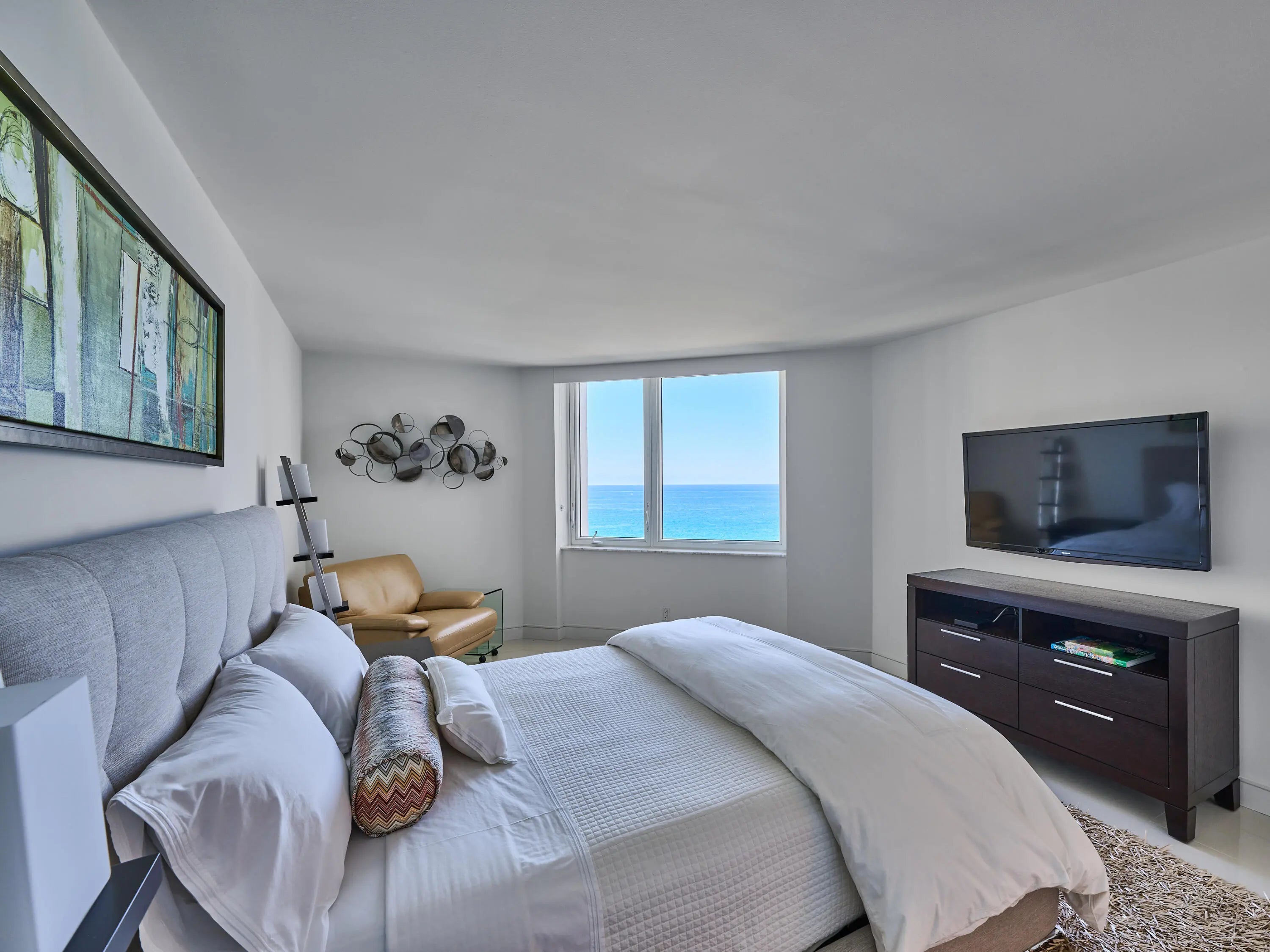 Oceanfront residence with sweeping Atlantic views from every room. Step out to your private terrace and watch sunrises over the water, city lights at dusk. This impeccable 14th floor 2BR/2BA features an open layout and premium finishes: beautiful gourmet kitchen with custom cabinetry and island, updated bathrooms with walk-in shower and spa, spacious built-in closets. Designer furniture negotiable for turnkey move-in. Split floor plan ensures privacy. The Chalfonte sits directly on sand with private beach access, daily umbrella service, heated oceanside pool, modern fitness center, tennis/pickleball courts, 16-slip marina, and 24-hour security. Prestigious A1A address is walking distance to downtown Boca's finest dining, upscale shopping and entertainment, Gumbo Limbo and Red Reef Park.