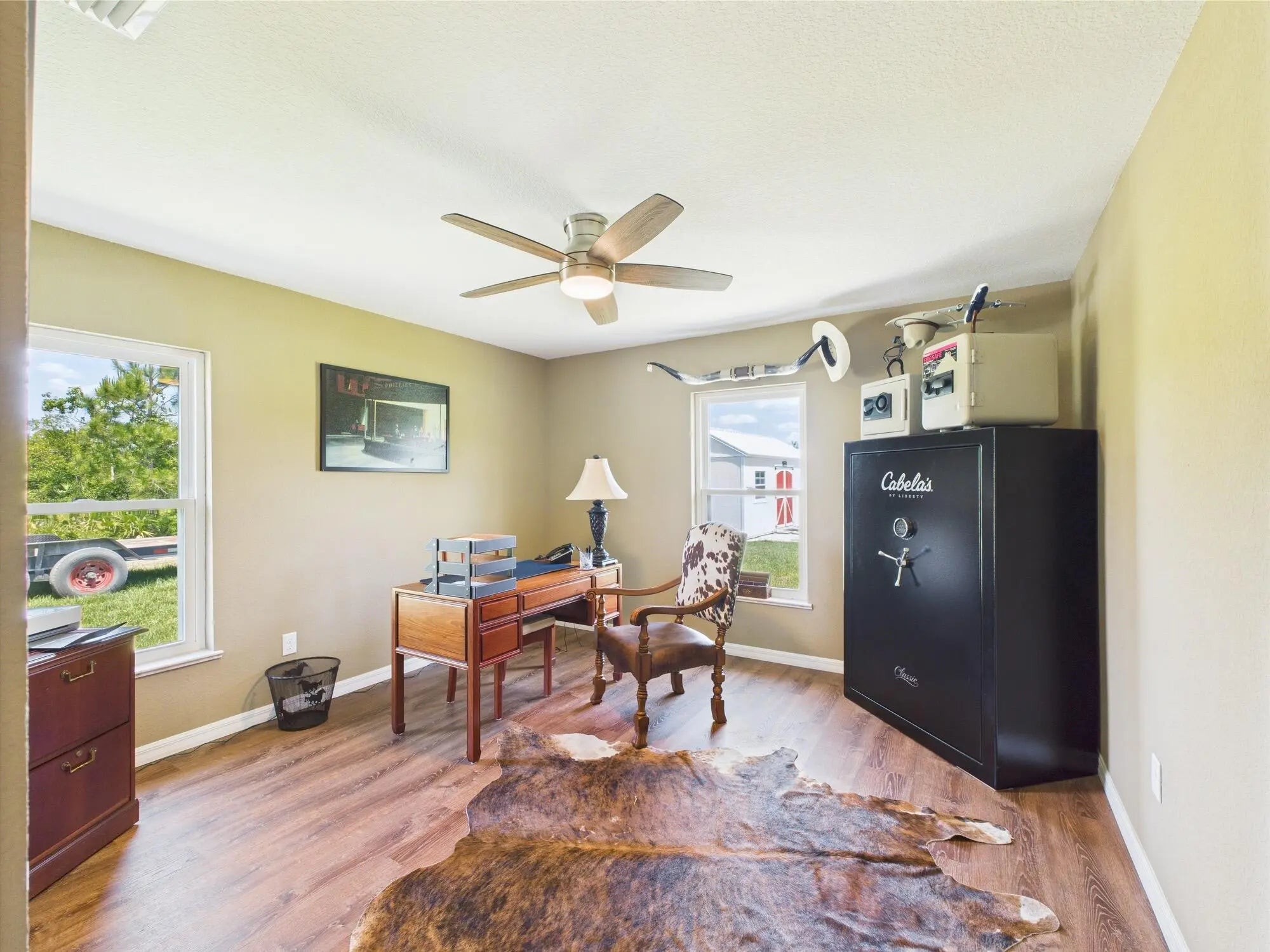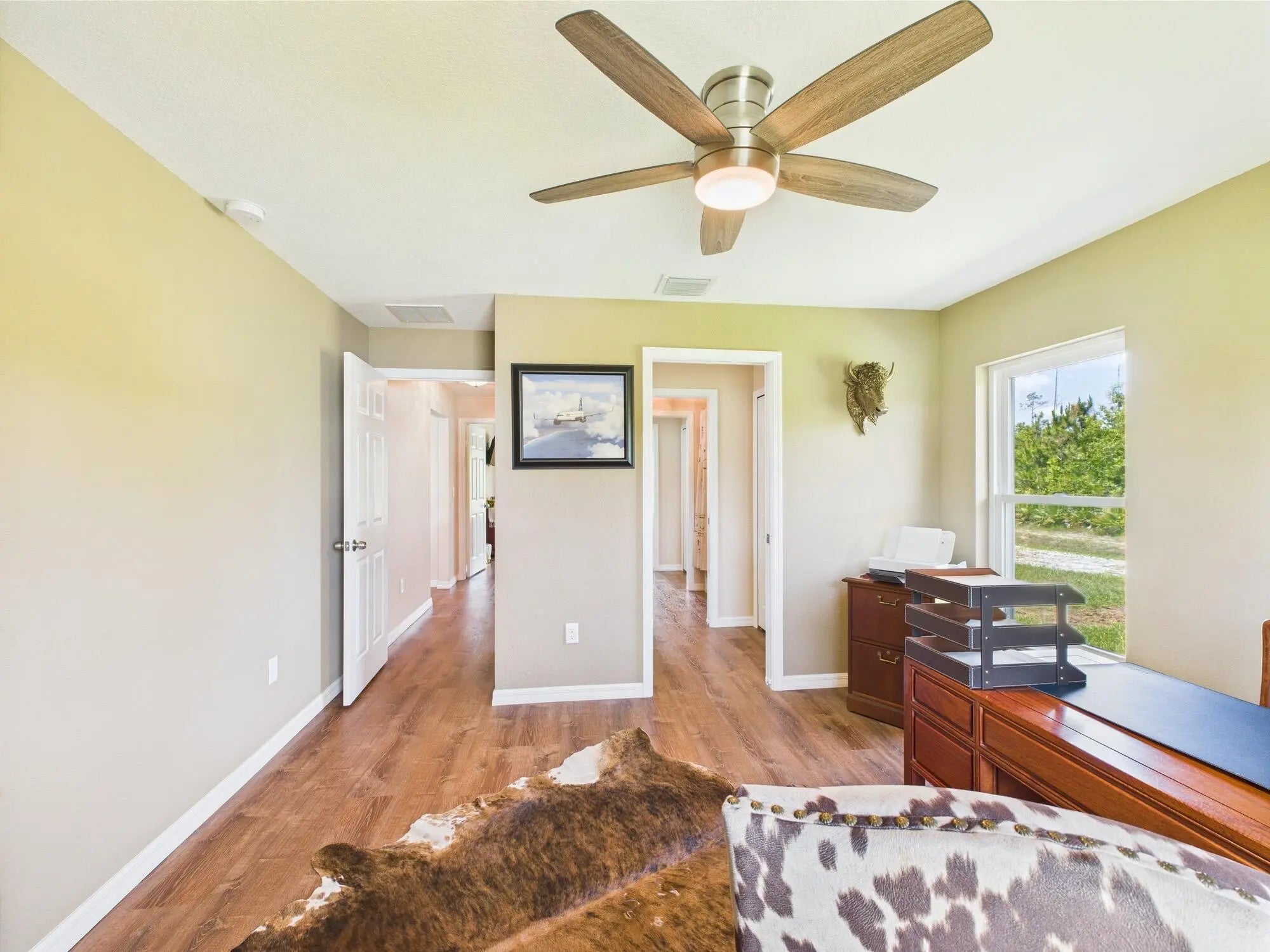 Horse Enthusiasts Dream! Custom Home on 5+ acres in a gated community that is truly a Hidden Gem. This 3/3 is perfectly laid out with Modern Design and Rustic Charm. Enjoy the peaceful view on the screened in porch with tongue and groove ceilings. The Serenity offered on this 5.16 acre property will make you want to stay. This Pristine property has large 6 stall horse barn, tack room, 2 wash/grooming stations, 4 engineered paddocks and arena, and access to hundreds of miles of riding trails with the push of the button. Indian Hammock has over 3,000 acres of land with a private landing strip/hangar, lodge w restaurant and pool, hunting, skeet shooting, rifle range, tennis/pickleball courts, over 100 miles of trails, and so much more!