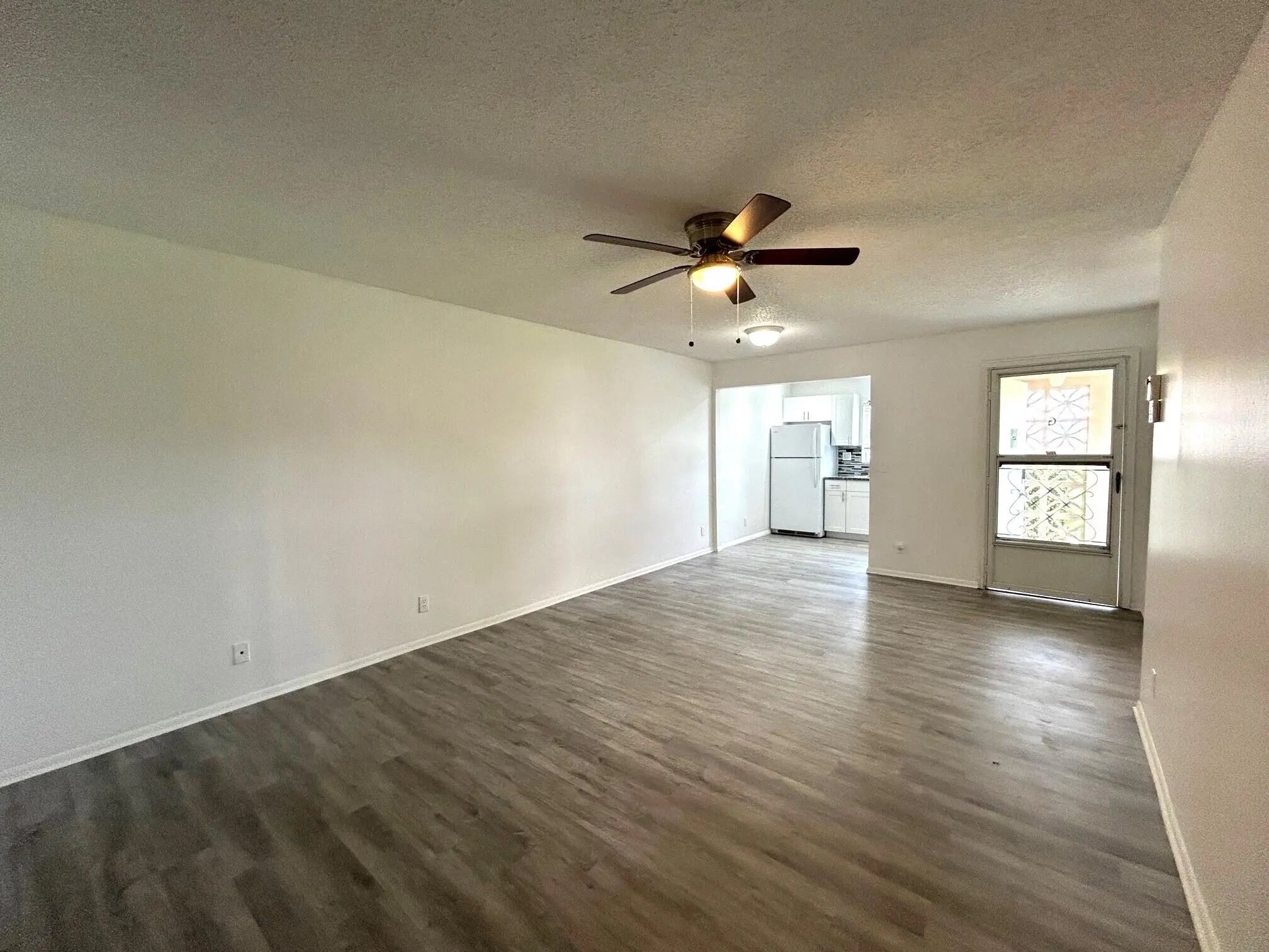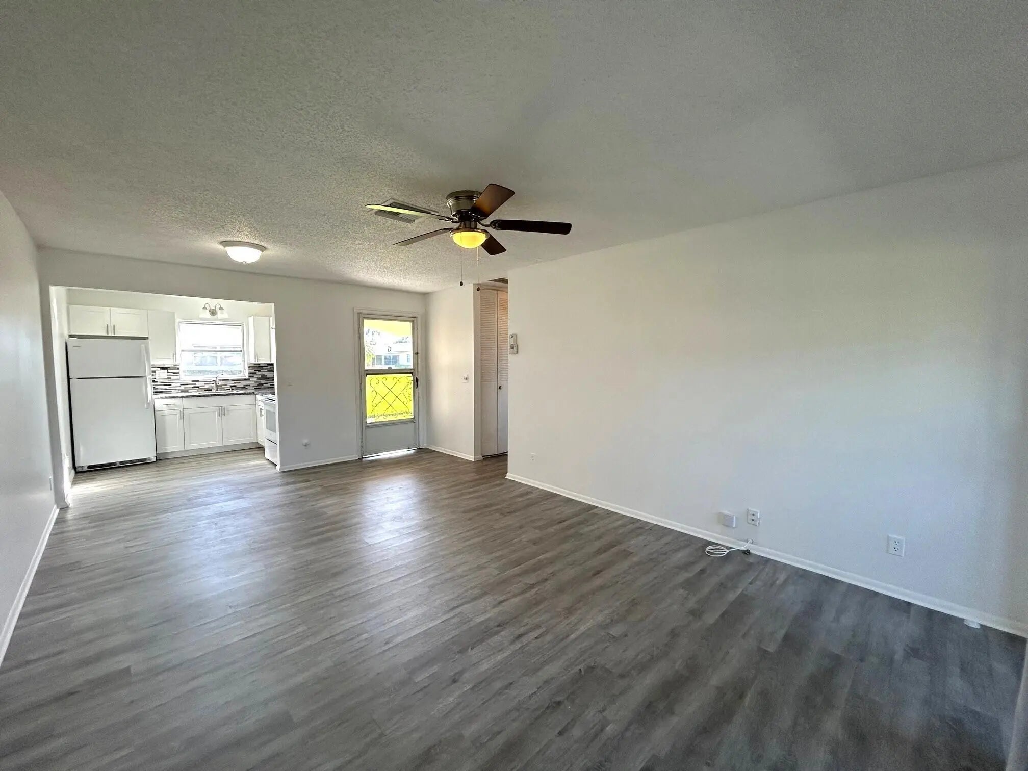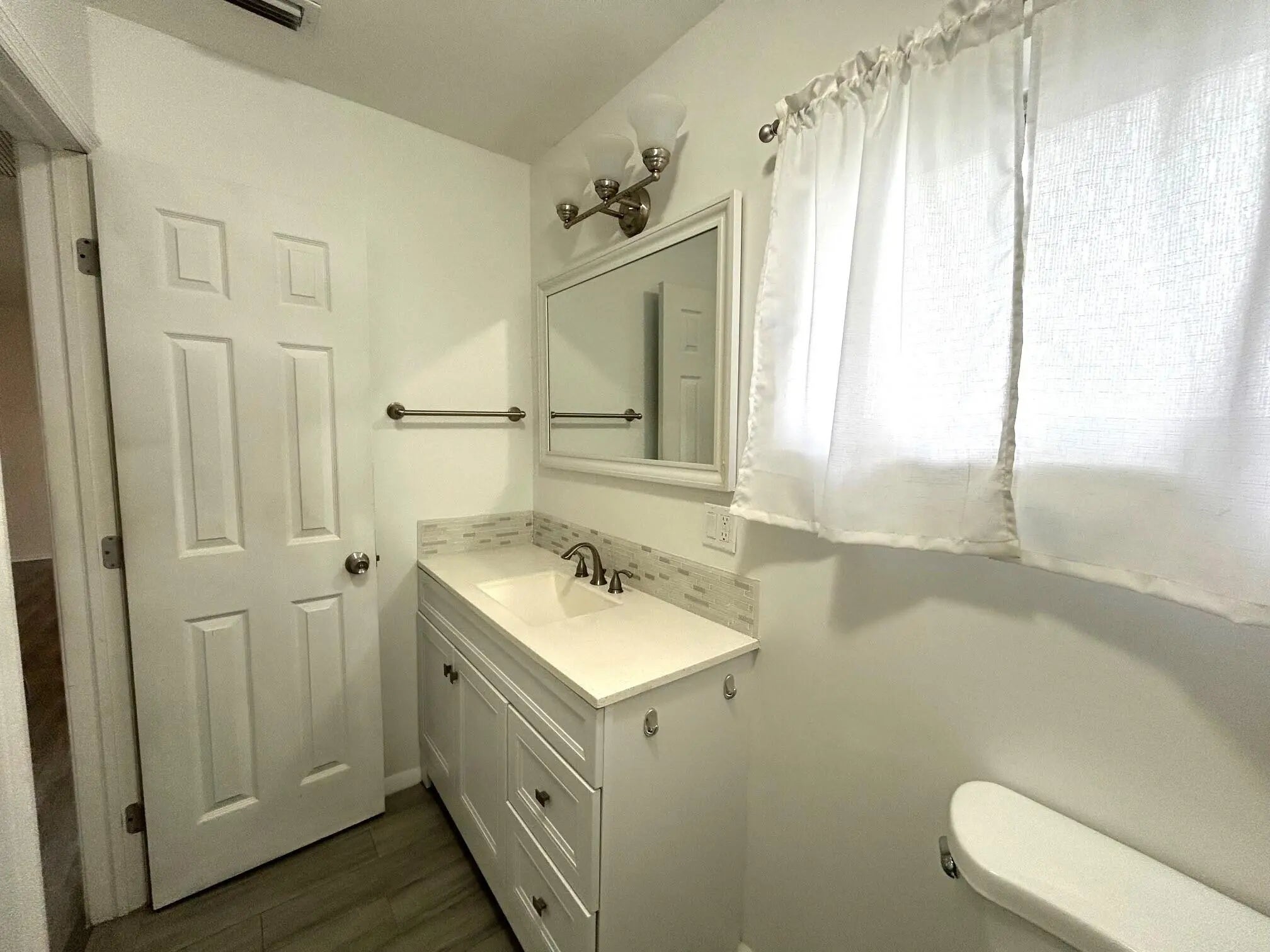 Renovated 1 bedroom 1 bath Villa in the Dudley section of the 55+ community of Cresthaven Villas. White shaker cabinets, granite countertops, LED lighting, Laminate flooring throughout. Spacious bedroom with full wall closet. Renovated bathroom with walk in shower. Linen closet and storage closet as well as 2nd walk in closet on enclosed porch. Rent includes water, internet and cable. Community offers resort style amenities with heated pool, showers, sauna, clubhouse with theater, billiards, fitness center, library and much more. Active community with Bingo and other planned activities. Walking distance to bus service. Close to Lake Worth Beach.