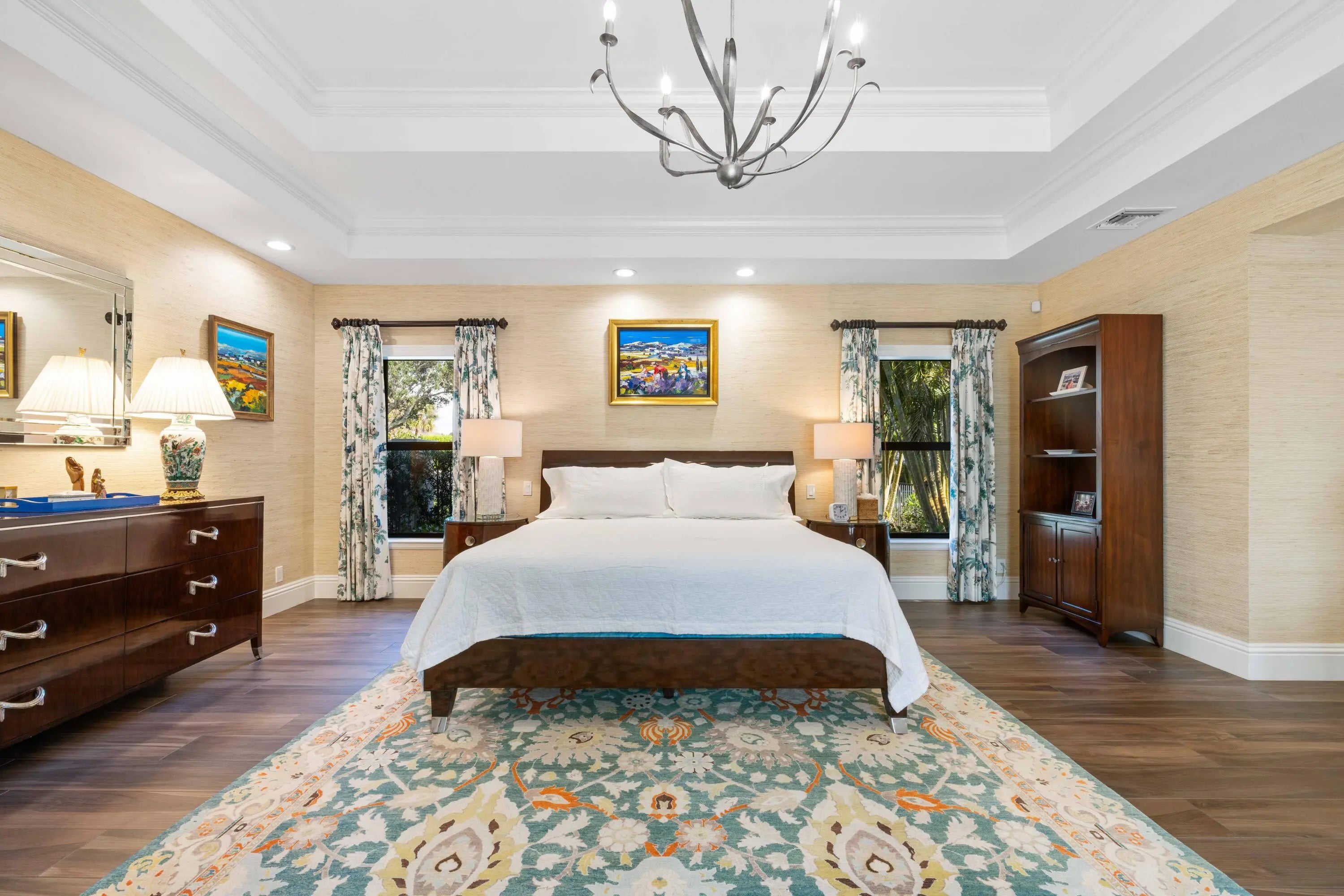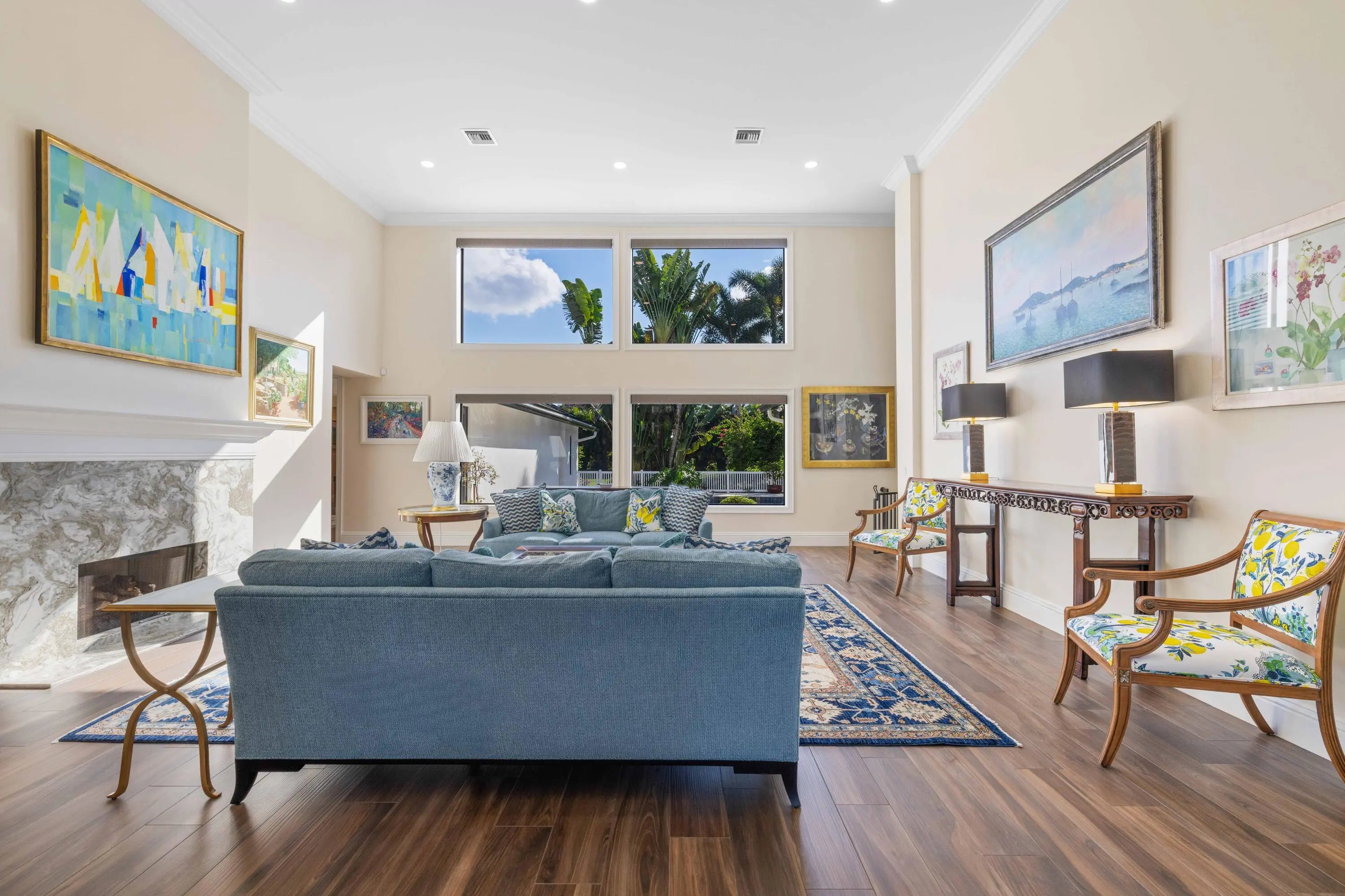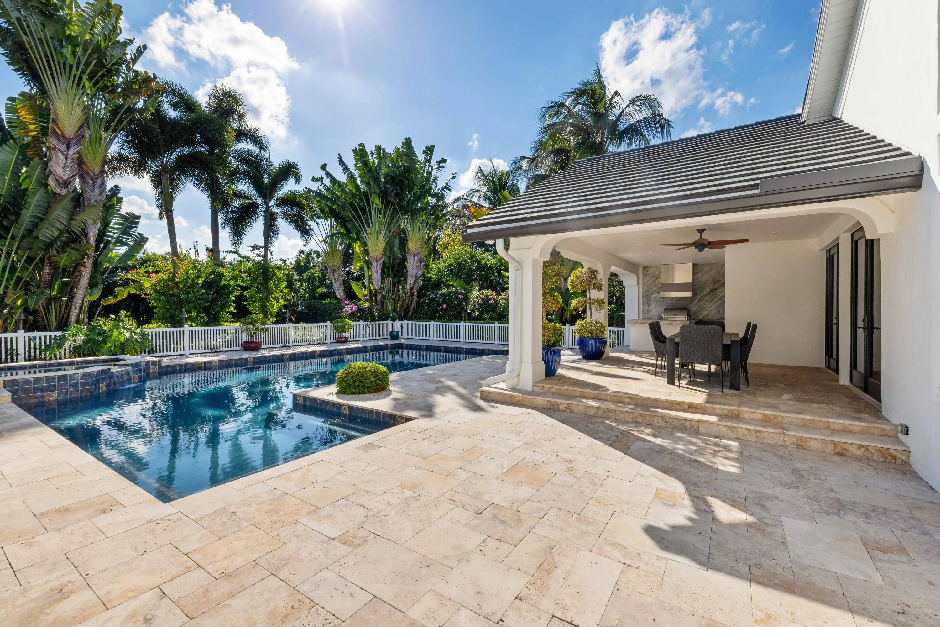 Experience refined Florida living in this fully renovated 1.03 acre single story custom home, totally rebuilt from the inside out. With over 5,000 sq. ft. of living space, this residence offers 4 private bedroom suites, 6 baths, a library-style office with custom built-ins and an upper reading nook, a bonus/game room, and a 4-car split garage. Perfectly positioned on the corner of the cul-de-sac, the home is surrounded by lush, fully reimagined landscaping that enhances both curb appeal and privacy. The property now features an expansive new decorative circular driveway, designed to allow generous parking and smooth flow for residents and guests. Nearly every major component has been replaced and updated, including the roof, impact windows, electrical, plumbing, 3 AC units, irrigation system, garage flooring, new driveway, and all interior flooring. Inside, abundant natural light fills the open living spaces, where French doors overlook the newly resurfaced pool and spa. The fully redesigned kitchen features new appliances, custom cabinetry, and sleek quartz countertops. The spacious Primary Suite offers generous his-and-her custom closets and a spa-inspired bath with peaceful garden views. All guest suites include remodeled ensuite baths. The library office showcases beautiful custom built-ins with a cozy upper nook with more storage space. The backyard is a resort-style escape, complete with a refinished pool and deck, a covered patio with a new built-in grill/bar, a half-court sports area, a poolside shower bath, and a fully fenced yard ideal for entertaining, kids, and pets. This rare turnkey residence offers luxury, privacy, exceptional natural light, and abundant storage throughout an extraordinary property not to be missed.