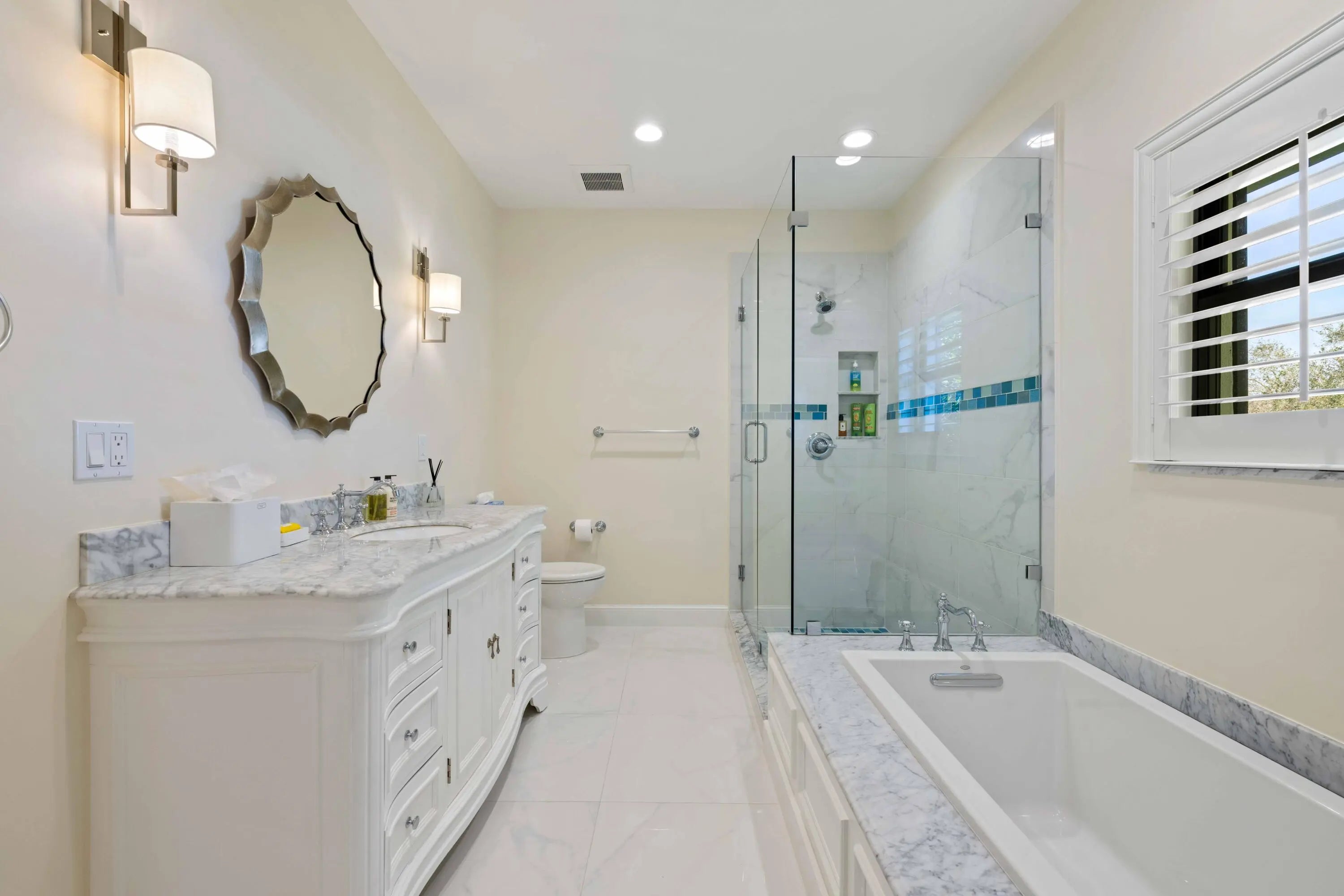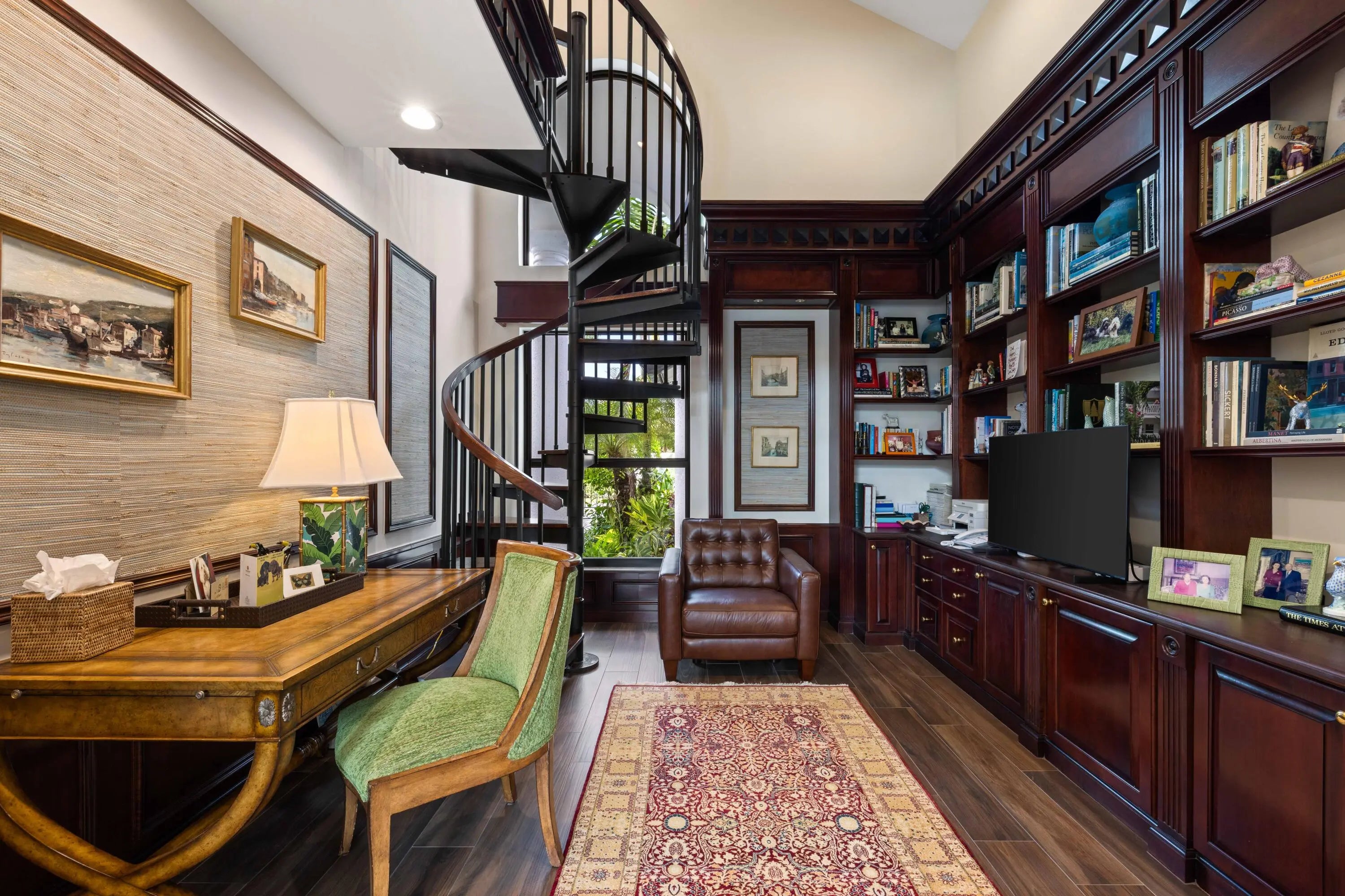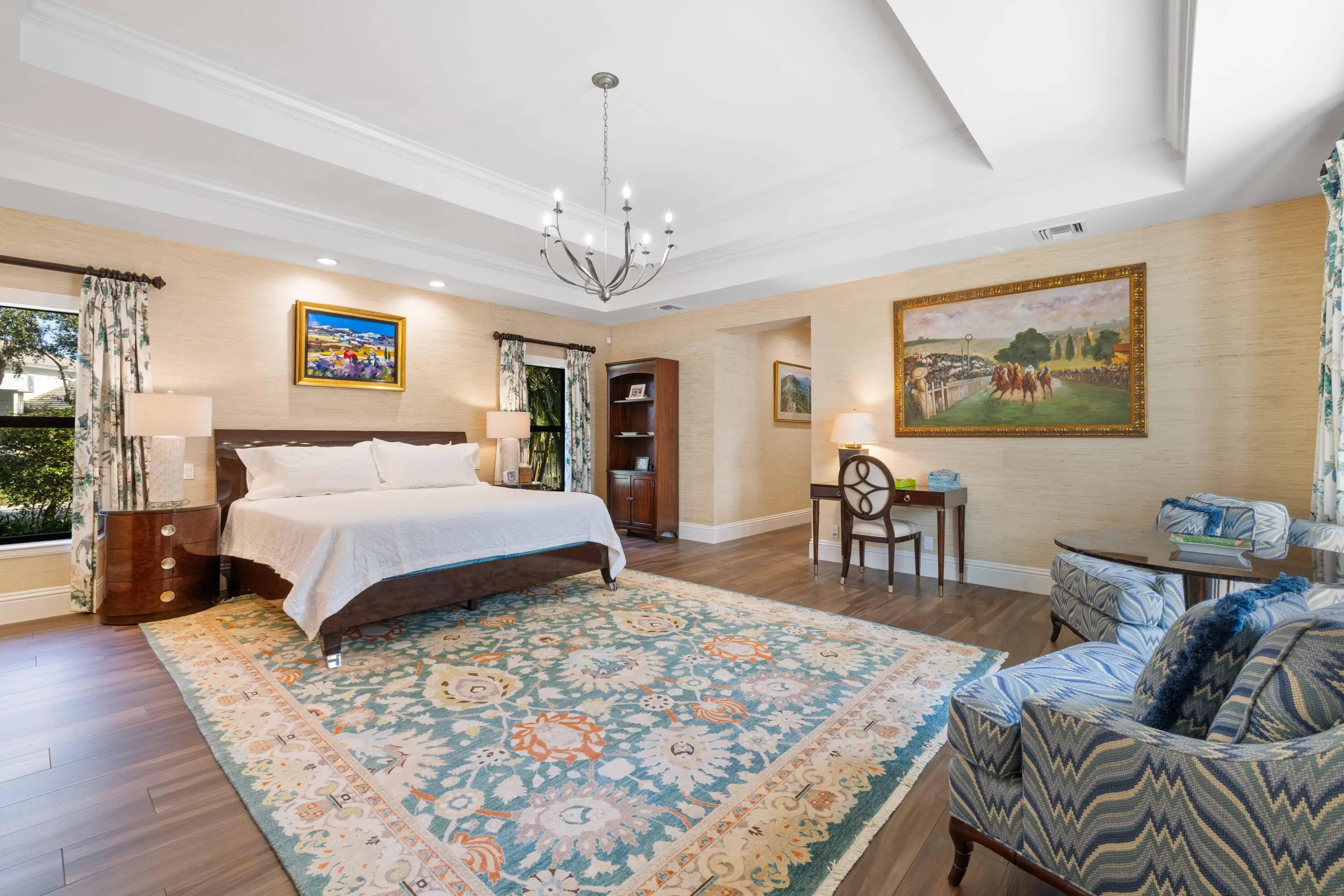 Experience refined Florida living in this fully renovated 1.03 acre single story custom home, totally rebuilt from the inside out. With over 5,000 sq. ft. of living space, this residence offers 4 private bedroom suites, 6 baths, a library-style office with custom built-ins and an upper reading nook, a bonus/game room, and a 4-car split garage. Perfectly positioned on the corner of the cul-de-sac, the home is surrounded by lush, fully reimagined landscaping that enhances both curb appeal and privacy. The property now features an expansive new decorative circular driveway, designed to allow generous parking and smooth flow for residents and guests. Nearly every major component has been replaced and updated, including the roof, impact windows, electrical, plumbing, 3 AC units, irrigation system, garage flooring, new driveway, and all interior flooring. Inside, abundant natural light fills the open living spaces, where French doors overlook the newly resurfaced pool and spa. The fully redesigned kitchen features new appliances, custom cabinetry, and sleek quartz countertops. The spacious Primary Suite offers generous his-and-her custom closets and a spa-inspired bath with peaceful garden views. All guest suites include remodeled ensuite baths. The library office showcases beautiful custom built-ins with a cozy upper nook with more storage space. The backyard is a resort-style escape, complete with a refinished pool and deck, a covered patio with a new built-in grill/bar, a half-court sports area, a poolside shower bath, and a fully fenced yard ideal for entertaining, kids, and pets. This rare turnkey residence offers luxury, privacy, exceptional natural light, and abundant storage throughout an extraordinary property not to be missed.