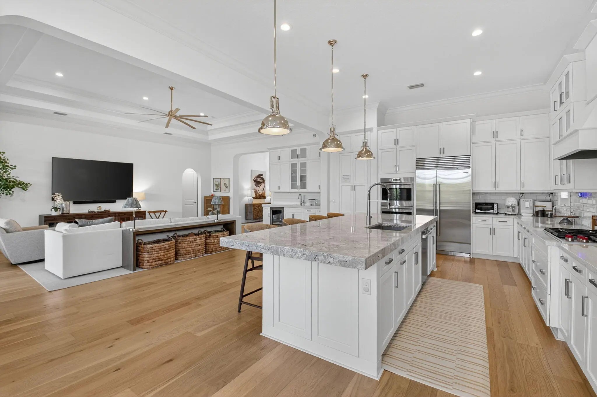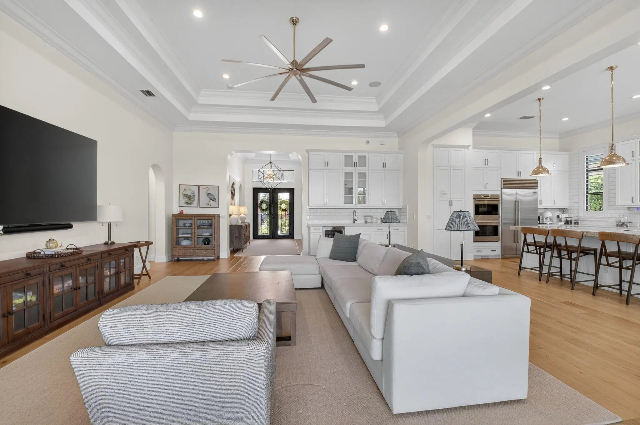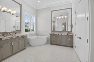 Gorgeous waterfront home meets equestrian prestige. Adjacent to lush stables & trainning track. Minutes from Wellington Equestrian Center. Relaxing panoramic lake views. Hurricane impact windows & doors. Generac whole-house generator. Open Layout w/ soaring ceilings. Crown molding, Accent details & designer fixtures. Premium decorative iron doors greet you as you walk into your grand foyer, gourmet kitchen, with quartz counters, soft-close cabinetry,high-end stainless appliances, gas stove, island seating & Butler's pantry. Lavish primary suite w/ walk-In closets. Spa-Inspired bath w/ soaking tub, frameless rain shower & separate vanities. Split -bedroom plan. EV charging port. Covered patio & expansive backyard. Abundant room for a pool. Resort style amenities: clubhouse,pool,spa, fitness center, sports courts,kids area