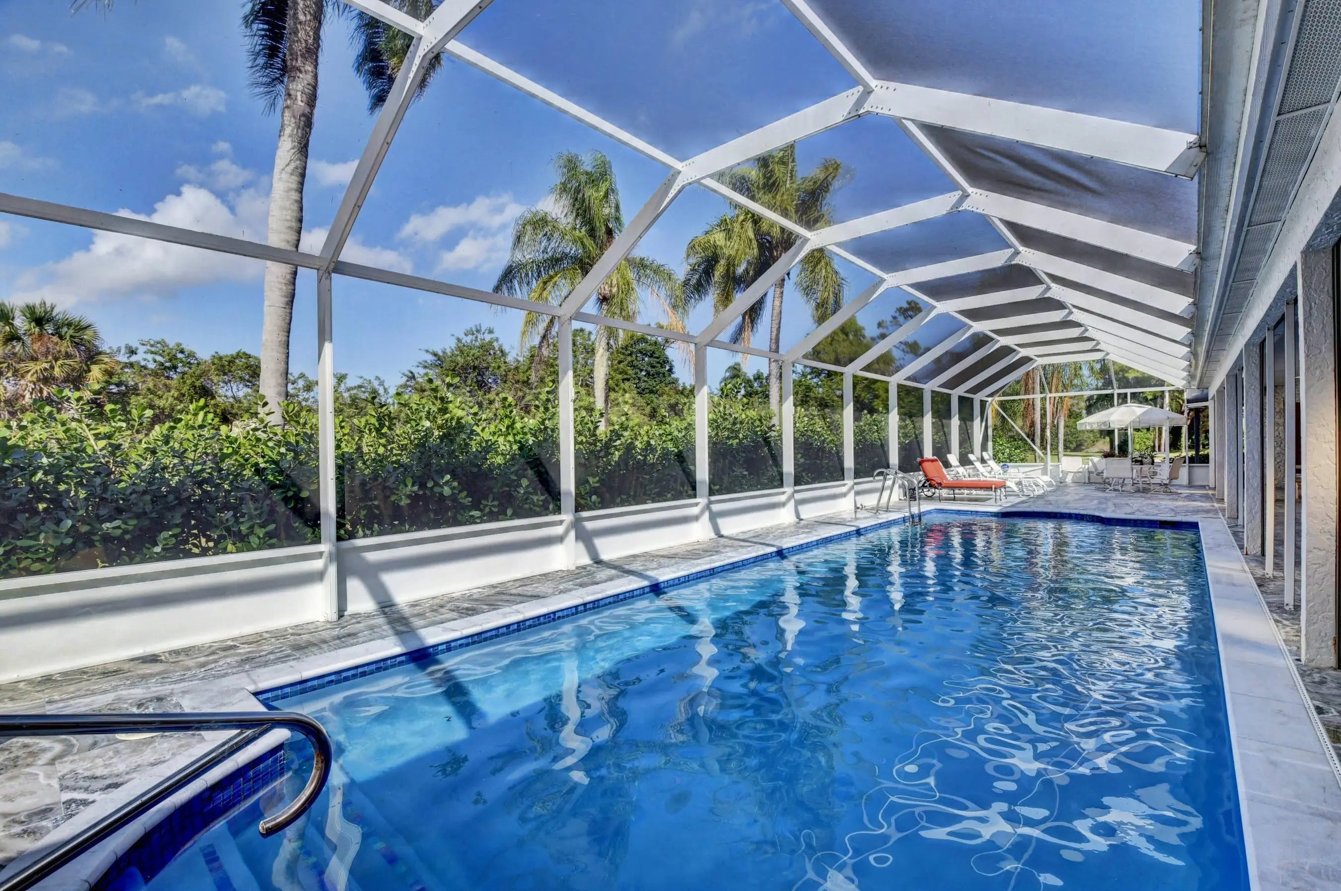 Step into this the foyer of this magnificent builders custom home on half an acre of property in the prestigious Hunters Run Country Club and experience the sweeping ceilings, dual sided wood burning fireplace. The spacious rooms include 5 full baths, 4 bedrooms with walk in closets and in-suite full baths, a den, dining area, kitchen with eat in area, large laundry room with newer washer and dryer, walk-in pantry and living room with built in wet bar, 50-foot newly renovated heated pool, new 2800 sq ft screen enclosure, outdoor shower, new wet-rated designer porcelain tiles, new lighting and ceiling fans, outdoor kitchen with refrigerator, Finnish dry sauna, updated lighting, 3 hot water tanks, 3 newer air-conditioners each with Reme Halo Air Purifiers, option for a fourth air conditioner in the garage, 2 new electrical panels in the garage, new Kohler toilets in all baths and more. The master bedroom has 2 walk-in closets, boasts built in hidden custom drawers and a sitting area. The completely remodeled master bath treats you to a spa like environment with separate his and her areas, 139-gallon tub with heat, whirlpool and bubble jets, chroma/aroma therapy shower steam sauna. The master bath is serviced by its own, new 100-gallon hot water tank! The Kitchen has a new Miele dishwasher washer, new Bosch double ovens and electric stovetop, built in retractable exhaust, a subzero refrigerator, granite countertops, and plenty of cupboard space. Additional updates throughout the home! Make this your home in Hunters Run and live the dream with 54 holes of championship golf courses, 18 har-tru tennis courts, 12 pickleball courts, resort style pool & amenities, hotel, spa, salon, state of the art fitness center and 7 Dining Venues .This is a must see.Membership and buy-in required.