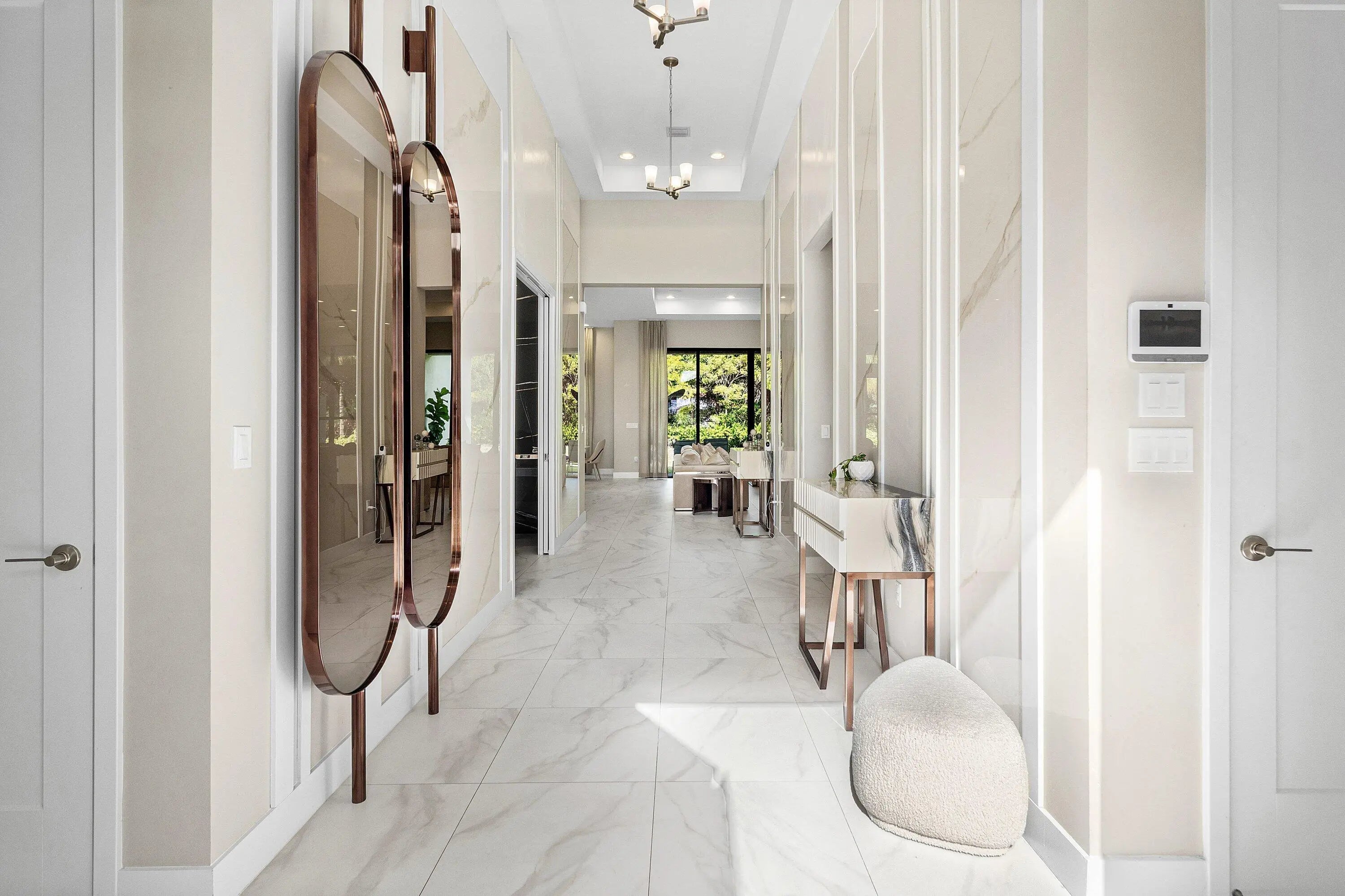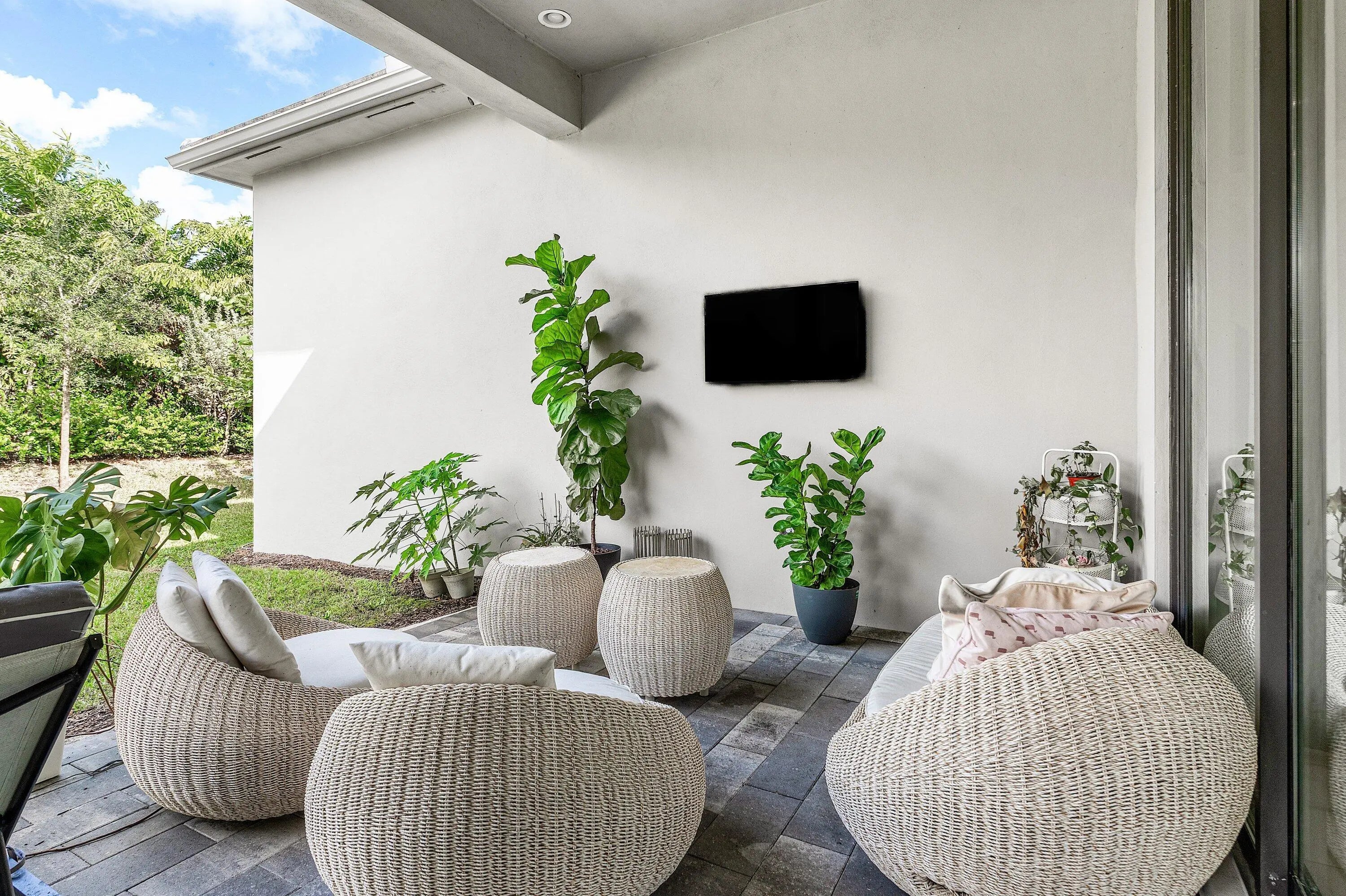 Experience contemporary luxury living in this one-level, 2023-built Lotus Palm dream home, where thoughtful design and refined finishes create an exceptional residence. The impressive foyer welcomes you with striking decorator glass-wall accents, high-hat lighting, and sleek ceramic tile flooring that flows seamlessly throughout. Built with modern durability in mind, the home features impact windows and doors for enhanced safety, security, and storm protection. The open-concept layout centers around a chef-inspired kitchen equipped with stainless steel appliances, abundant white cabinetry, granite countertops, double wall ovens, and a gas cooktop. This elegant space transitions effortlessly into the expansive living and dining areas, perfect for everyday living and elevated entertaining. Designed for energy-conscious living, the home also includes solar panels for long-term efficiency and sustainability. Premium upgrades elevate the home's functionality, including a filtered water system, an exterior 360° camera system, eight Sonos speakers, Ring security, a keyless entry lock, and an epoxy-coated garage floor. Just outside, you'll find the covered patio complete with a summer kitchen, built-in grill, and ample space to design your own custom pool ideal for embracing South Florida's indoor-outdoor lifestyle. The serene primary suite offers a spa-like retreat with dual vanities, a luxurious soaking tub, a separate shower with a rain shower head, and two generous walk-in closets. Three additional guest suites provide comfort and privacy, including one with its own private patio. A dedicated office with two built-in desks and plentiful storage enhances the home's functionality. Additional features include a paver driveway and a 3-car garage. Residents enjoy resort-style living with access to a modern clubhouse offering gourmet dining, multiple resort-style pools, a waterpark and playground, a game room, an indoor basketball court, a state-of-the-art fitness center, tennis and pickleball courts, and a full-service pro shop. Lawn care is included for added convenience. Ideally located near A+ rated schools, world-class shopping and dining, pristine beaches, Mizner Park, and Boca Town Center, this exceptional residence blends elegance, comfort, energy efficiency, and premier community living delivering the ultimate Boca Raton lifestyle. Mortgage savings may be available for buyers of this listing.