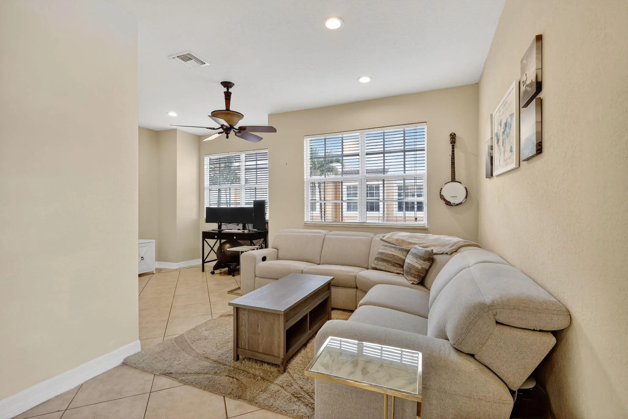 Intracoastal community of only 51 homes, located minutes between West Palm Beach and Boca Raton. This spacious end-unit offers extra natural light and room to spread out. Enjoy the turquoise water views from the community's private dock and heated resort-style pool. Boat slips may be available for lease. Inside, the home features a versatile ground-floor bonus room ideal for a home office or gym, along attached two-car garage equipped with EV circuit. The updated kitchen showcases granite countertops,stainless steel appliances,new refrigerator and microwave,and flows seamlessly into the living area perfect entertaining. Additional upgrades include new washer/dryer,new water heater,reverse osmosis water system, and impact windows. Unbeatable proximity to beaches, dining and entertainment.