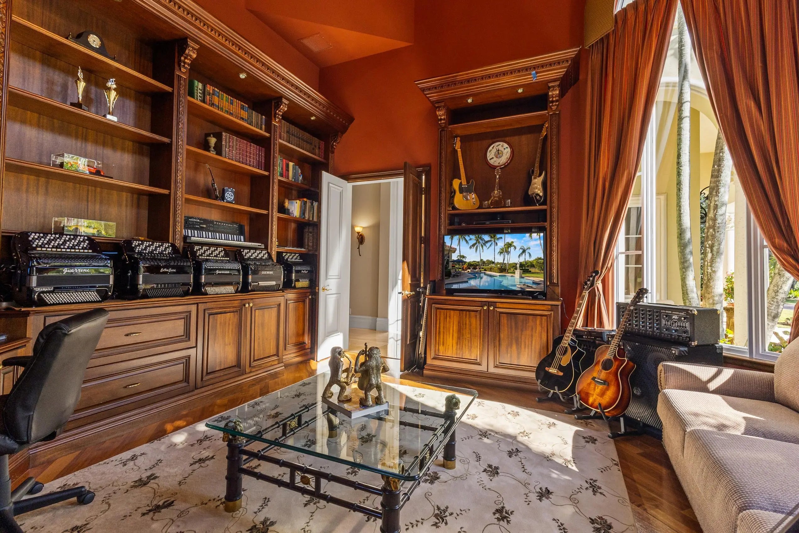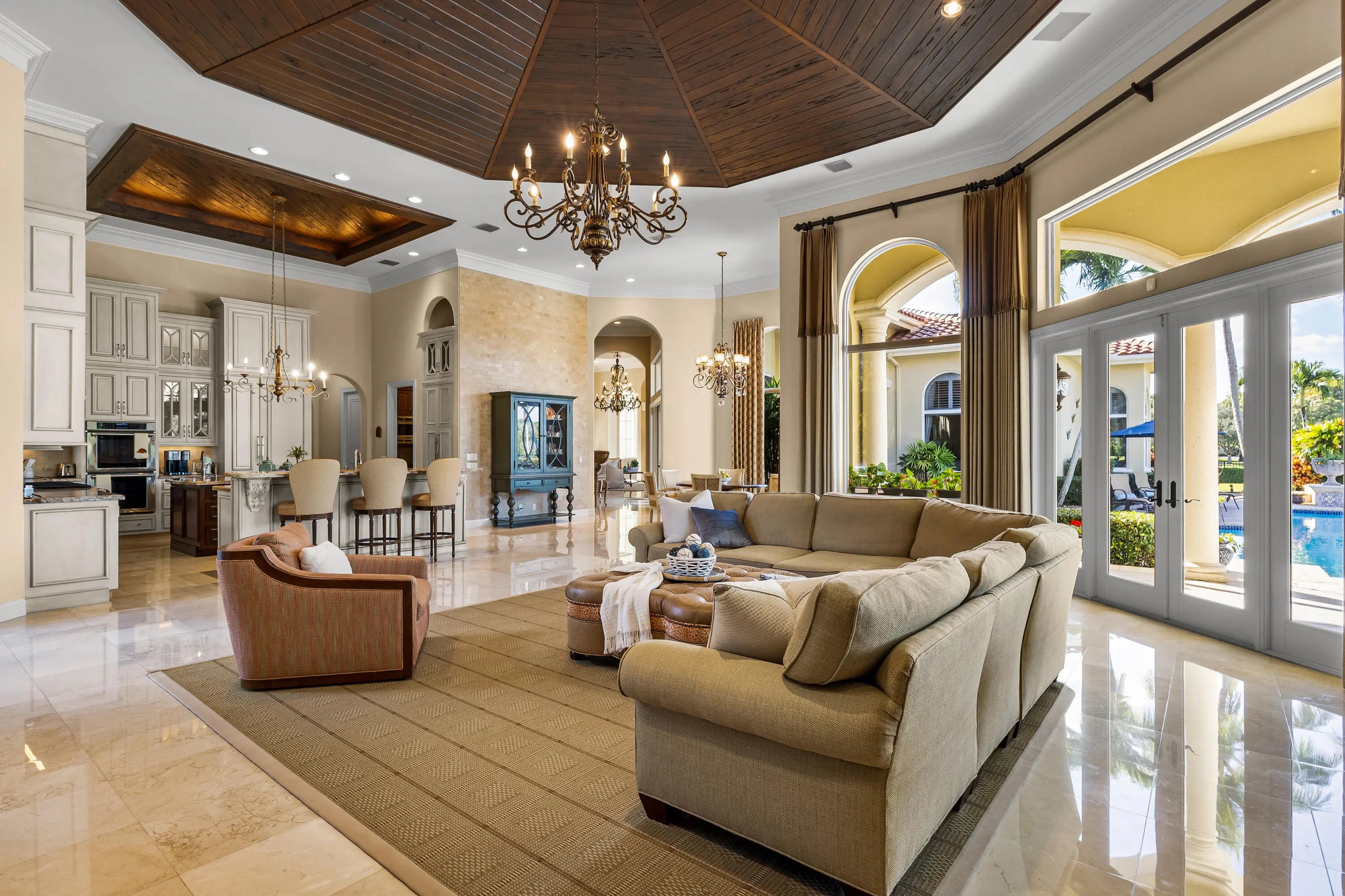 Welcome to a Mediterranean-inspired masterpiece in the prestigious gated community of Steeplechase Estates. Set on a private and beautifully landscaped 1.25-acre lot, this one-story estate offers 6 bedrooms, 5.1 bathrooms, and 6,780 sq ft of custom-crafted elegance and a 2024 roof. The 3-car garage features a 6,500-lb lift, providing true 4-car capability. Outdoors, enjoy lush landscape lighting, a resort-style freshly resurfaced pool, expansive entertaining areas, fenced grounds, and your own sports court. Every detail—from the refined finishes to the thoughtful upgrades—has been carefully curated. A rare opportunity to own a private luxury retreat in Steeplechase. Come experience it today.