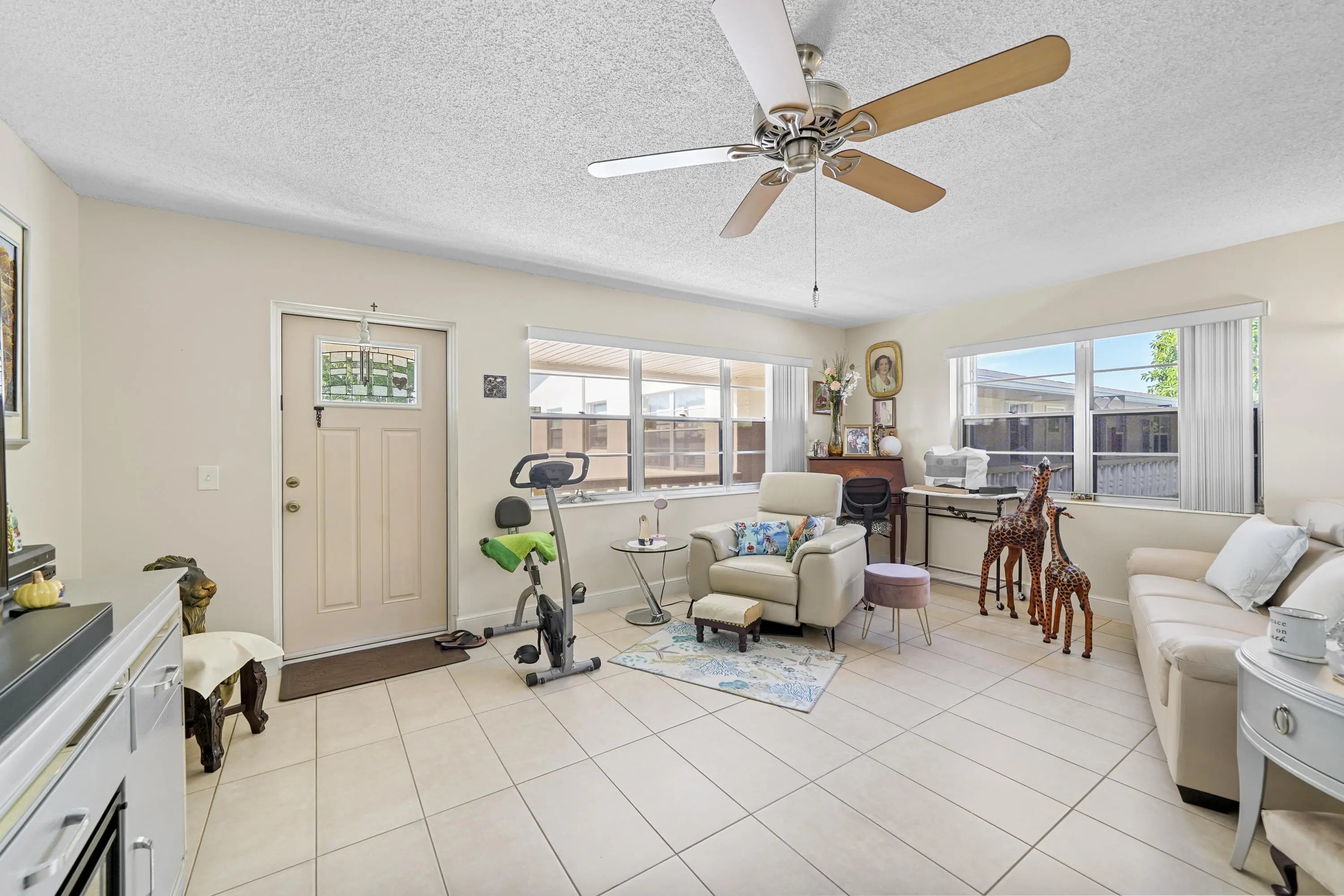 Don't miss this beautifully maintained one-bedroom, 1.5-bath, 2nd-floor corner condo located in the desirable 55+ community of Century Village. This welcoming unit is filled with natural light and features tile flooring throughout, large closets, and ample storage. The home is equipped with accordion hurricane shutters on all windows and the rear sliding door, recently installed water heater, and a newer HVAC unit for added peace of mind. Bedroom includes a full en-suite bathroom, while the half bath provides extra convenience for guests. Residents enjoy access to a serene garden complete with a BBQ grill and seating—perfect for relaxing outdoors. Just a short walk from the community pool. Community offers an impressive array of resort-style living, making it ideal. Motivated Seller.