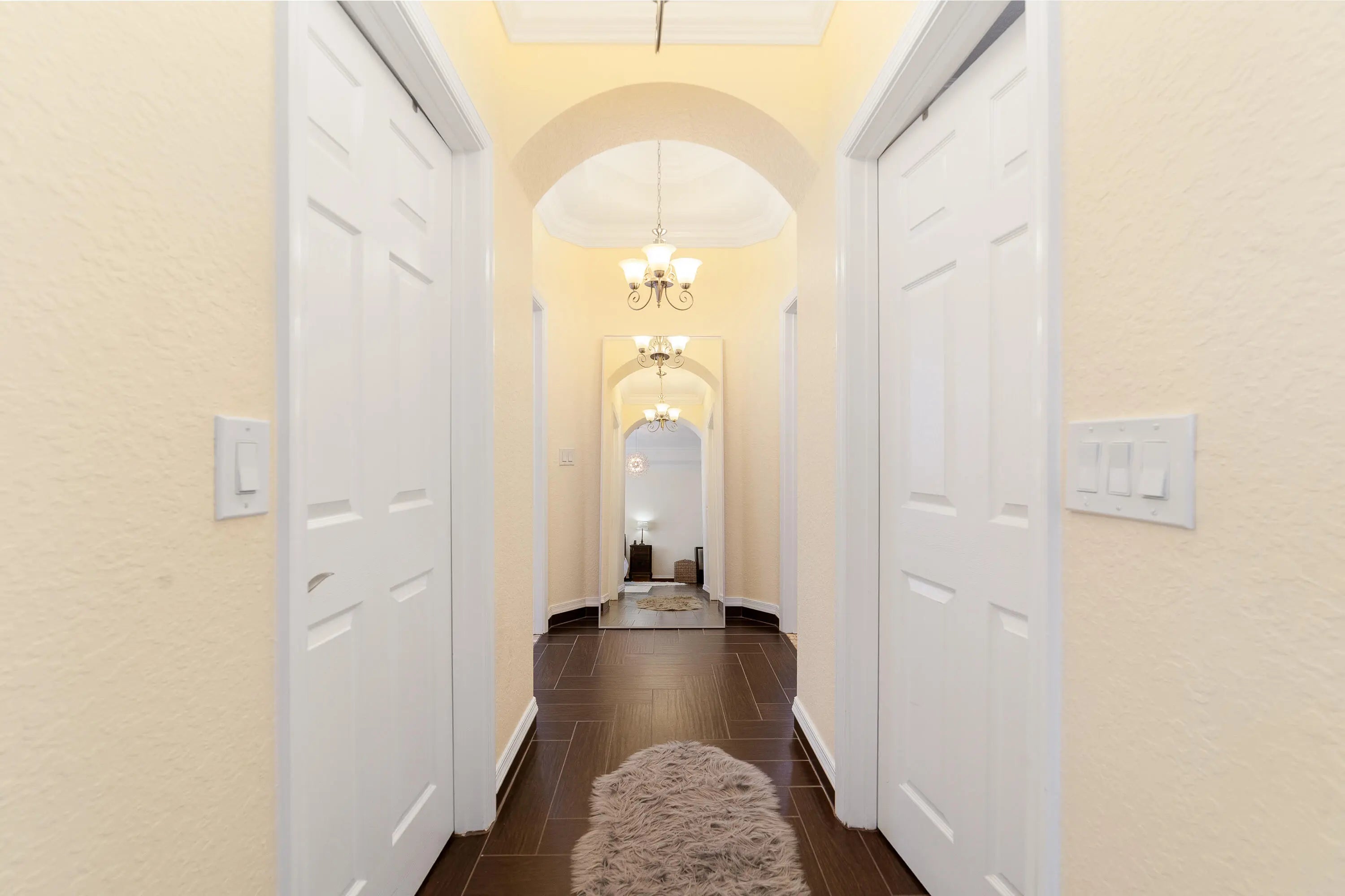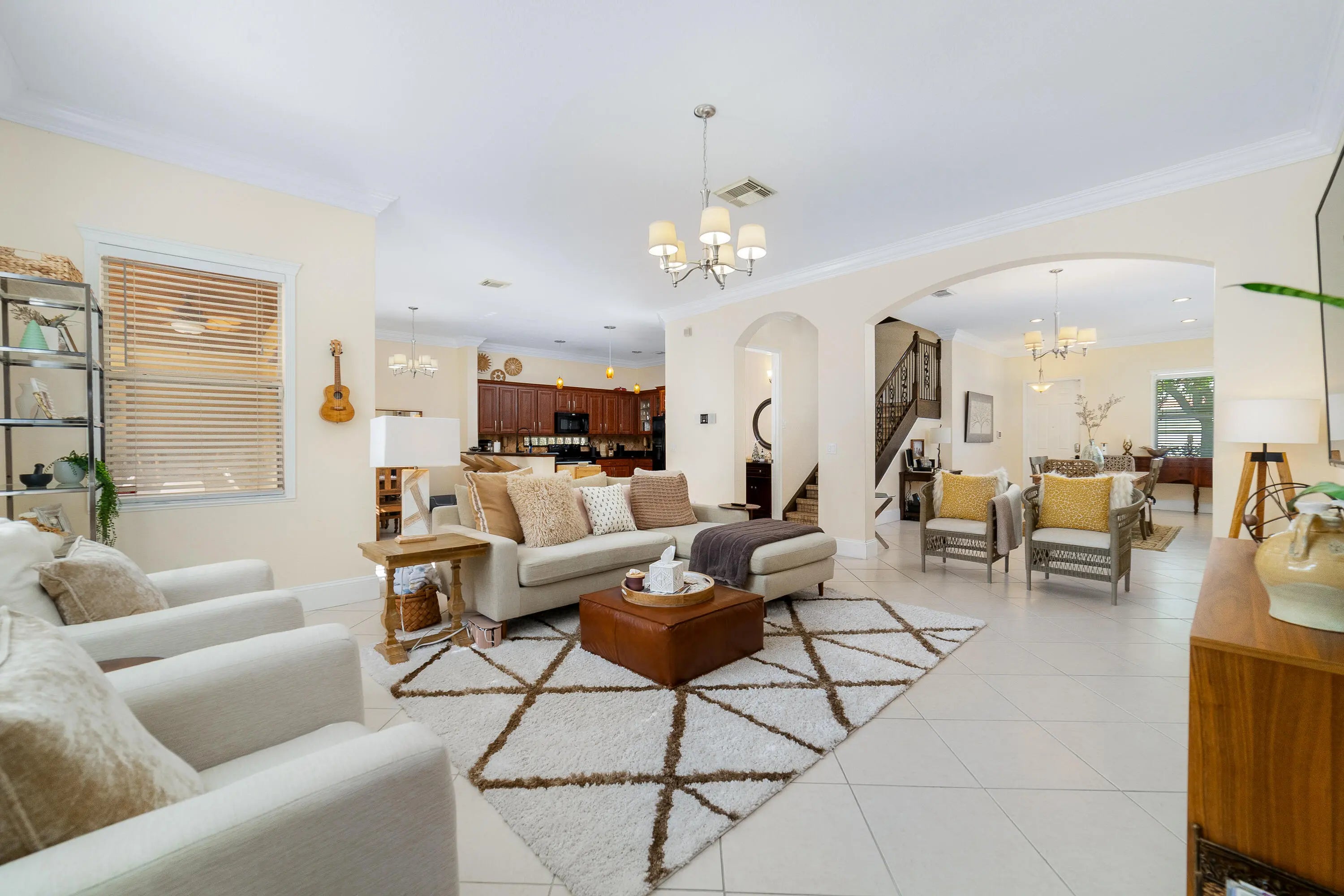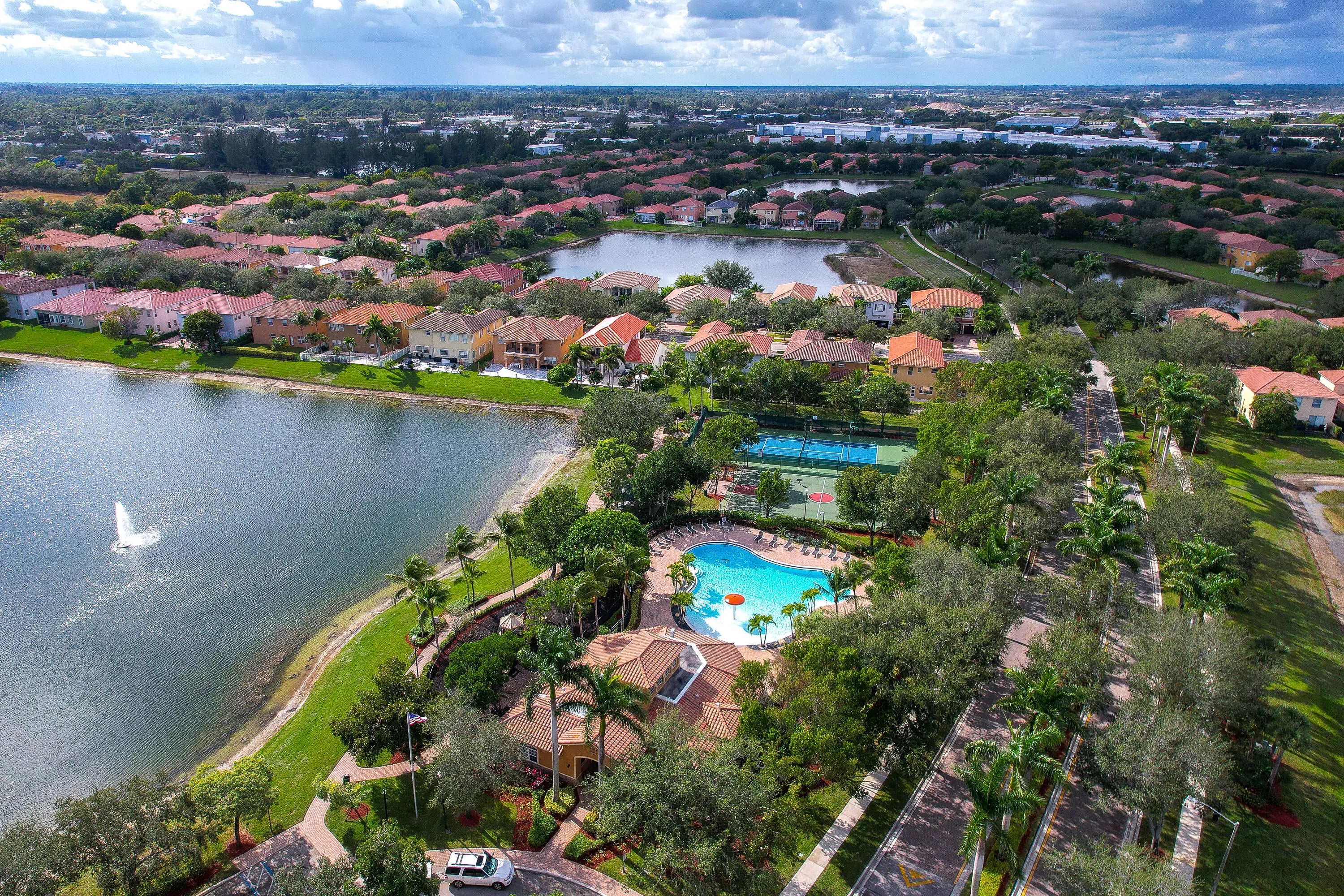 This spacious two-story home offers a comfortable layout with four bedrooms, three and a half baths, and a flexible loft ideal for work or relaxation. Ceramic tile flooring complements the main level, while wood-look tile extends throughout the upstairs. The generous upstairs suite includes two separate baths connected by a shared shower, a Roman tub, and an oversized adjoining room with space for a sitting area. The home has been thoughtfully maintained with recent updates, including a 50-gallon energy-efficient water heater installed in June 2024, a small commercial A/C unit added in February 2023, interior paint refreshed in December 2025, and a washer and dryer installed in November 2021, offering comfort and efficiency. Located in the gated Terracina community, the neighborhood is known for its Spanish-inspired architecture, scenic lakes, lush landscaping, and inviting streets. Residents enjoy access to community amenities such as a pool, clubhouse, fitness center, tennis and basketball courts, and a playground. Convenient access to the Turnpike and nearby shopping and dining completes the appeal.