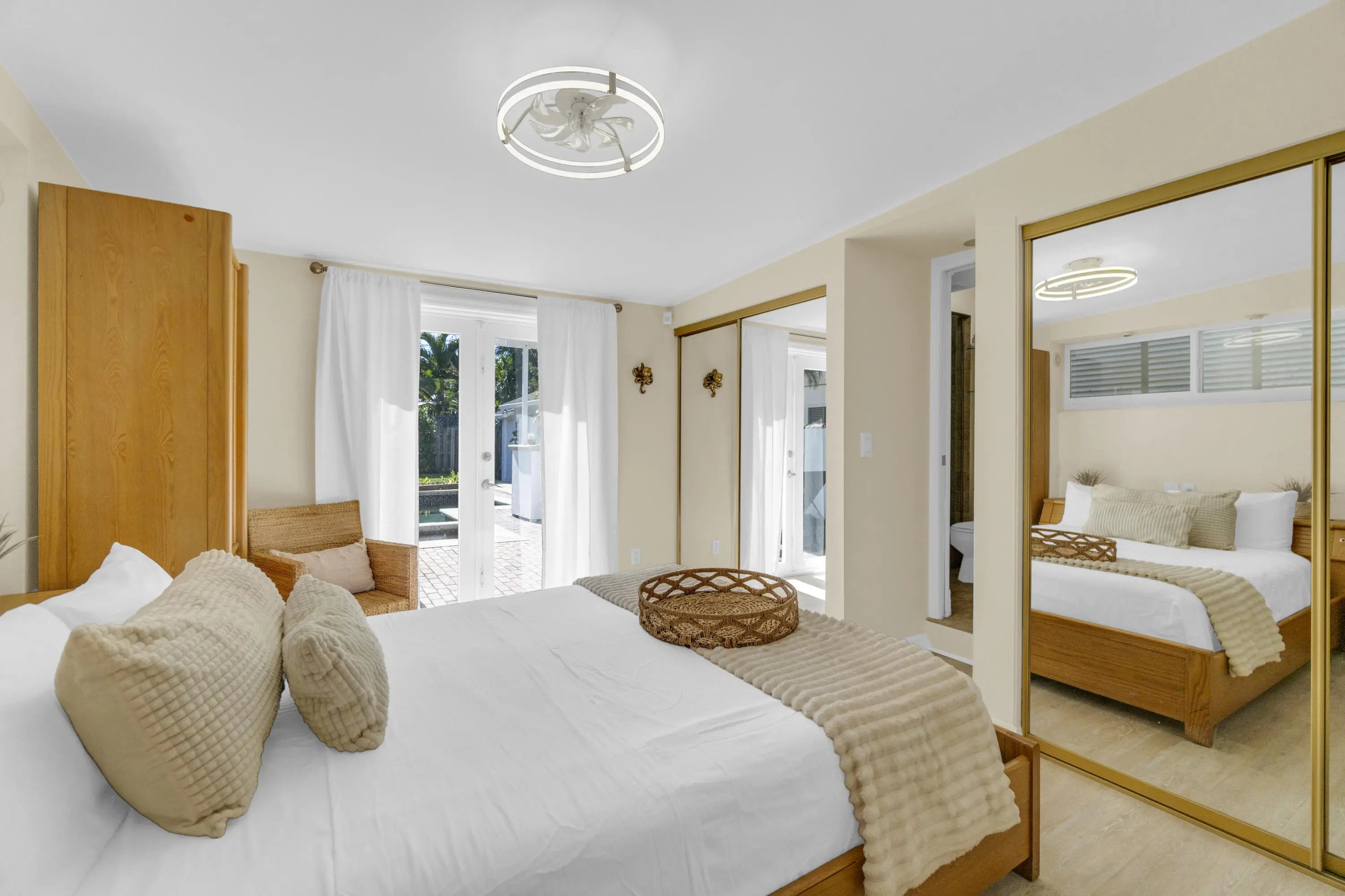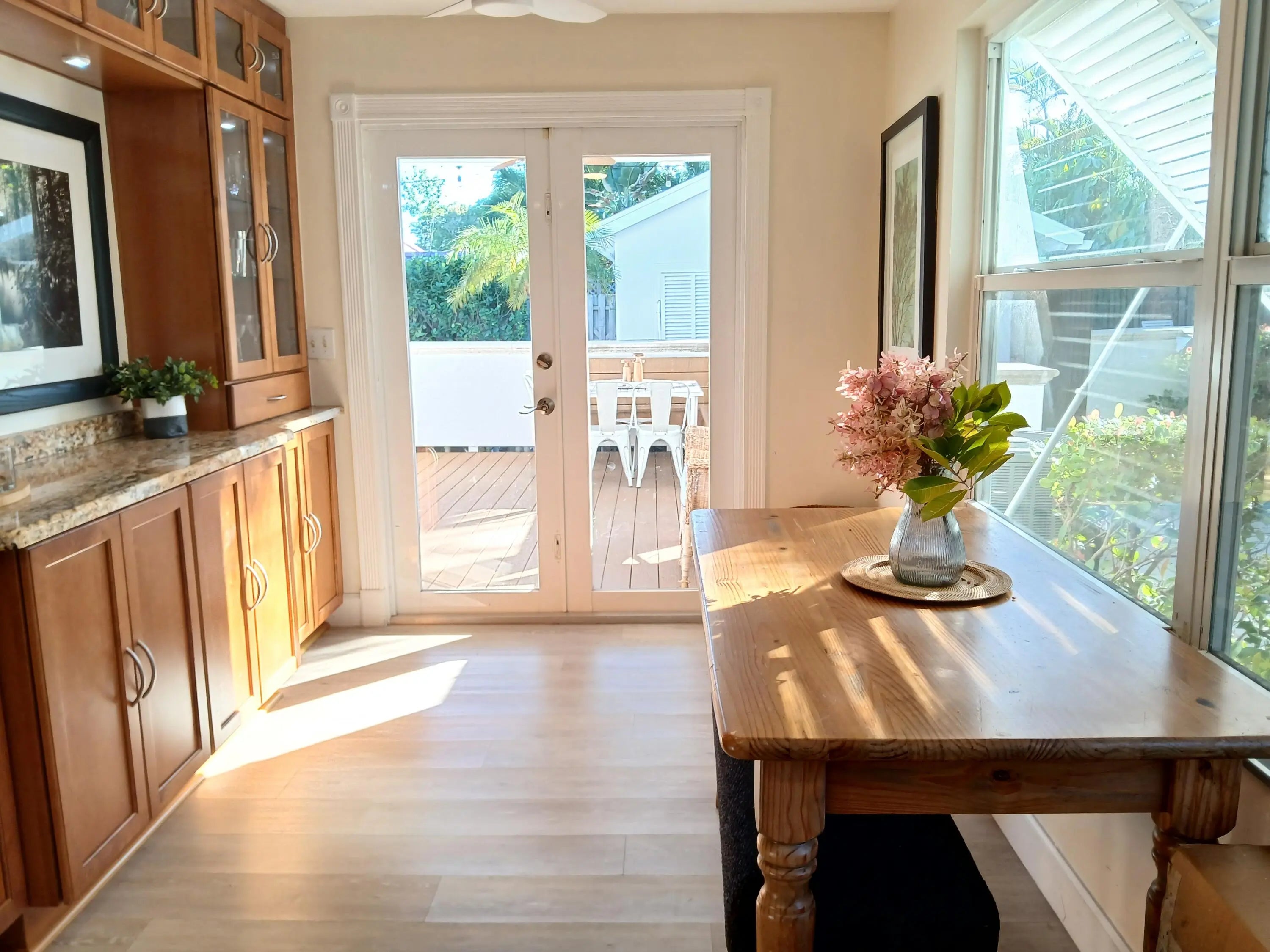 Discover The Sunkissed Retreat. A private resort style sanctuary tucked within the highly coveted College Park neighborhood of Lake Worth Beach. Behind its grand gated entry and 9-foot privacy walls, this tropical compound blends timeless charm with modern upgrades, offering an unmatched lifestyle experience just minutes from the Intracoastal and downtown. Welcome to this private tropical paradise and enjoy a heated pool with spa, expansive covered deck/patio, dedicated lounge areas, ene space designed for yoga or meditation and towering palms that line the perimeter, creating complete privacy and a lush resort style atmosphere. Perfect as a primary residence, vacation home, or high performing investment property. *Note sizable additions not included in sq.footage on PAPA Recent Upgrades Include: New exterior & interior paint New Sunbrella Awnings (main house & casita) New pool heater New fencing New air conditioner (2024) New interior & exterior lighting Hurricane impact windows & sliders Updated window treatments New outdoor grill station Tropical landscaping Pest control & Termite bond (transferable) New Roof for main house & casita (2026) *Seller is offering a full reroof credit or complete roof replacement prior to closing (buyer's choice).