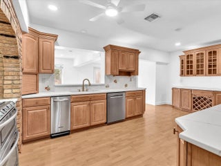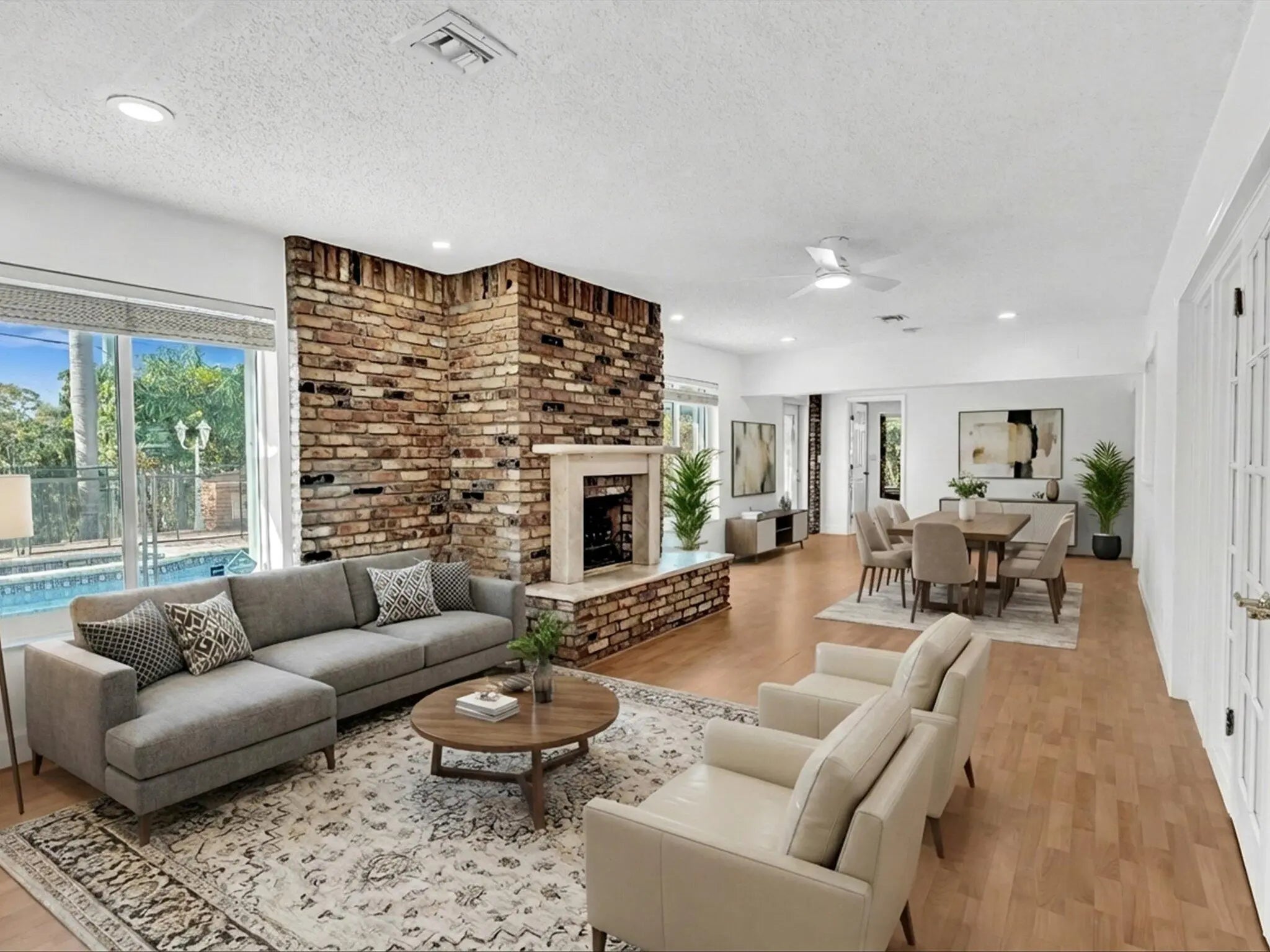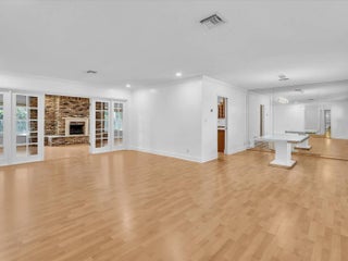 Beautifully updated and exceptionally rare 5BD/4BA residence on one of the largest lots in the neighboorhood, with nearly 3K SF of interior living space plus an oversided garage. Rest easy with a new 50-year metal roof, new PVC plumbing, full impact windows, freshly painted, and brand new tile flooring being installed. The interior showcases expansive open living spaces, highlighted by a dramatic brick fireplace and abundant natural light. Multiple living and dining zones flow seamlessly into the large kitchen and out to the backyard, creating the perfect space for living and entertaining. Step outside to a resort-style backyard with a large pool and spacious deck areas. Walking distance to houses of worship and close to top dining, entertainment, and beaches, this home has it all.