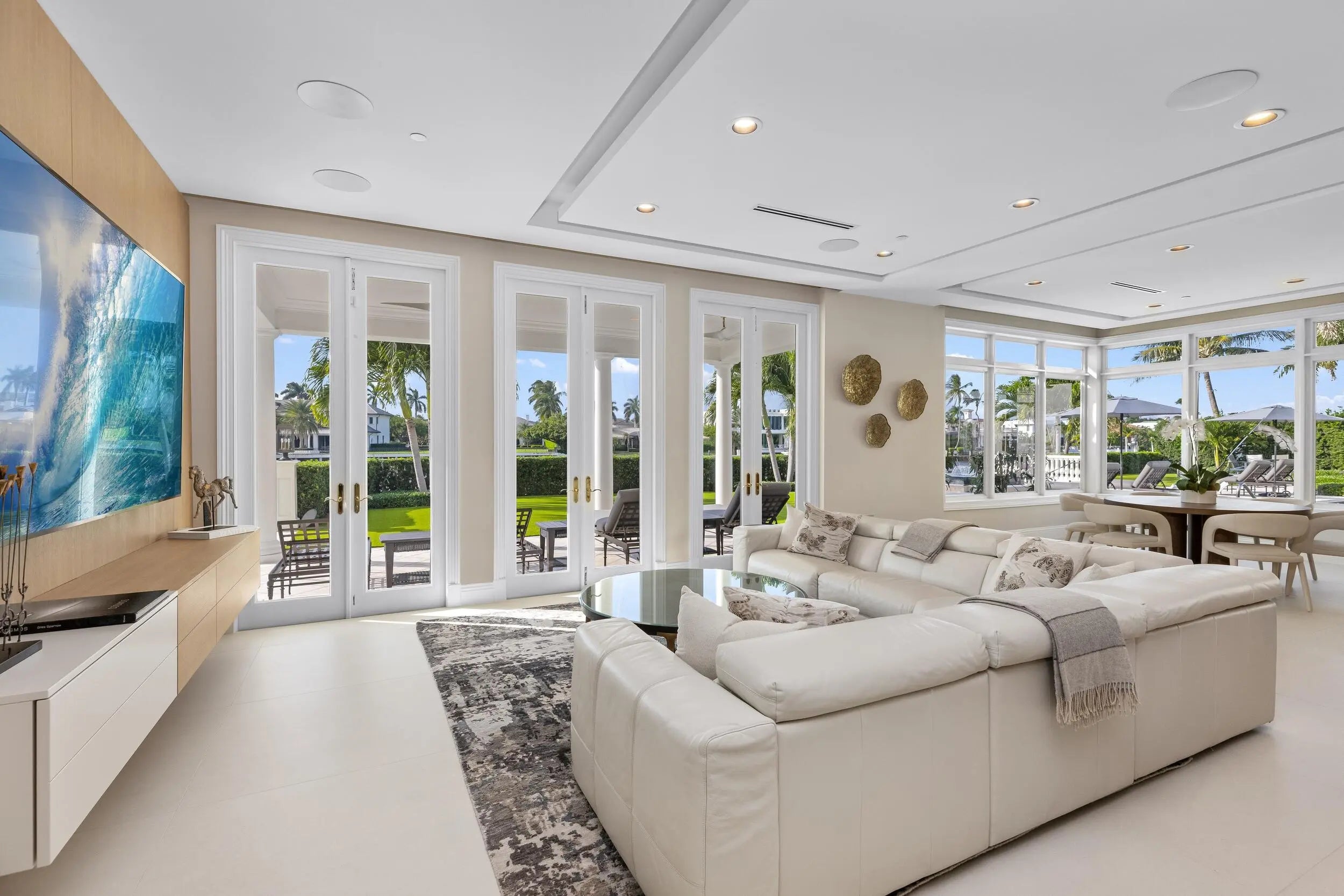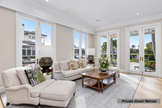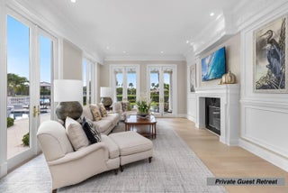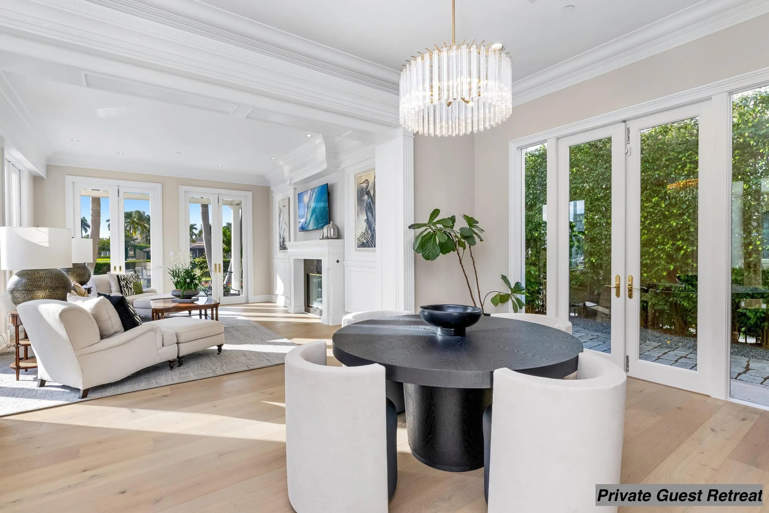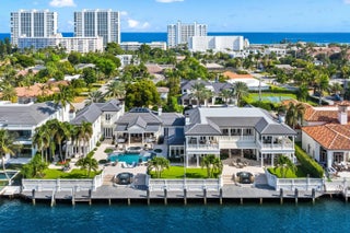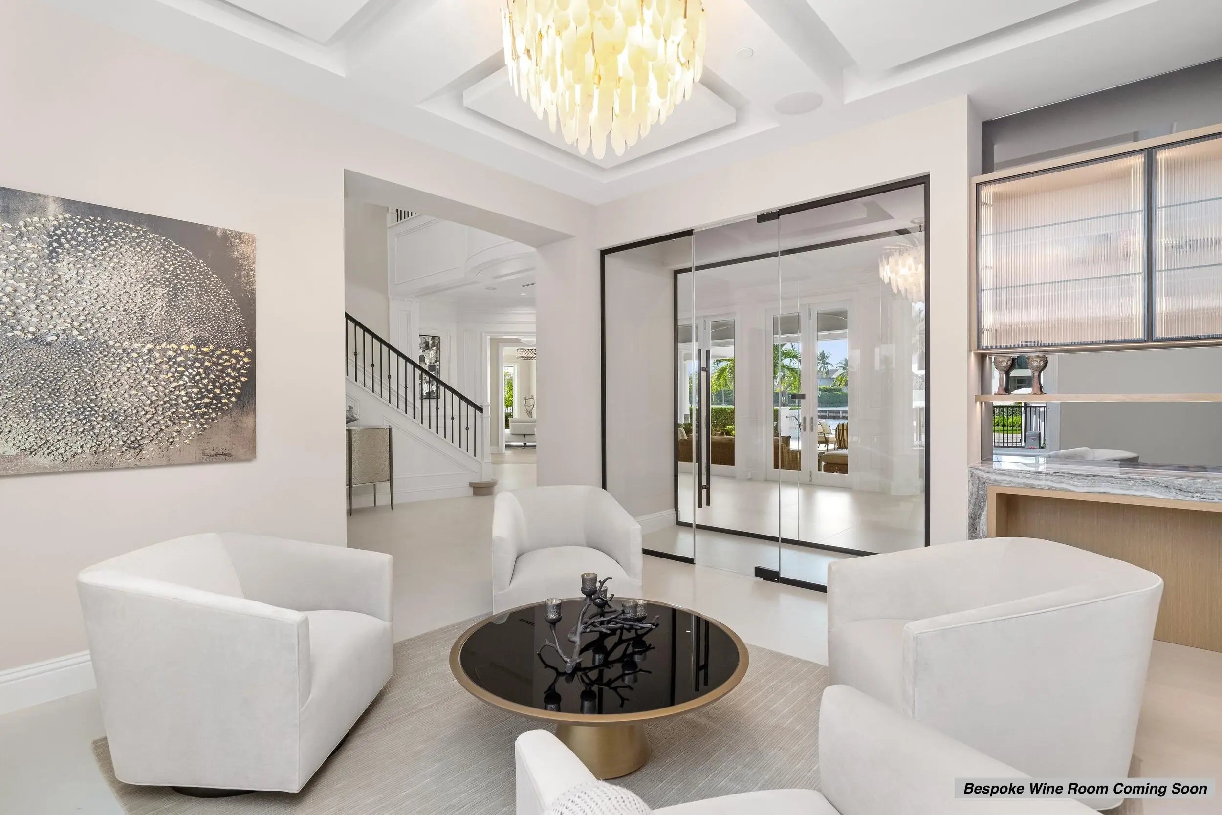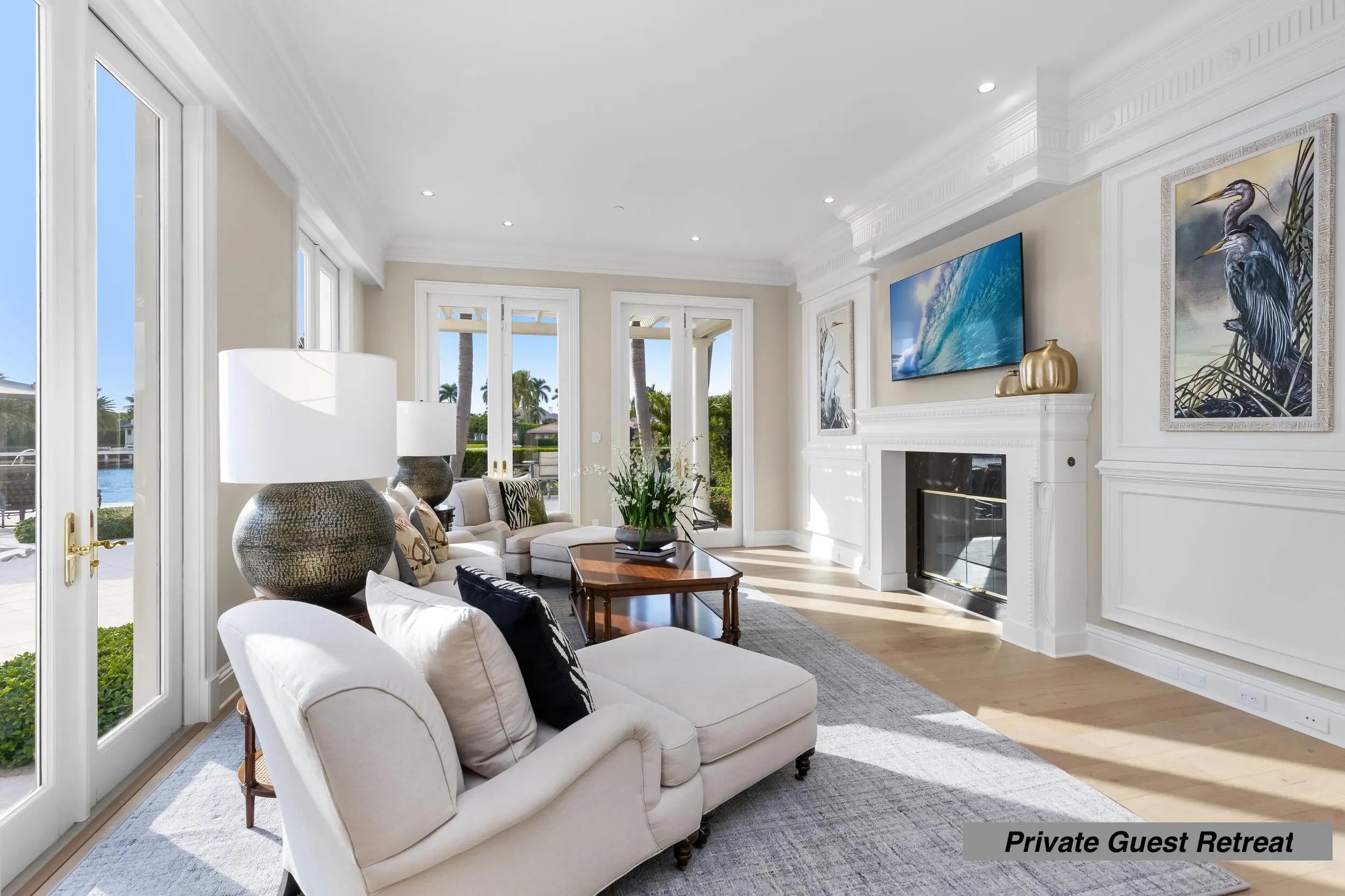 Rarely does an estate of this scale and distinction become available. Positioned on one of the largest Intracoastal lots in Boca Raton's prestigious Estate Section, this fully reimagined waterfront home offers 200 feet of frontage and showcases uncompromising quality, with exceptional materials and finishes selected throughout. Behind private gates, this expansive compound offers more than 12,000 square feet of refined interiors and over 17,000 total square feet across eight bedrooms, thoughtfully arranged between the main residence and a separate guest home. The layout is exceptional: the main residence features six beautifully appointed bedrooms, while the guest home includes two additional bedrooms, a full kitchen, a spacious living room, its own private entrance, and even an additiona 1-car garage dedicated to this suite a rare feature that enhances convenience, privacy, and long-term flexibility for guests, staff, or multigenerational living. A dramatic double-height clubroom serves as the architectural centerpiece, seamlessly connecting the main residence to the guest home. With soaring volume, natural light, and gallery-like presence, this grand space allows the property to function as one cohesive estate or as two private living environments depending on preference. At the heart of the home, a waterfront executive office captures serene Intracoastal views and includes a sophisticated adjacent lounge, creating a private, elevated environment ideal for work, meetings, relaxation, or quiet retreat. This wing stands out as one of the home's signature spacespairing functionality with an intimate, luxury atmosphere. From the moment you enter the grounds, the scale of the transformation becomes clear. The exterior has been completely elevated with a full repaint, a brand-new roof including all flat sections, and enhancements to the sea wall. The entire property has been upgraded with pet-friendly turf, lush new landscaping, mature trees, vibrant flower beds, layered plantings, and a serene Zen garden accented by sculptural rock elements. Landscape lighting illuminates every contour of the grounds and trees, while updated sconces, downlighting, and outdoor ceiling fans create a warm, inviting ambiance from sunrise to sunset. Both the main and guest house gates now feature upgraded motors and modernized controls, complementing major mechanical upgrades that include a new whole-home generator with transfer switch, new exterior electrical panels, and a comprehensive outdoor security and sound system. Designed for boating enthusiasts, the waterfront has been dramatically enhanced with a brand-new 200-foot dock and a 24,000-pound boat lift. The pool and spa area has also been elevated with new pool and spa tile, new coping, and upgraded equipment with full smart controls. Outdoor furniture features updated surfaces and all-new cushions, creating a polished, resort-style lounge environment ideal for entertaining or enjoying sunset views along the Intracoastal. Inside, both the main residence and guest home have undergone a sweeping transformation. New wooden and tile flooring, freshly painted rooms and trim, modern lighting, and a curated interior palette give the home a crisp, sophisticated aesthetic. Significant mechanical improvements include the replacement of ten of the twelve A/C units and handlers, installation of new wireless routers, and a fully integrated Control4 smart home system managing lighting, audio, video, security, thermostats, gates, and garage doors. Every switch, outlet, and wall covering has been replaced, and all in-ceiling lighting has been transitioned to high-efficiency LEDs. The main kitchen, redesigned by NEF Designs, showcases bespoke cabinetry, newly crafted counters, upgraded lighting, and premium Sub-Zero and Wolf appliancesincluding four additional refrigeration drawers. Two newly built, temperature-controlled wine roomsone featuring a lounge seating areaadd architectural drama and serve as sophisticated spaces for entertaining or showcasing curated collections. The bathrooms throughout the estate have been updated with new or modernized vanities and sleek plumbing fixtures, bringing a fresh, elevated feel to every room. The five-car garage servicing the main home has been enhanced with new cabinetry, improved surfaces, and new motors on all doors, further complemented by the additional 1-car garage at the guest home, bringing the total to six garages across the estate. Additional upgrades include new dining room windows and updated custom shade systems throughout, tying the interiors together with a polished, unified aesthetic. With its comprehensive transformation, thoughtful layout, fully furnished interiors, state-of-the-art smart home technology, resort-style outdoor living, and premier Intracoastal presence, this estate stands as one of Boca Raton's most exceptional turnkey opportunities. Every detail has been curated to deliver an effortless, elevated lifestylemaking this waterfront compound a true modern masterpiece.